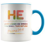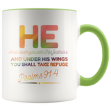 Bible Verses Dishwasher Safe Accent Mugs - Psalm 91:4 Design 8