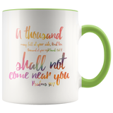 Bible Verses Dishwasher Safe Accent Mugs - Psalm 91:7 Design 5