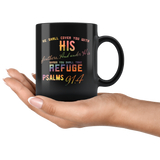 Bible Verses Dishwasher Safe Black Mugs - Psalm 91:4 Design 6