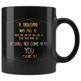 Bible Verses Dishwasher Safe Black Mugs - Psalm 91:7 Design 2