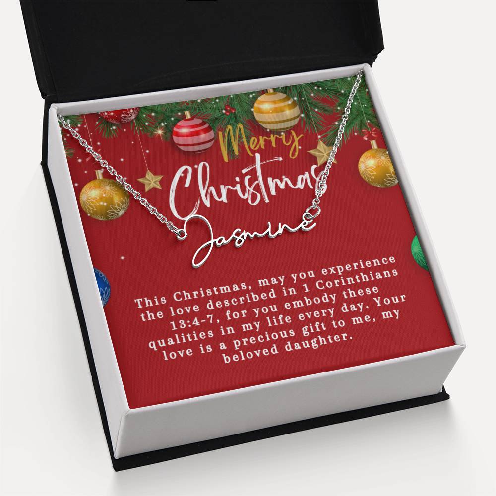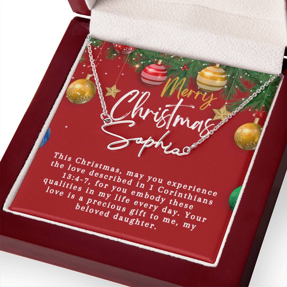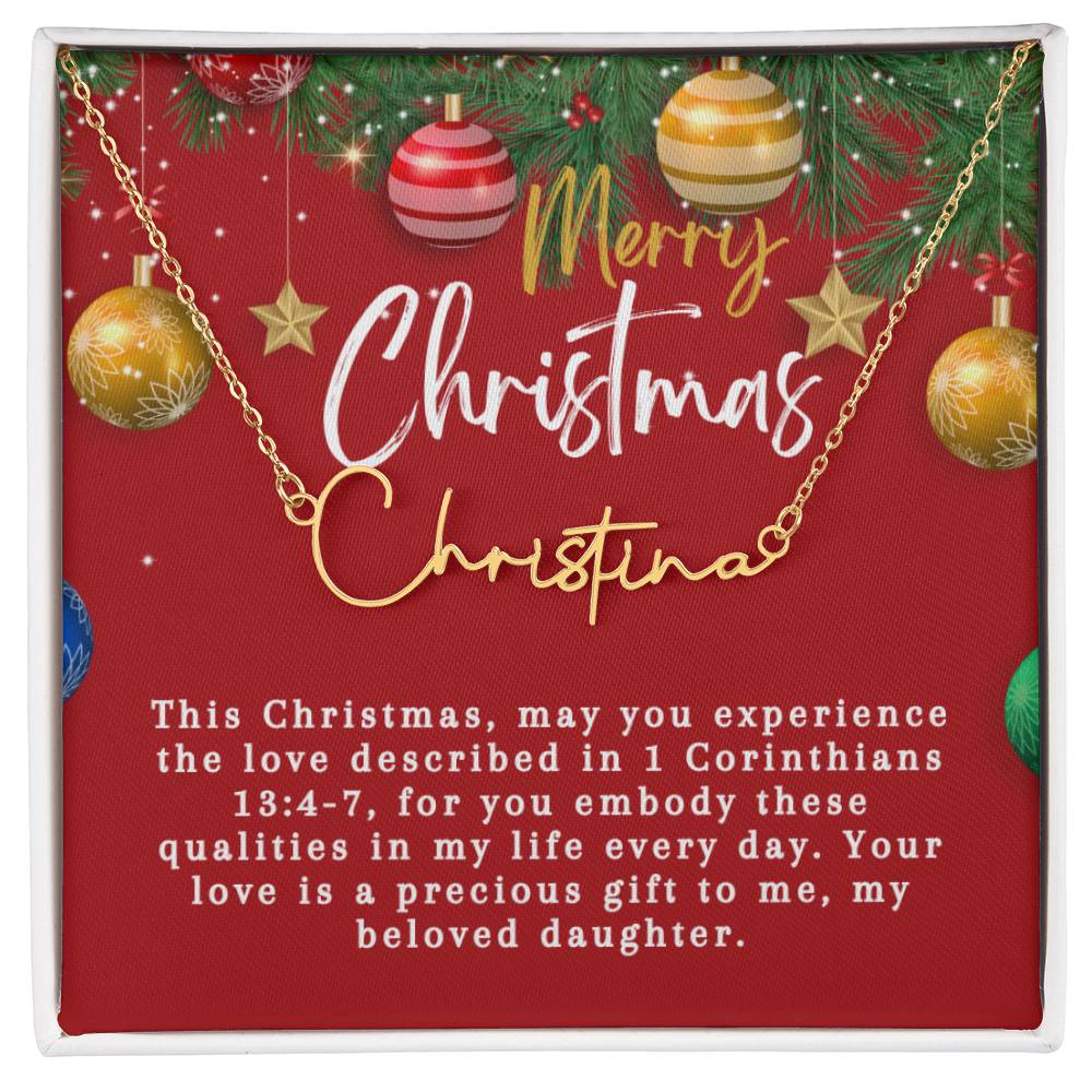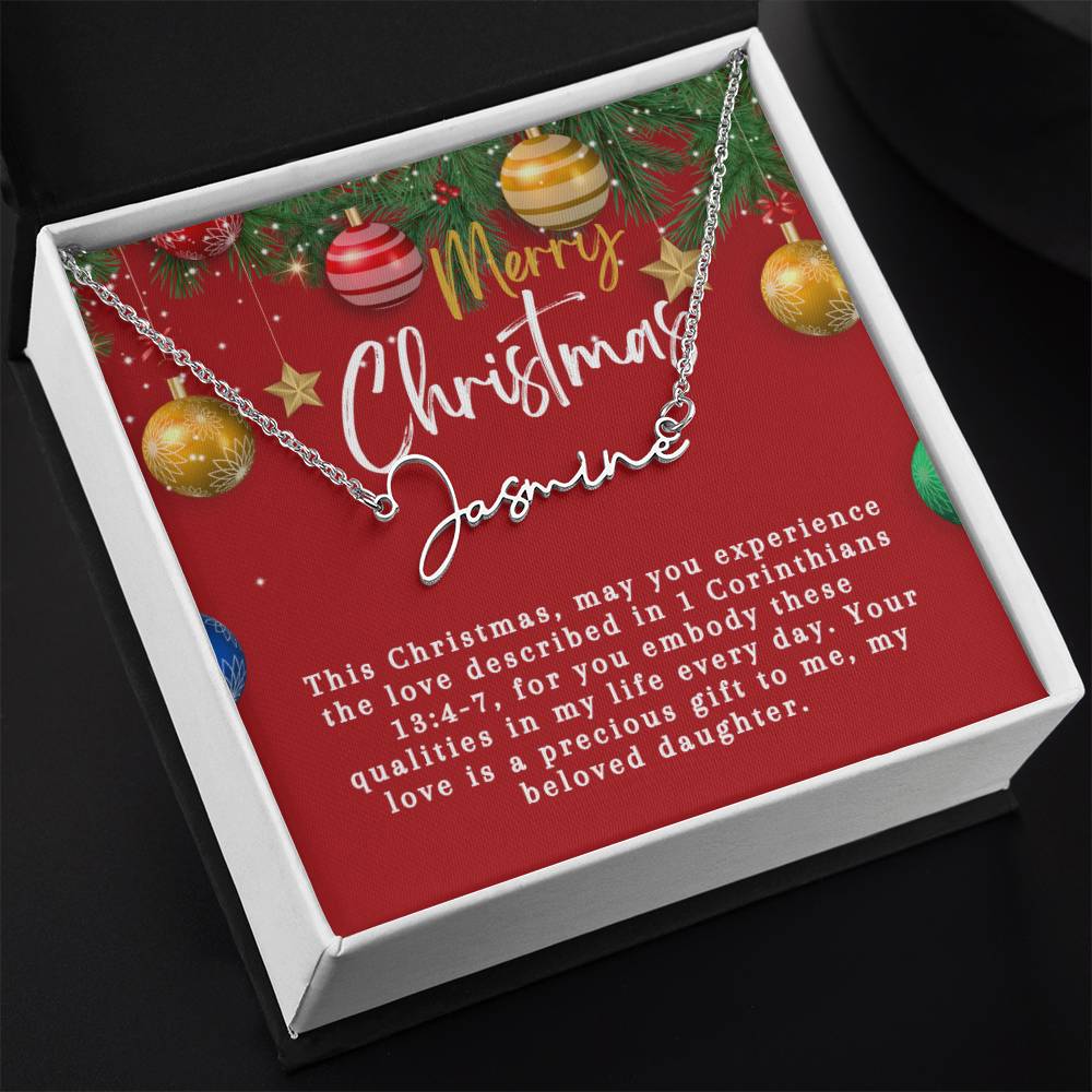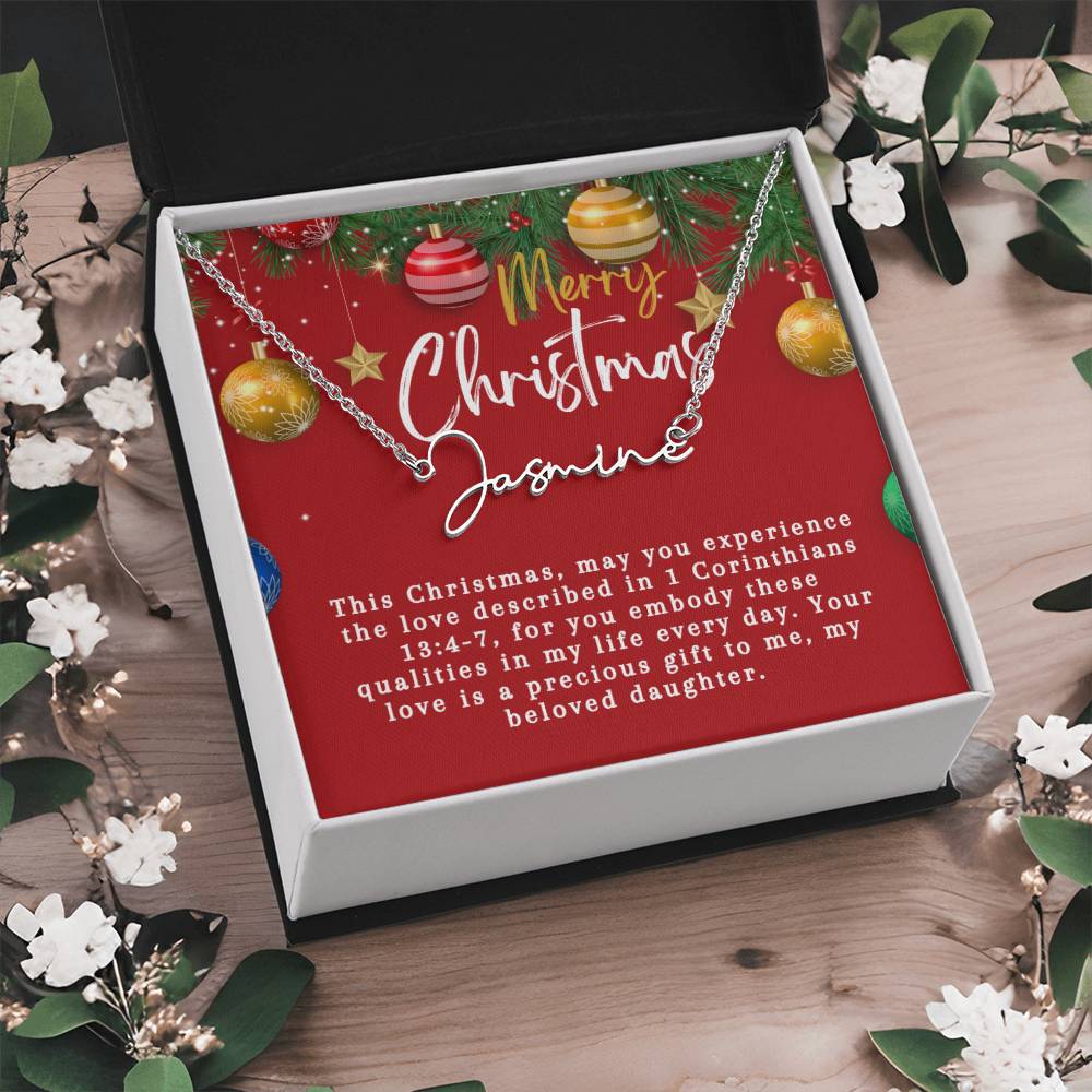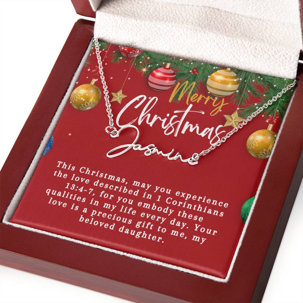 Personalised Name Necklace For Daughter ~1 Corinthians 13:4-7~ (Signature Font)