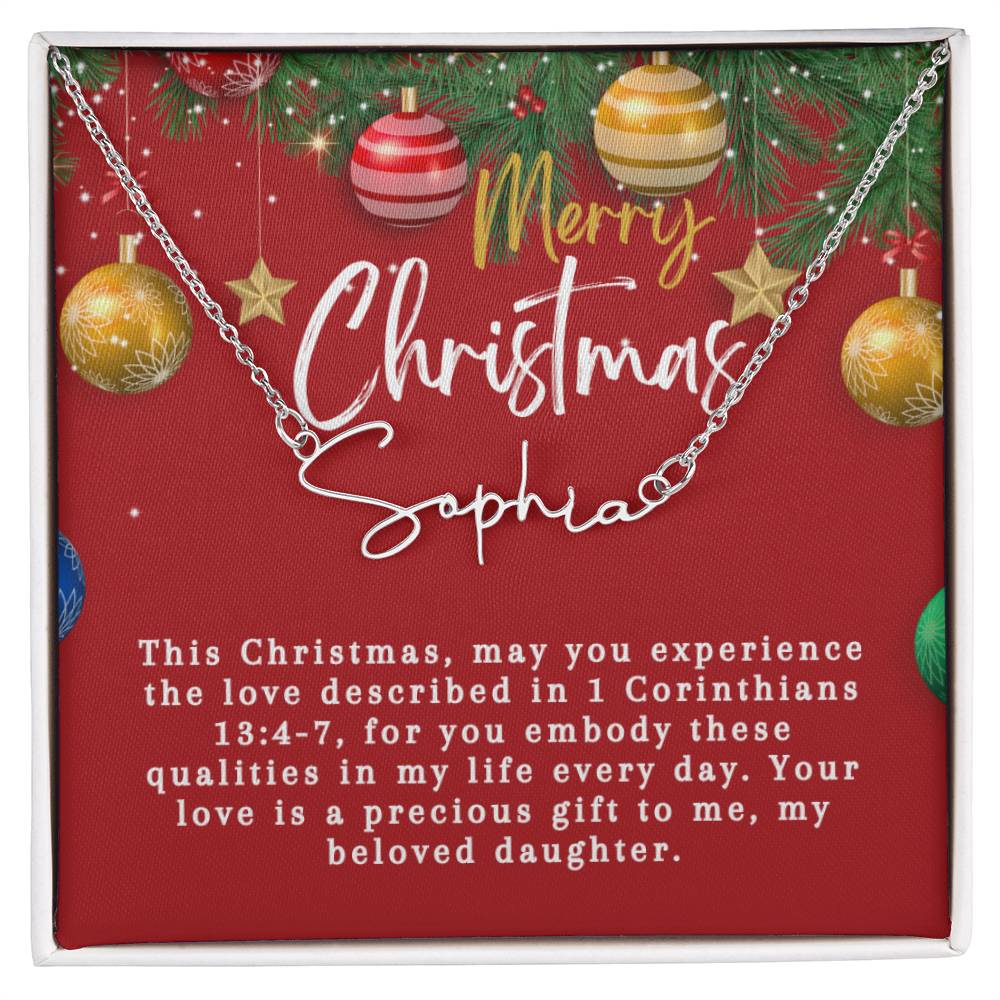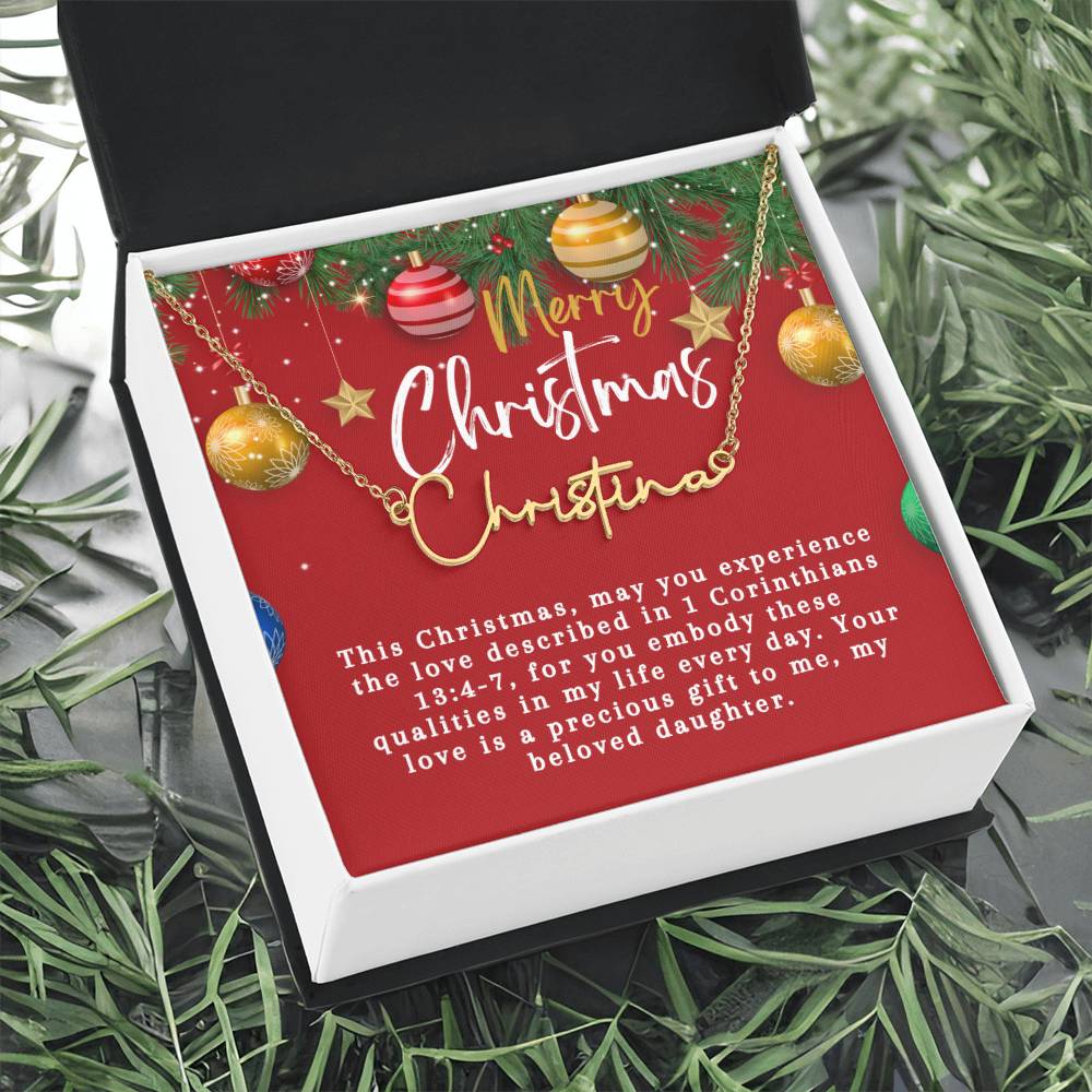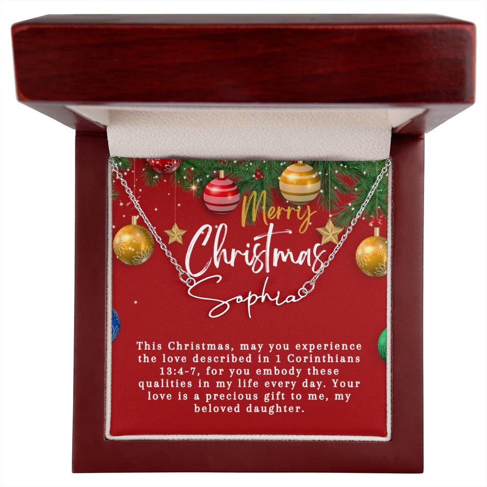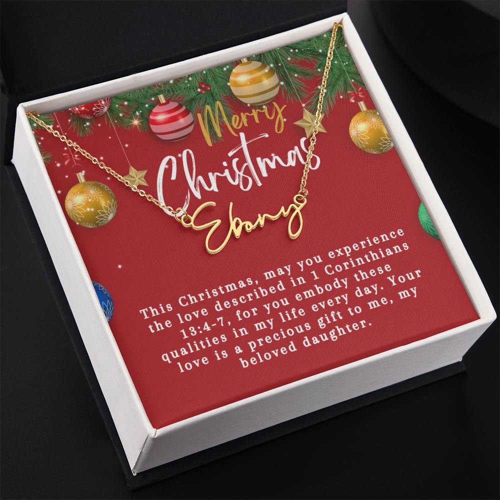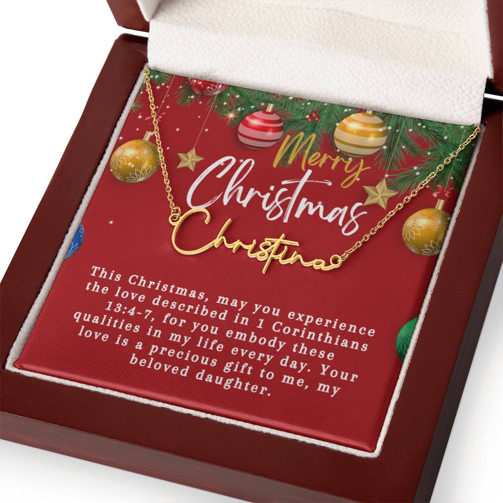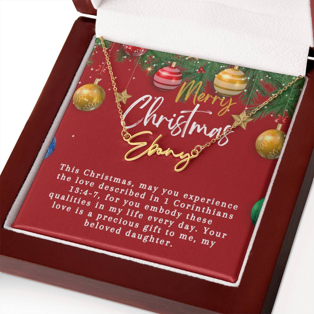 Personalised Name Necklace For Daughter ~1 Corinthians 13:4-7~ (Signature Font)