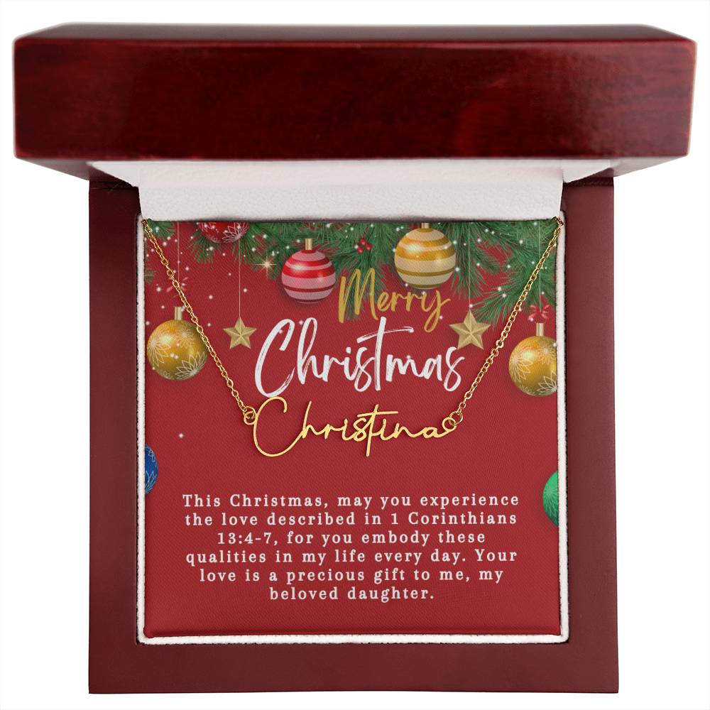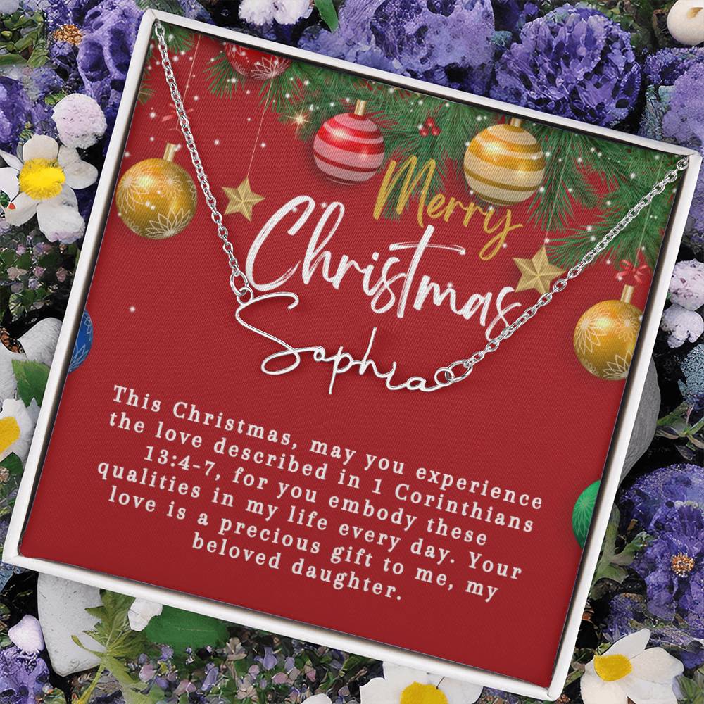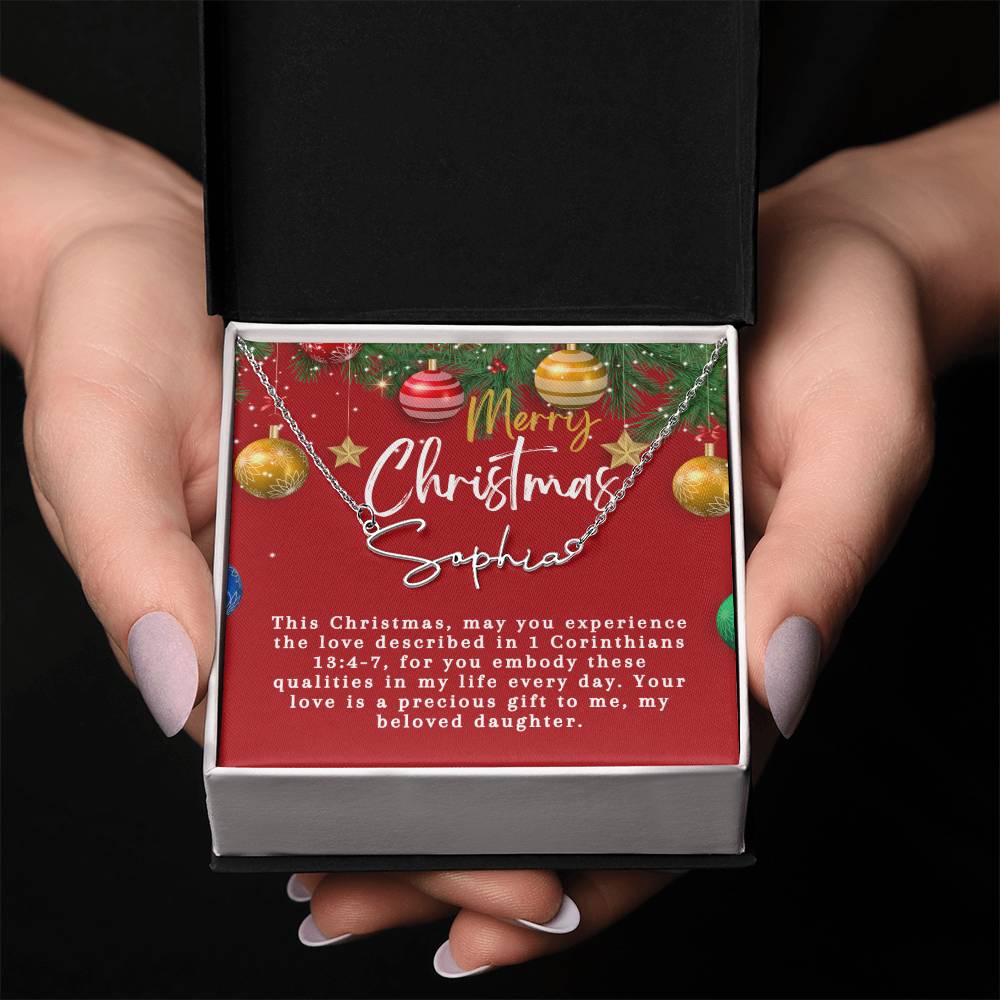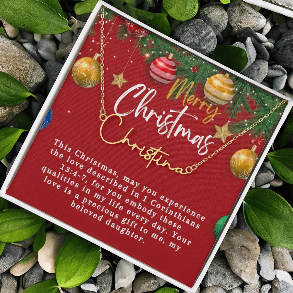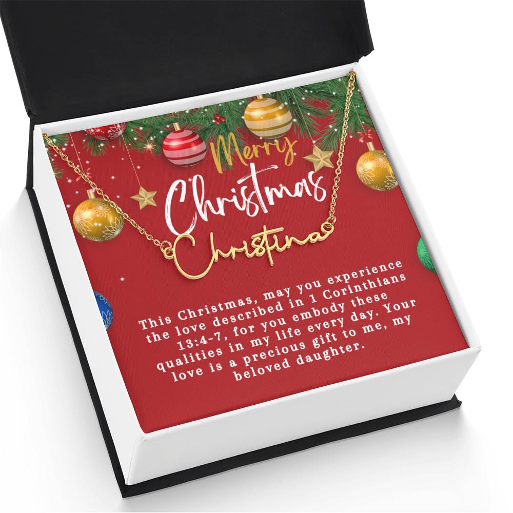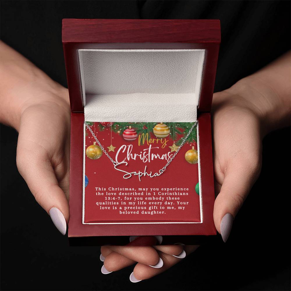 Personalised Name Necklace For Daughter ~1 Corinthians 13:4-7~ (Signature Font)