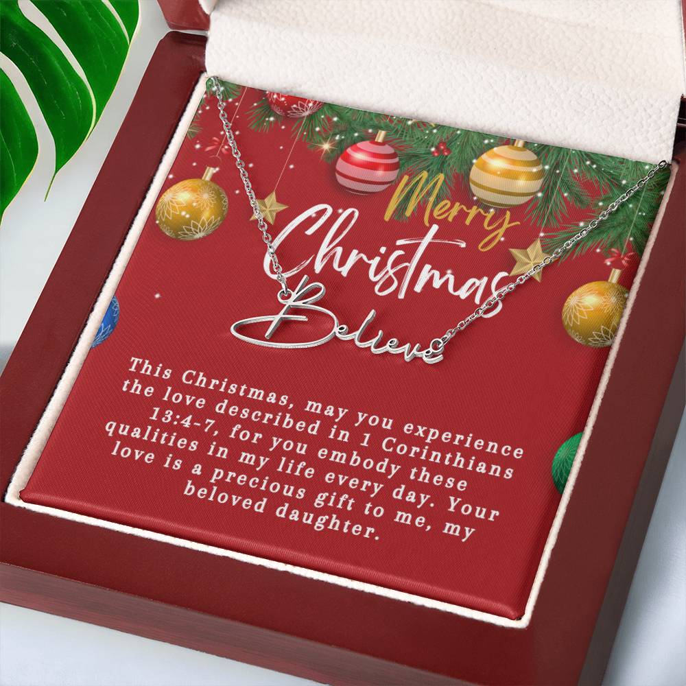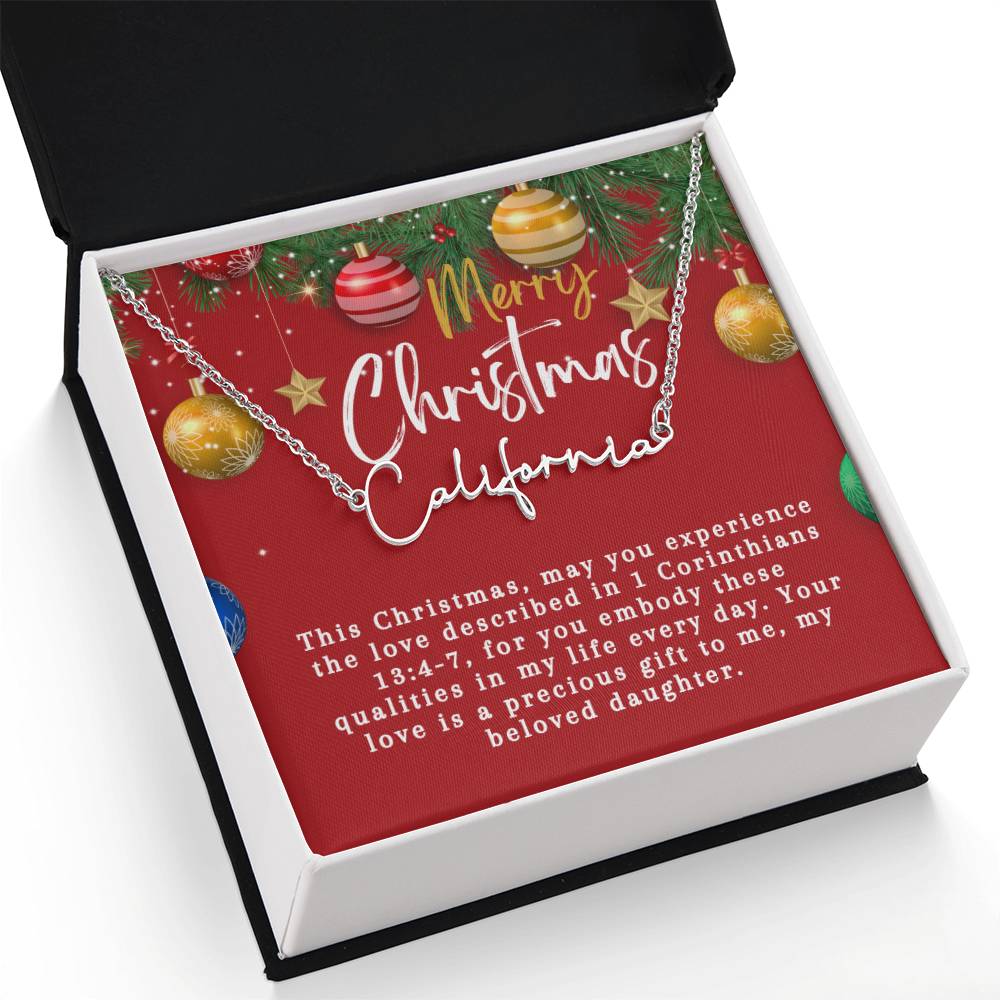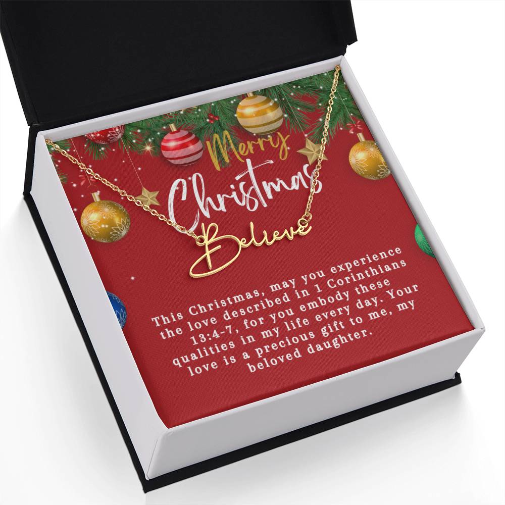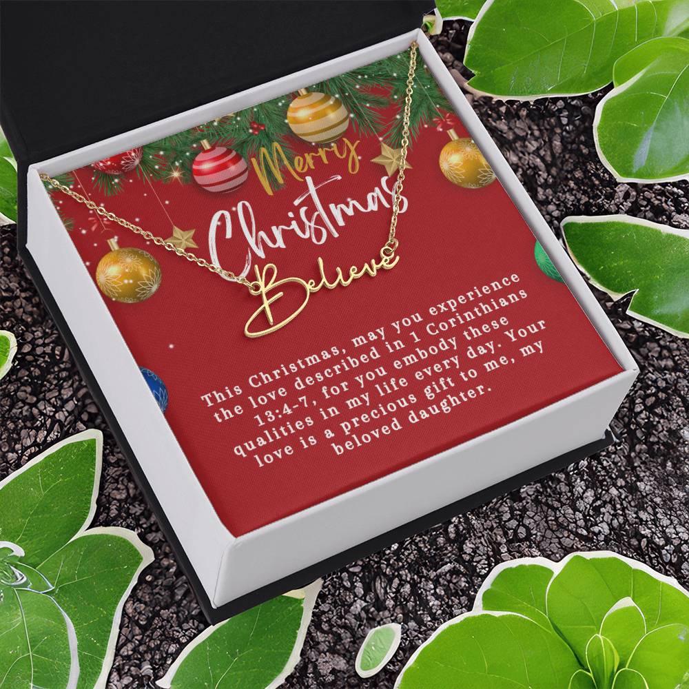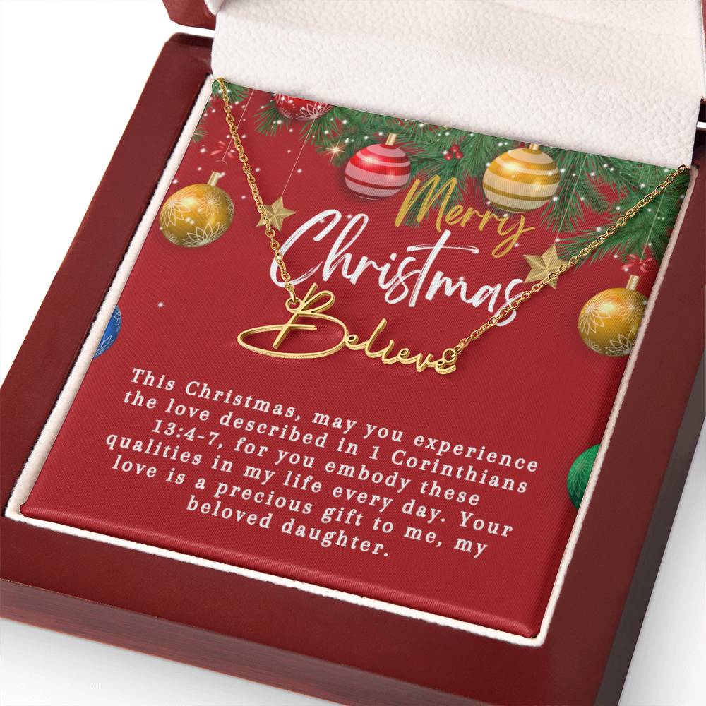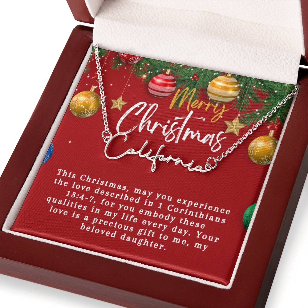 Personalised Name Necklace For Daughter ~1 Corinthians 13:4-7~ (Signature Font)