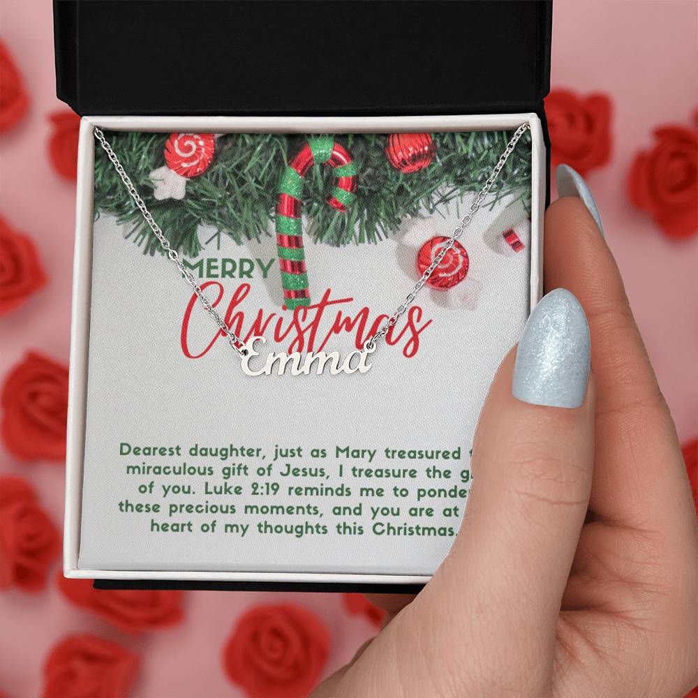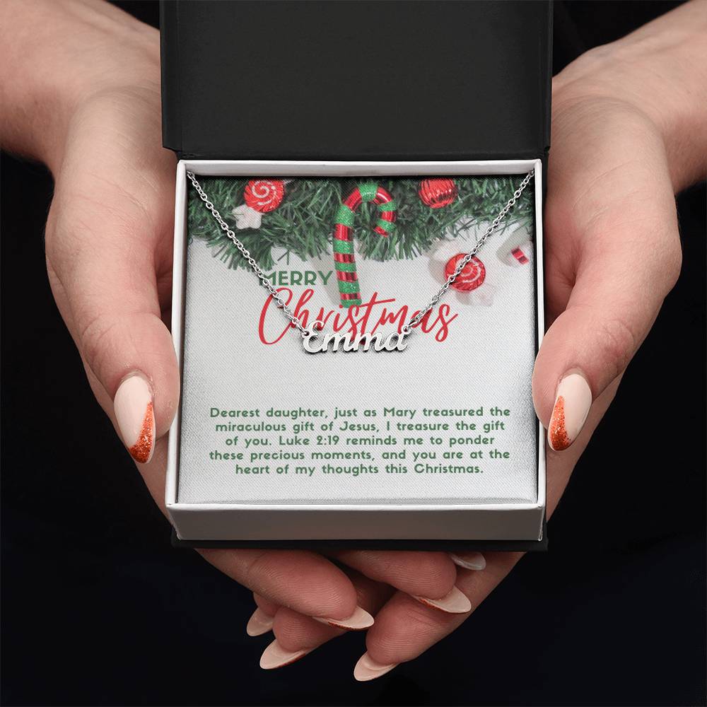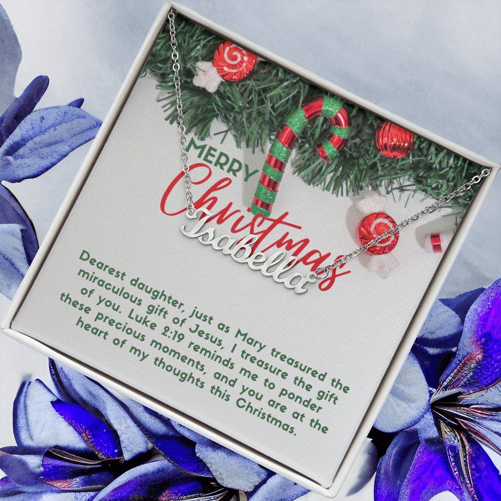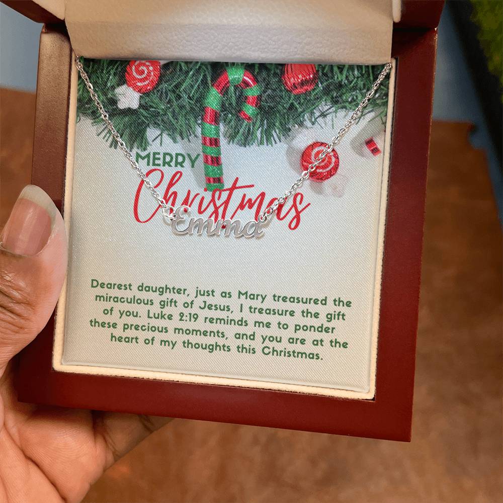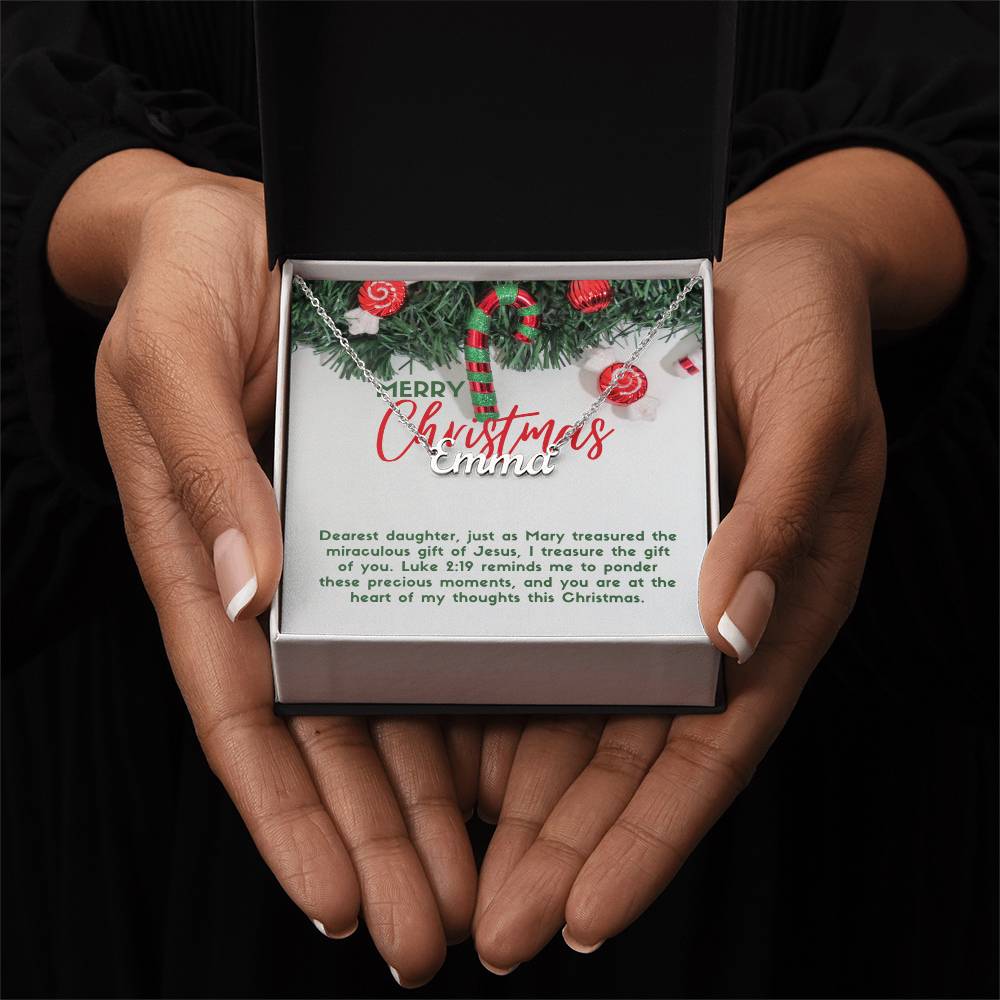 Personalised Name Necklace For Daughter ~Luke 2:19~ (Horizontal)