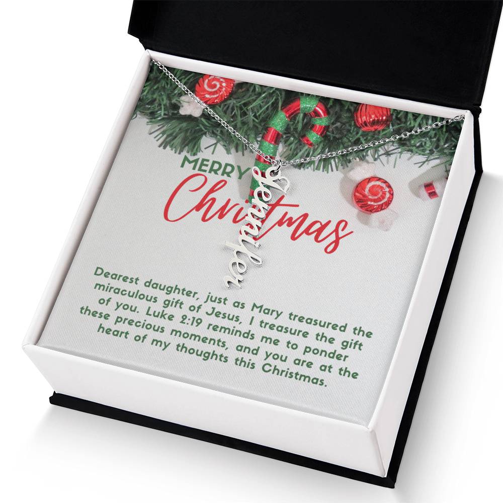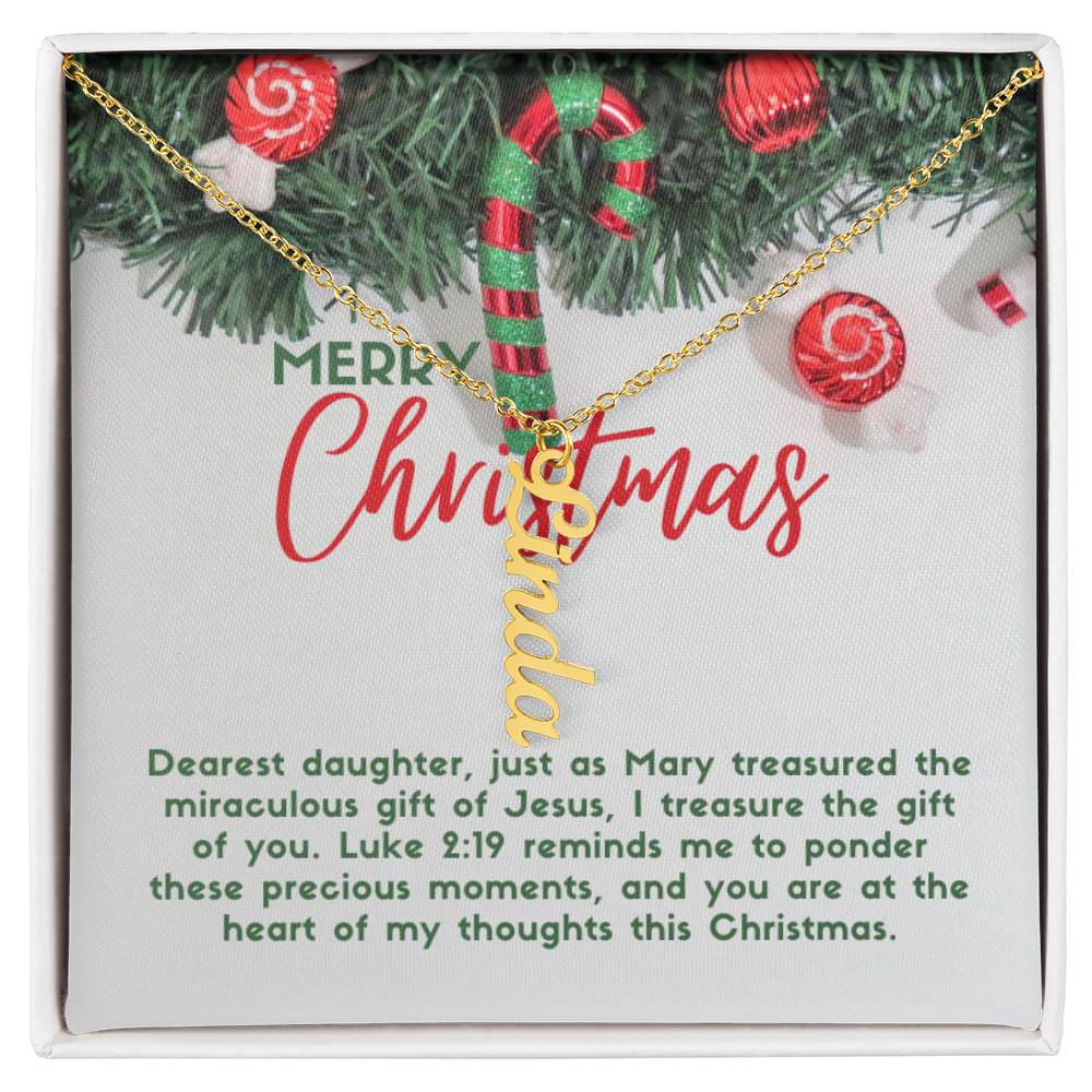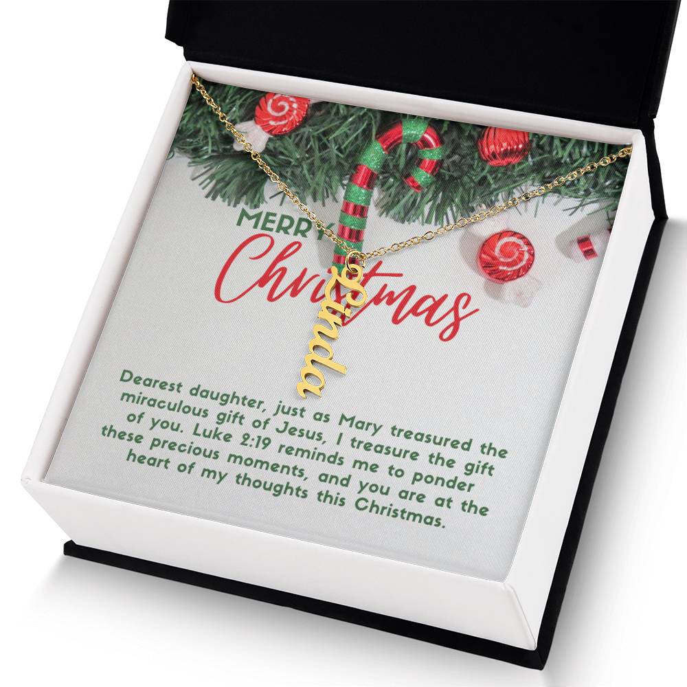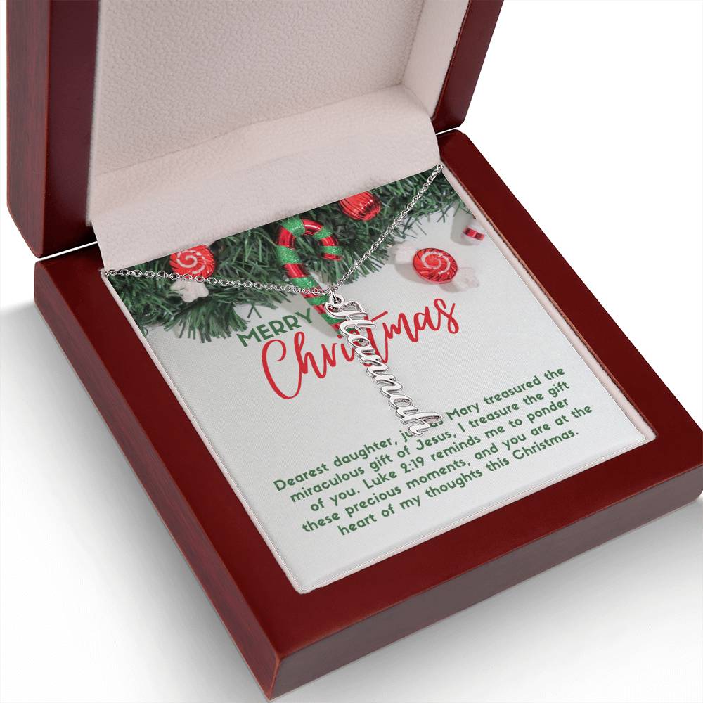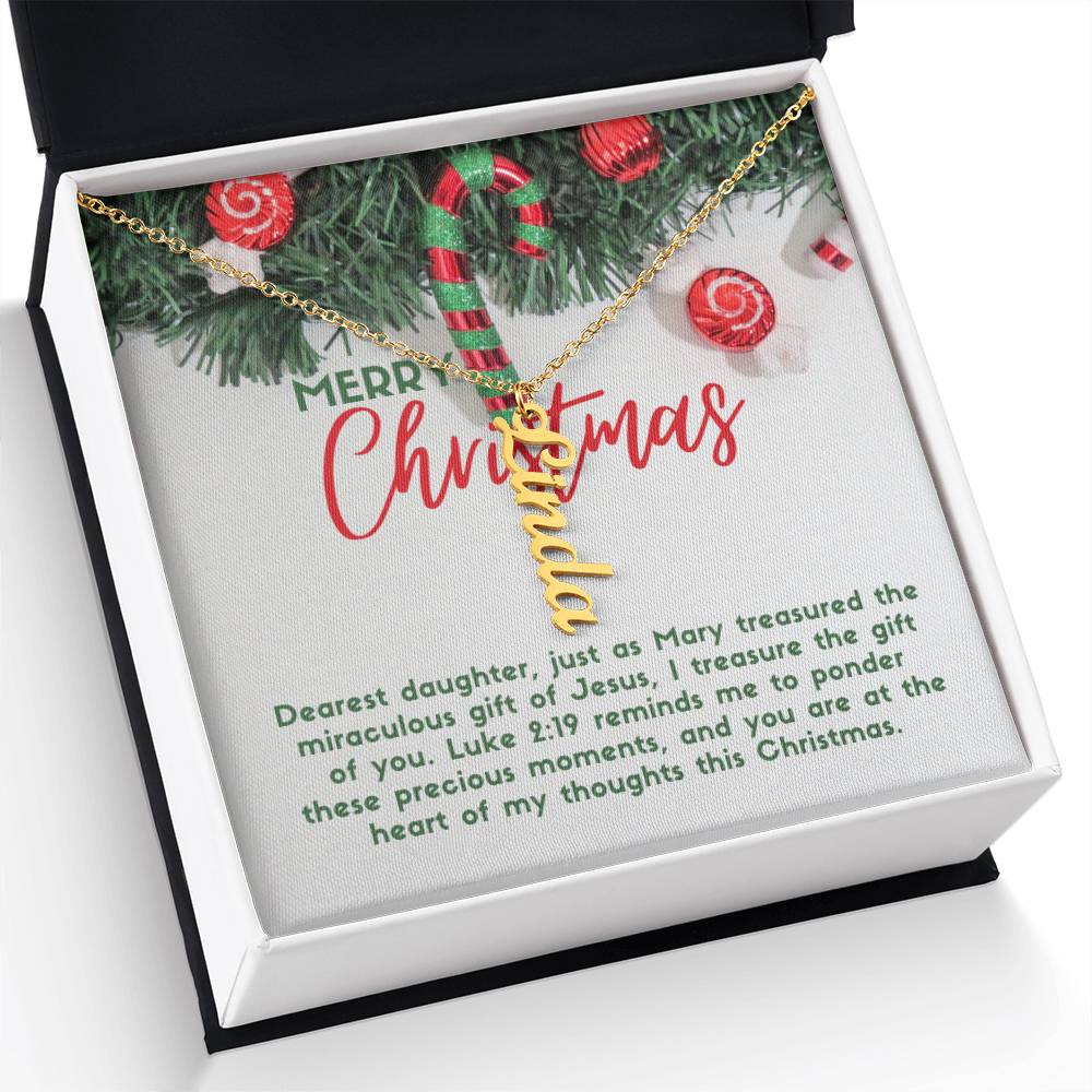 Personalised Name Necklace For Daughter ~Luke 2:19~ (Vertical)