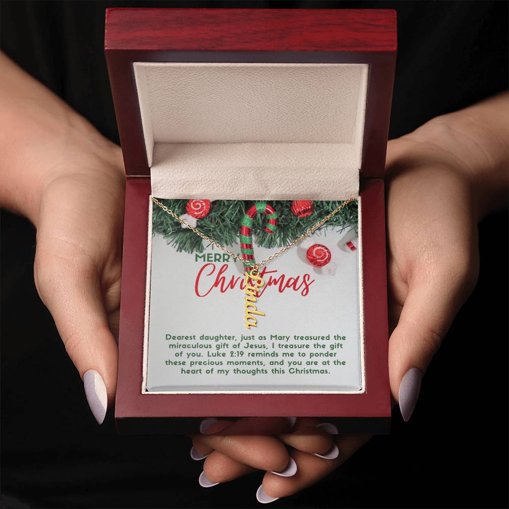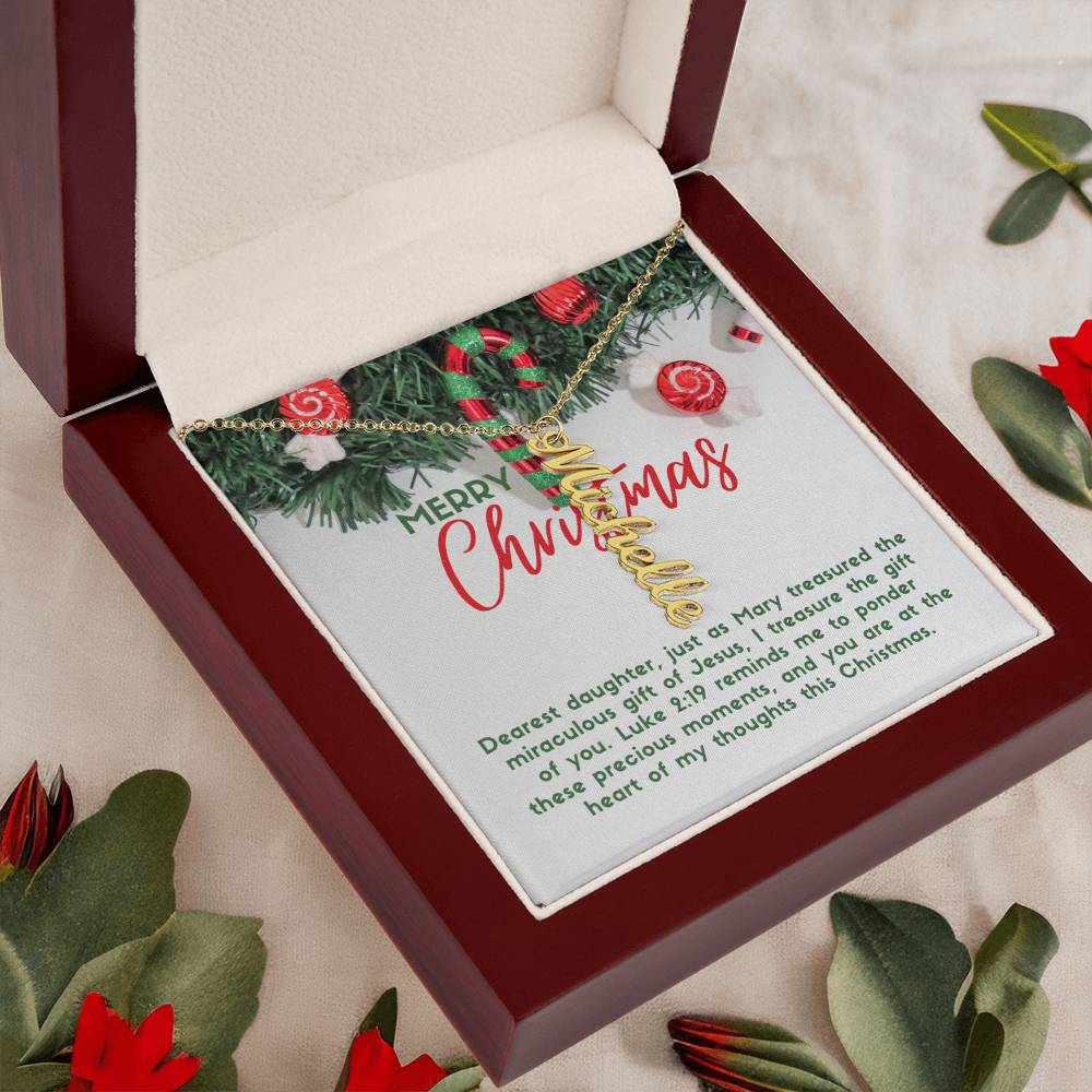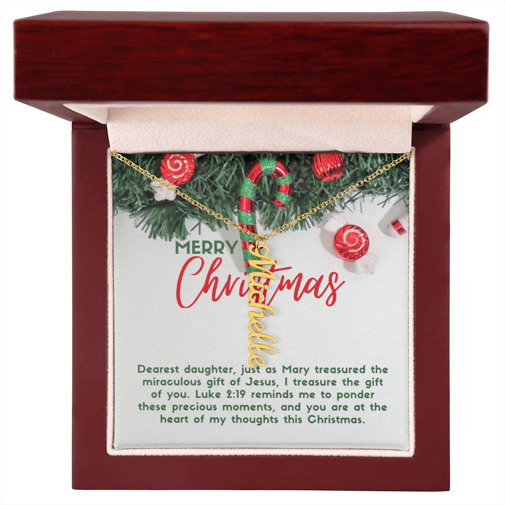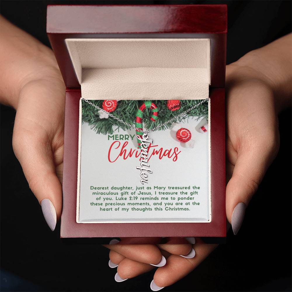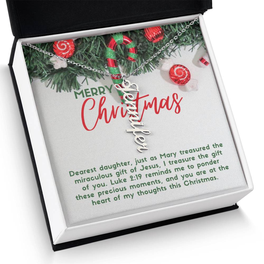 Personalised Name Necklace For Daughter ~Luke 2:19~ (Vertical)