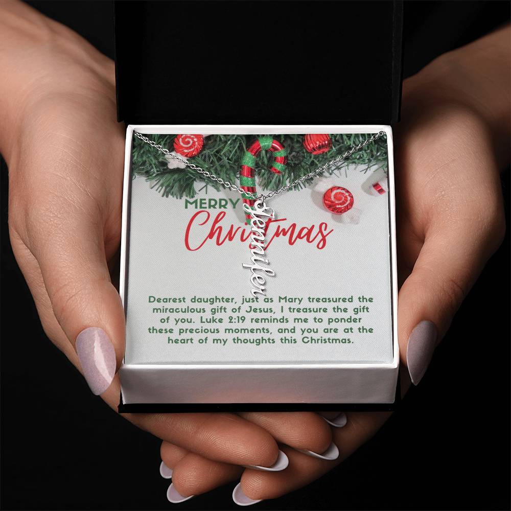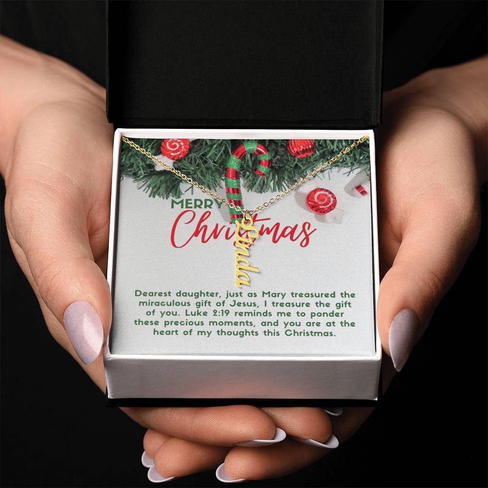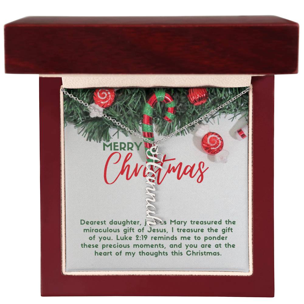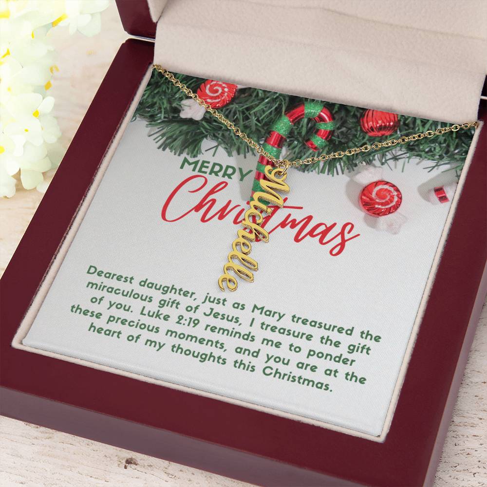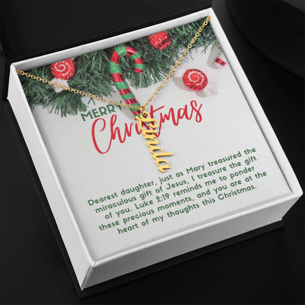 Personalised Name Necklace For Daughter ~Luke 2:19~ (Vertical)