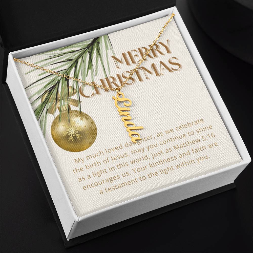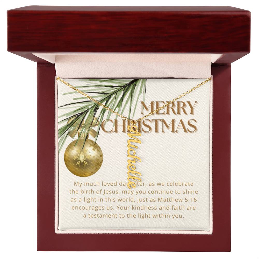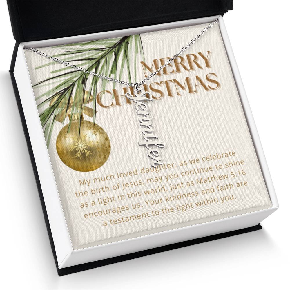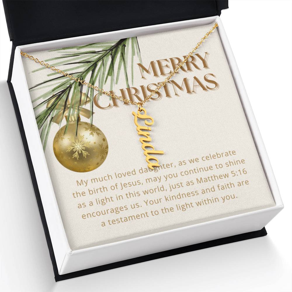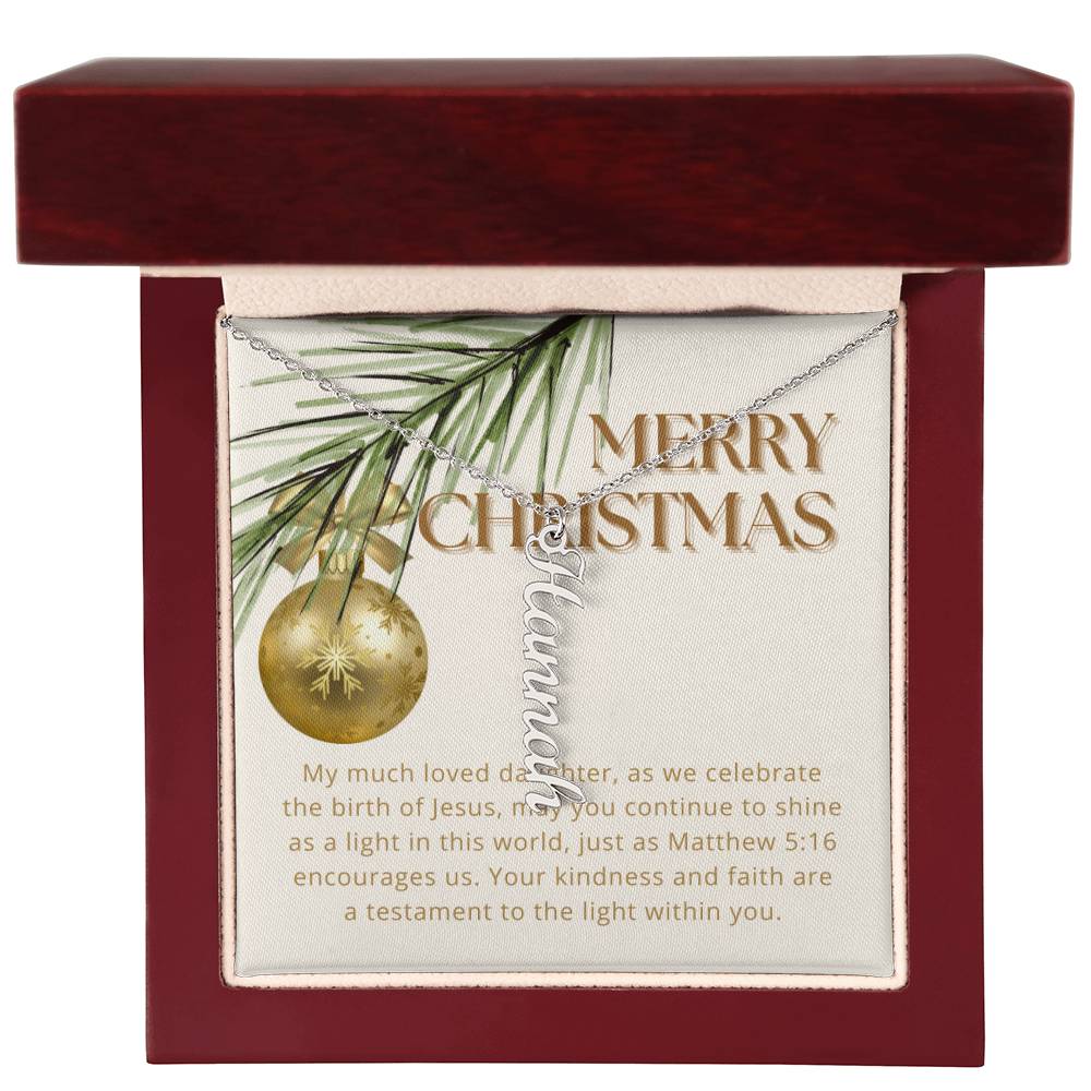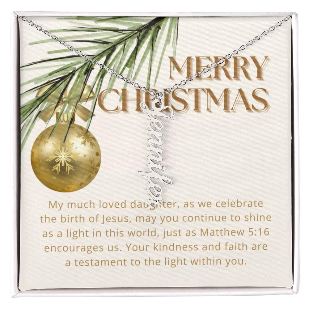 Personalised Name Necklace For Daughter ~Matthew 5:16~ (Vertical)