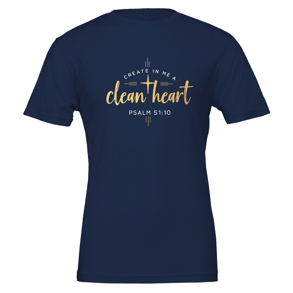 Premium Unisex Crewneck T-shirt | Create In Me A Clean Heart -Psalm 51:10-