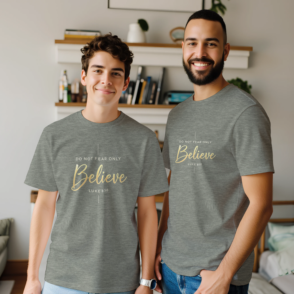 Crafted from premium, 100% combed and ring-spun cotton, this tee offers a feather-light feel and a durable, retail-quality fit that lasts. The sleek, modern unisex cut provides a clean, confident look, whether you’re heading to a small group, running errands, or enjoying a quiet day of reflection.