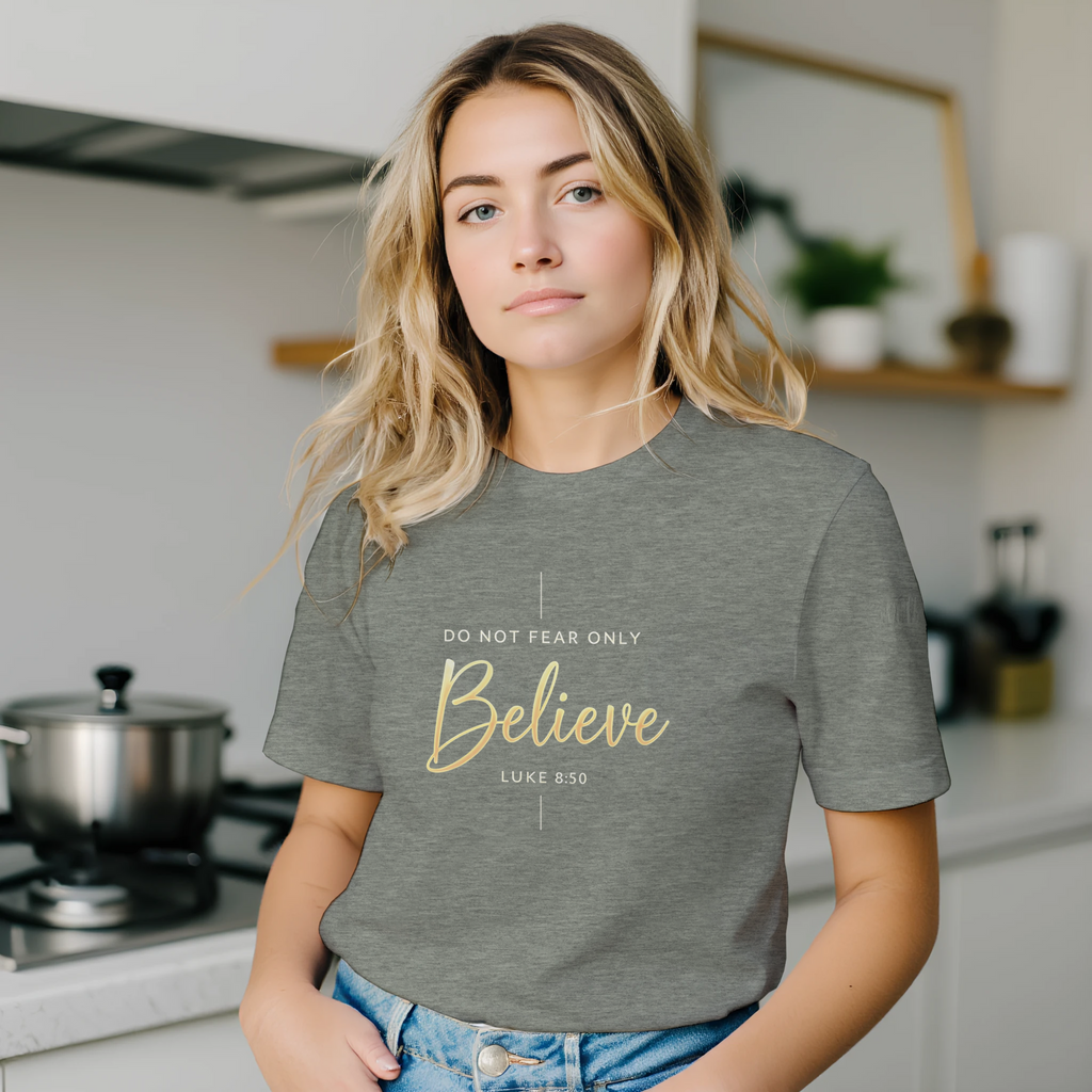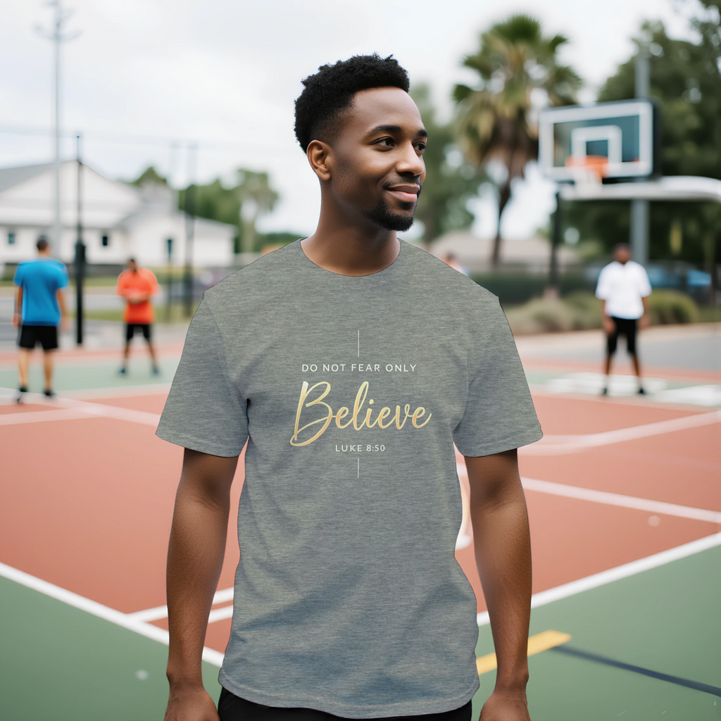 Premium Unisex Crewneck T-shirt | Do Not Fear; Only Believe -Luke 8:50-