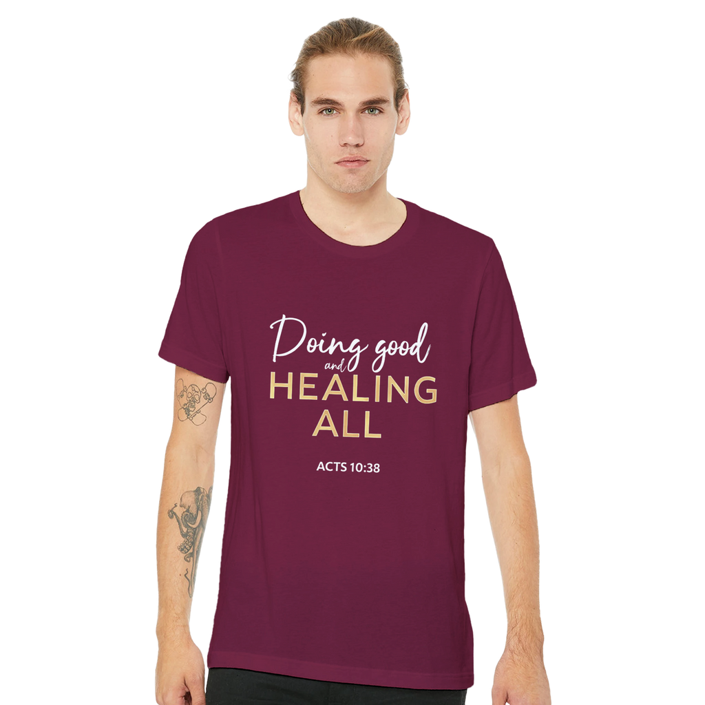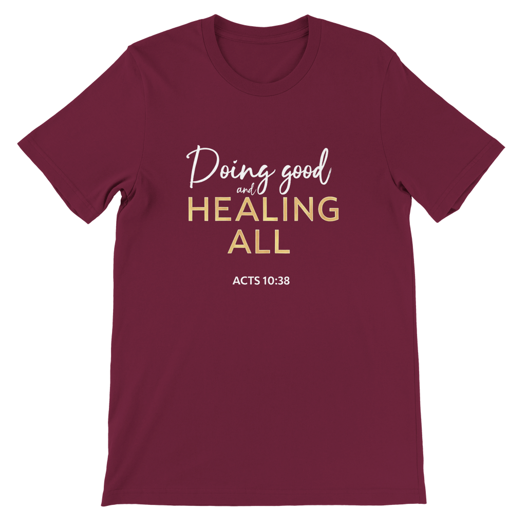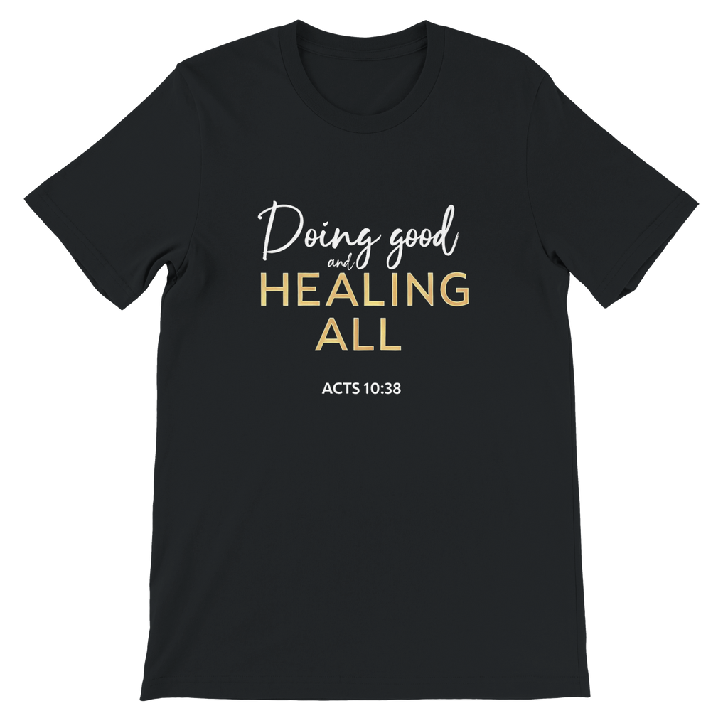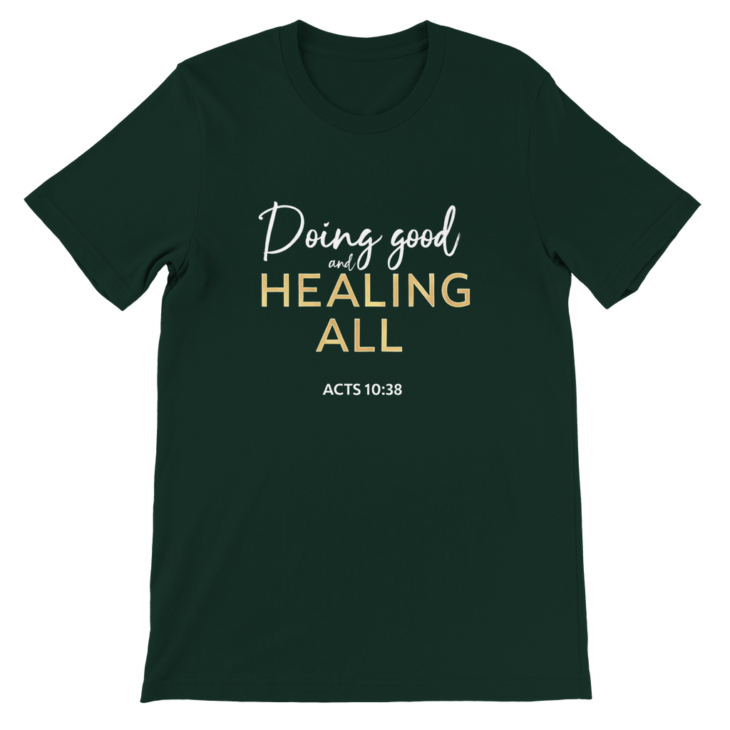 Premium Unisex Crewneck T-shirt | Doing Good And Healing All -Acts 10:38-