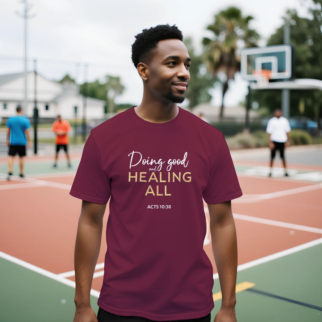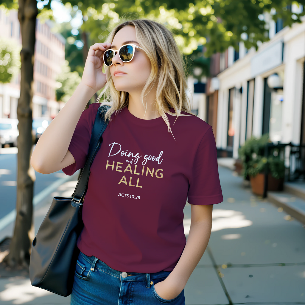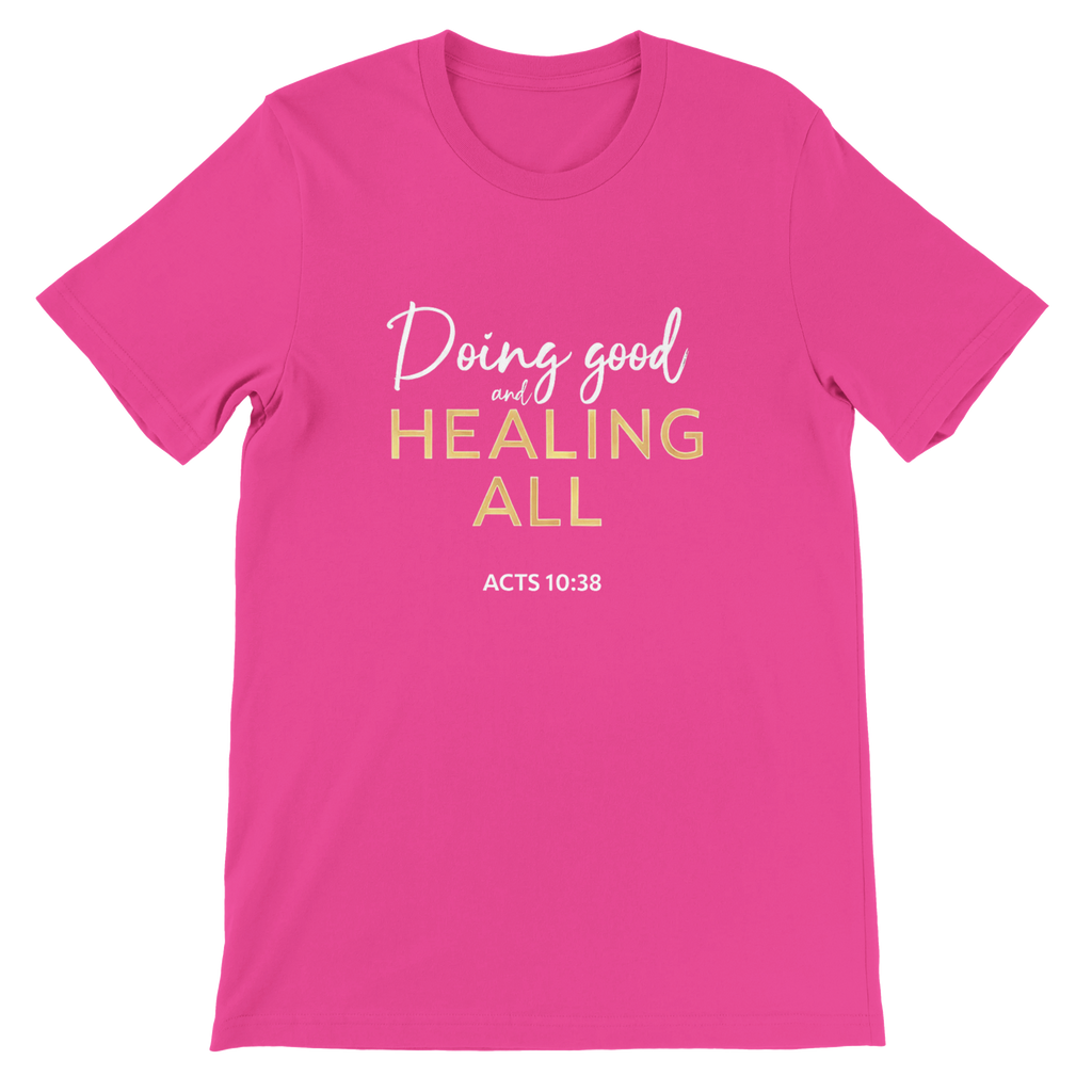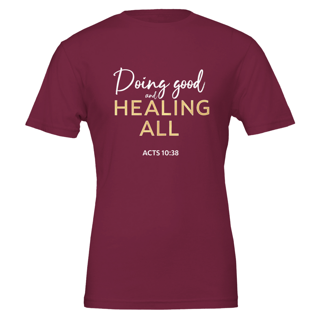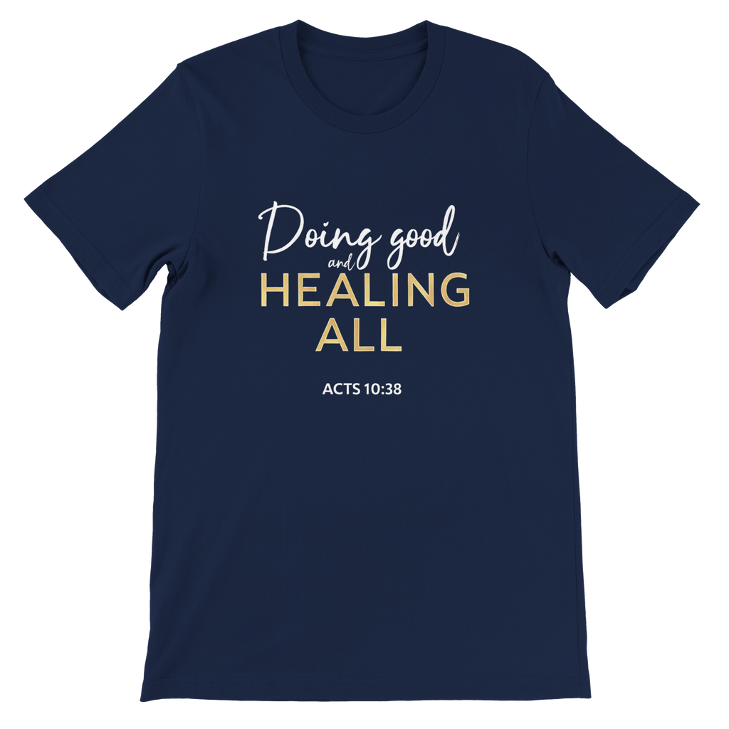 Premium Unisex Crewneck T-shirt | Doing Good And Healing All -Acts 10:38-