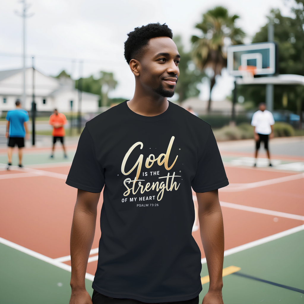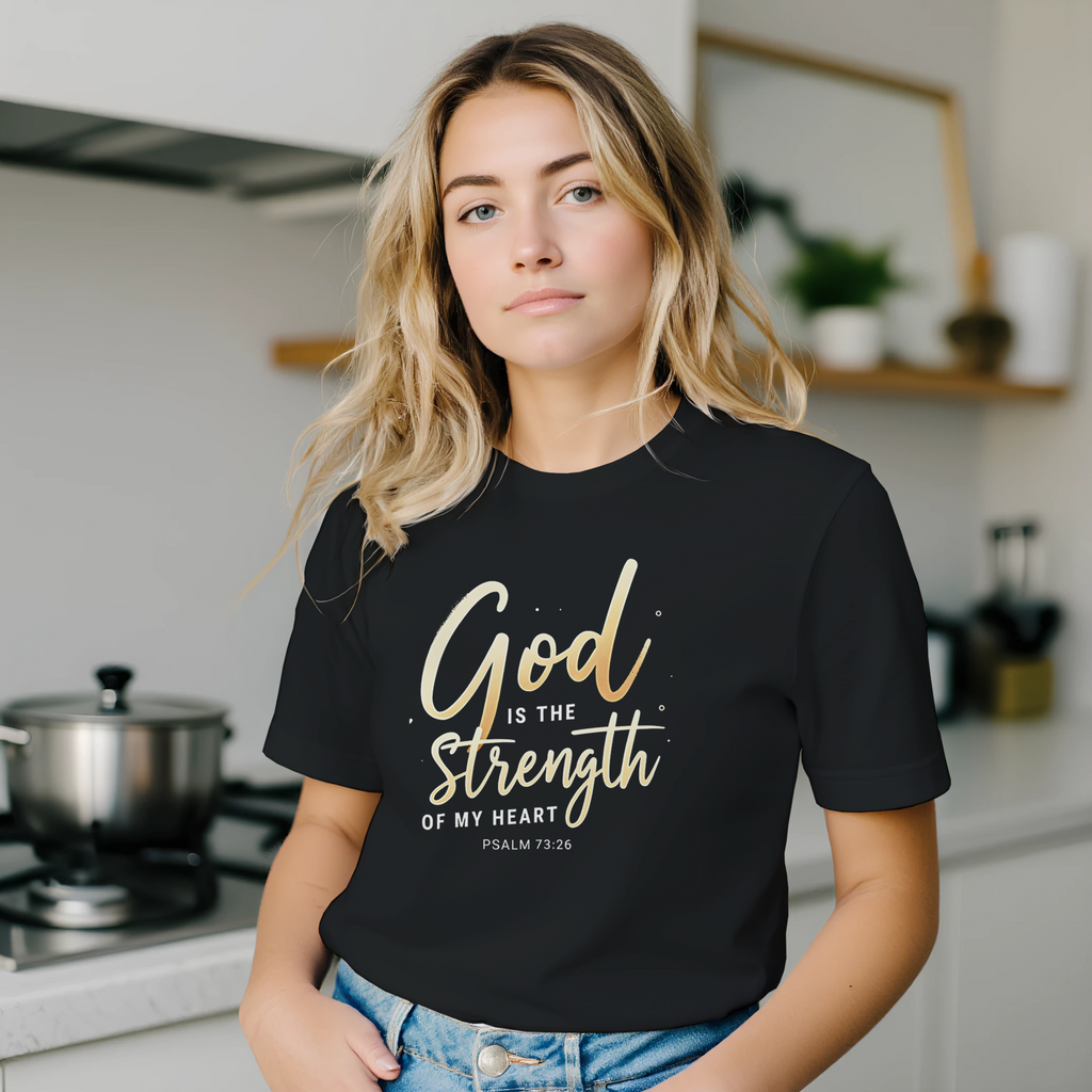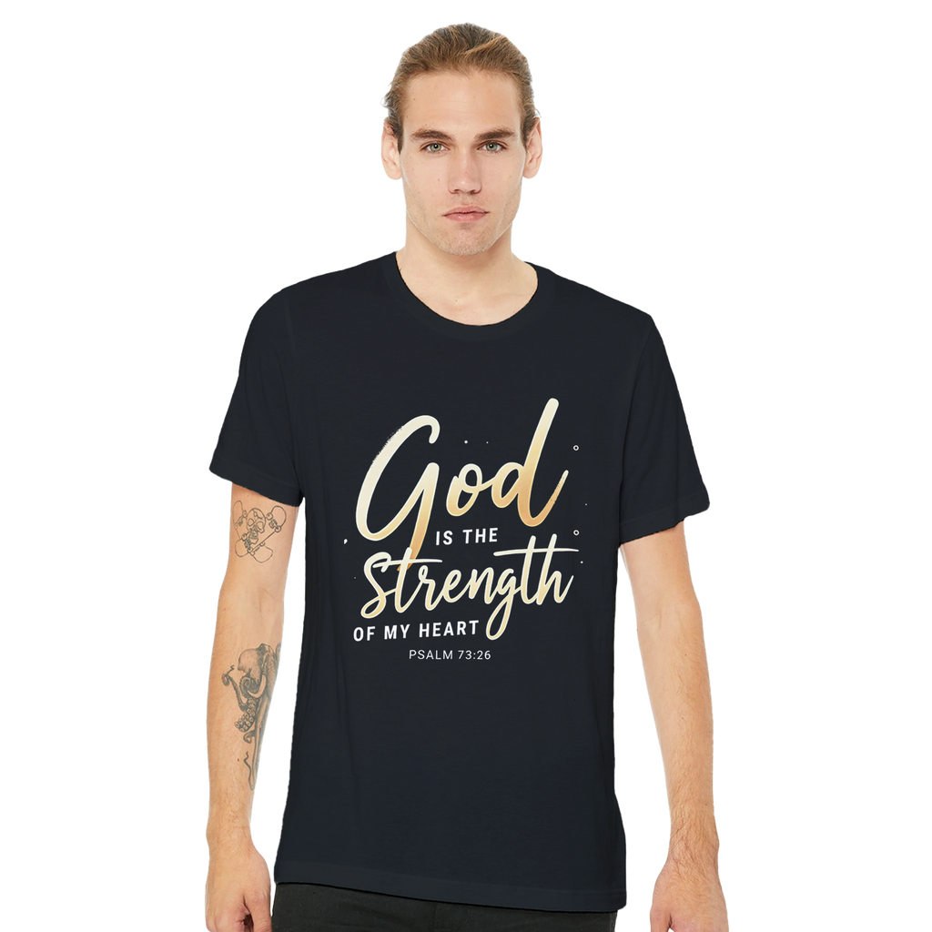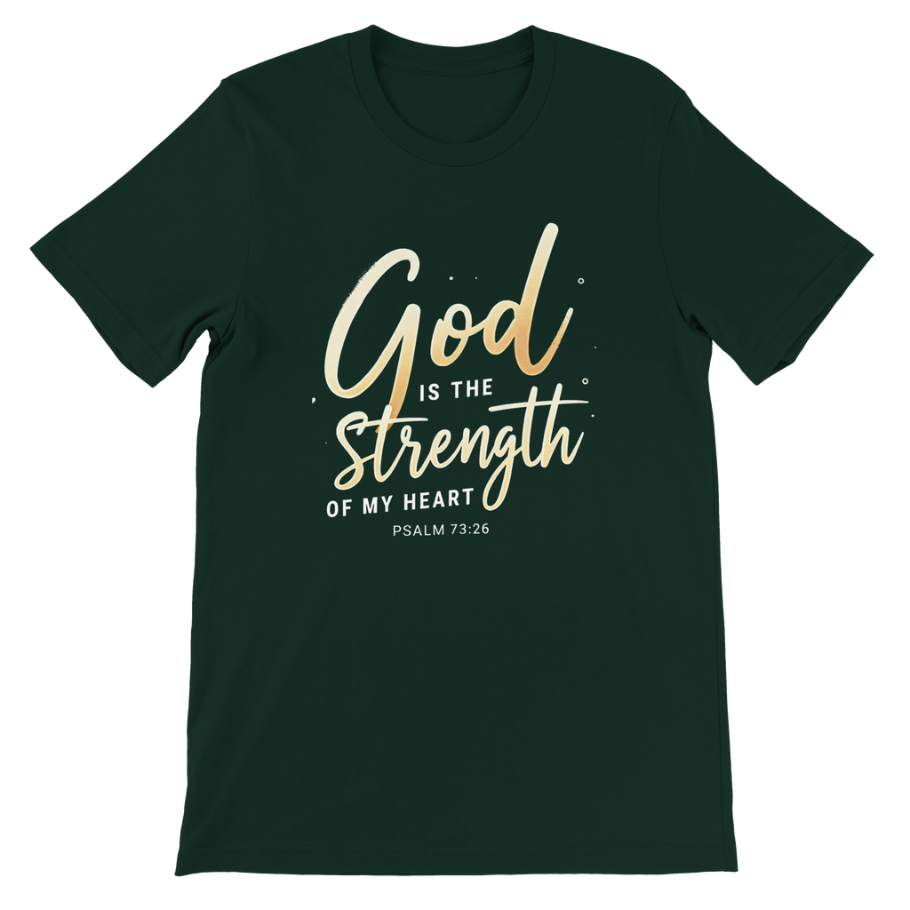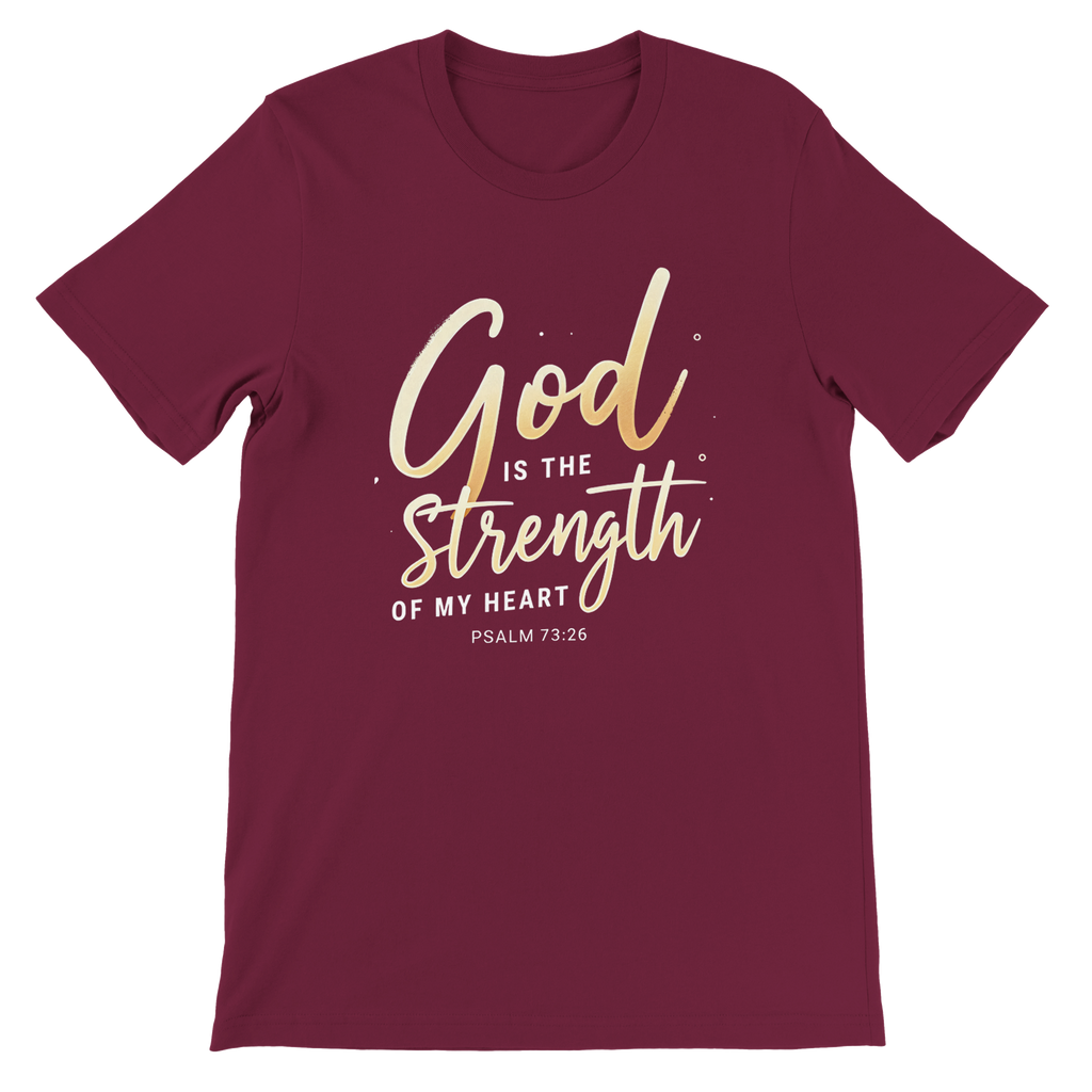 Premium Unisex Crewneck T-shirt | God is the Strength of My Heart -Psalm 73:26-