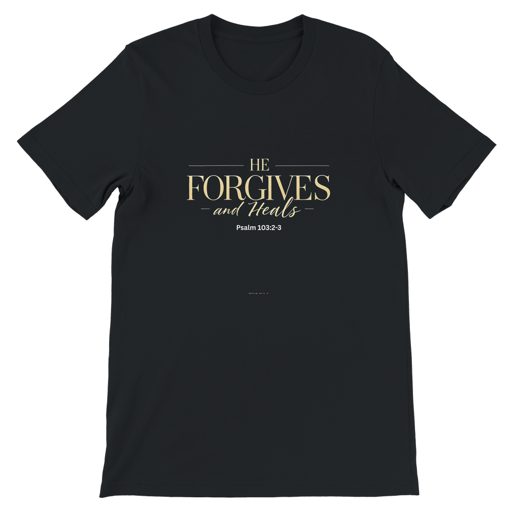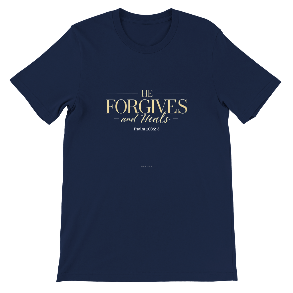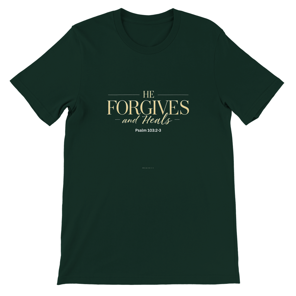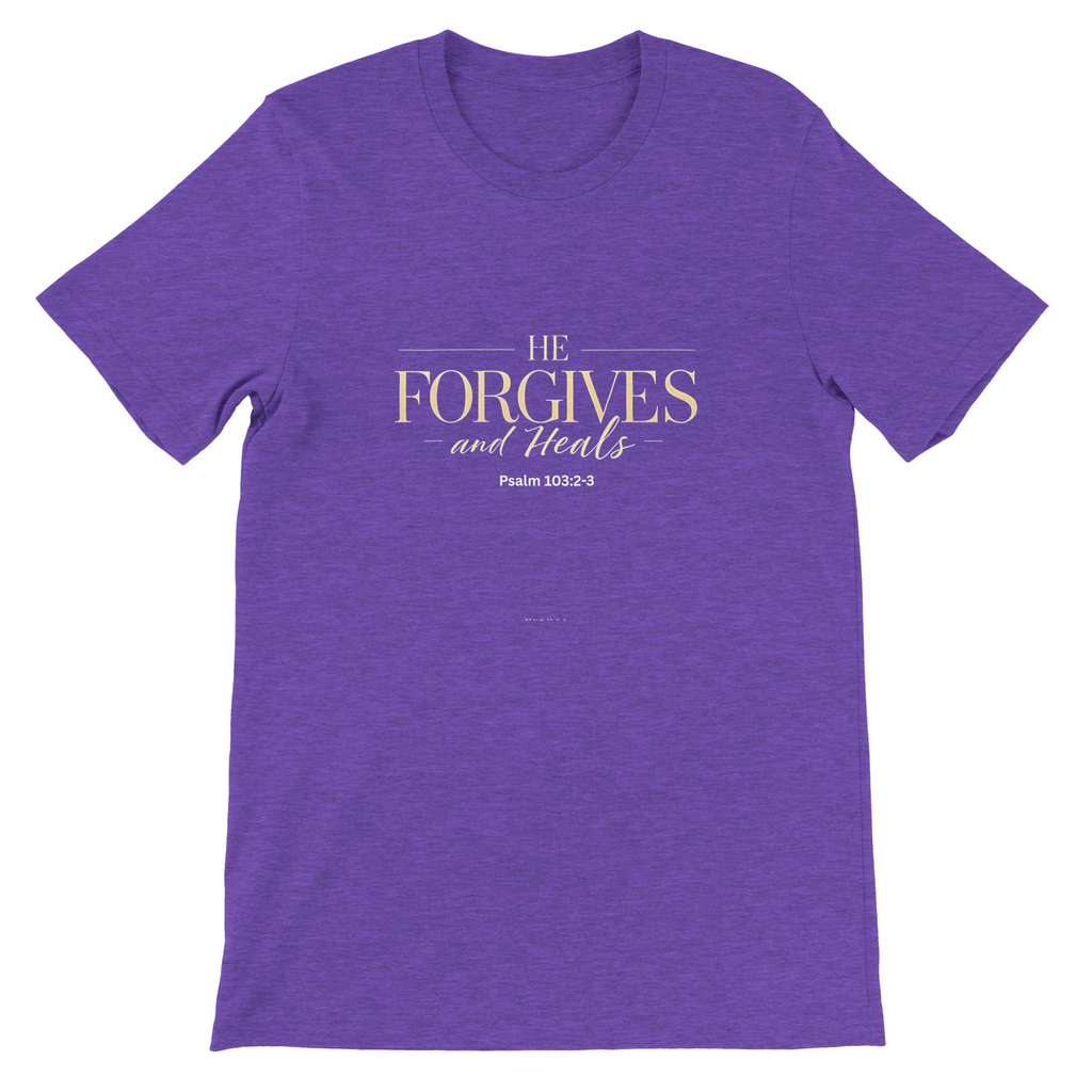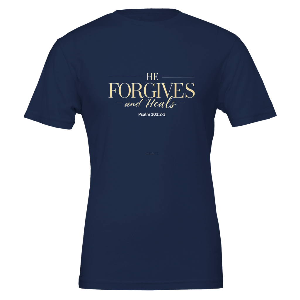 Premium Unisex Crewneck T-shirt | He Forgives And Heals -Psalm 103:2-3 -