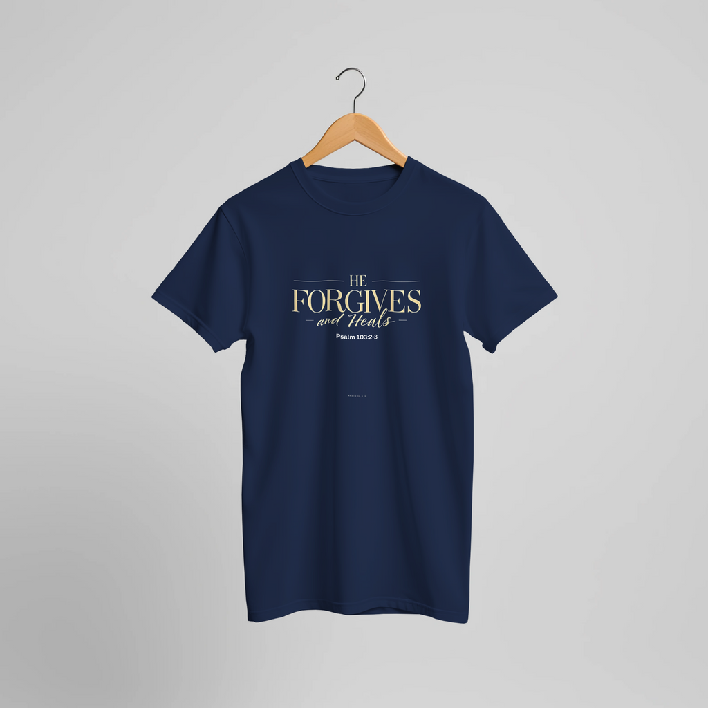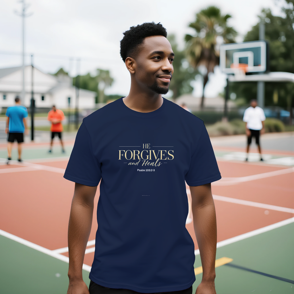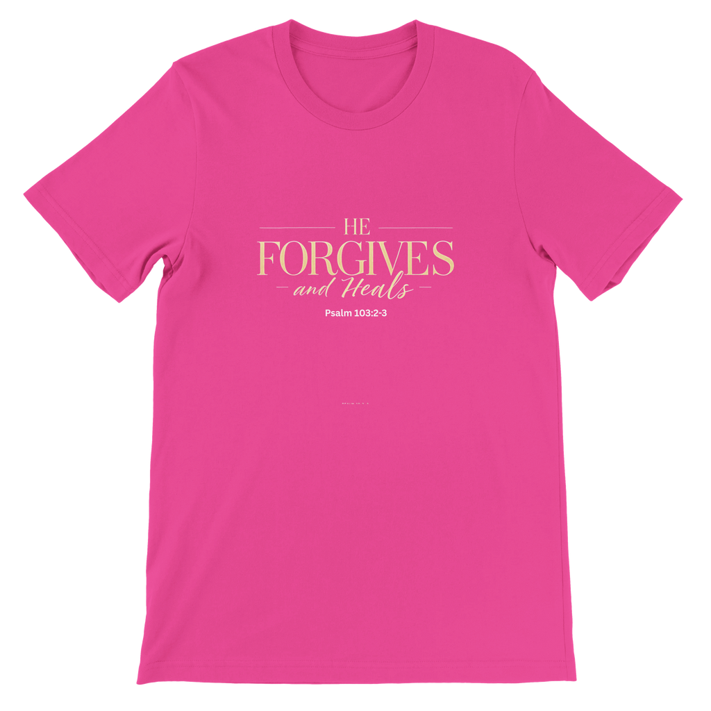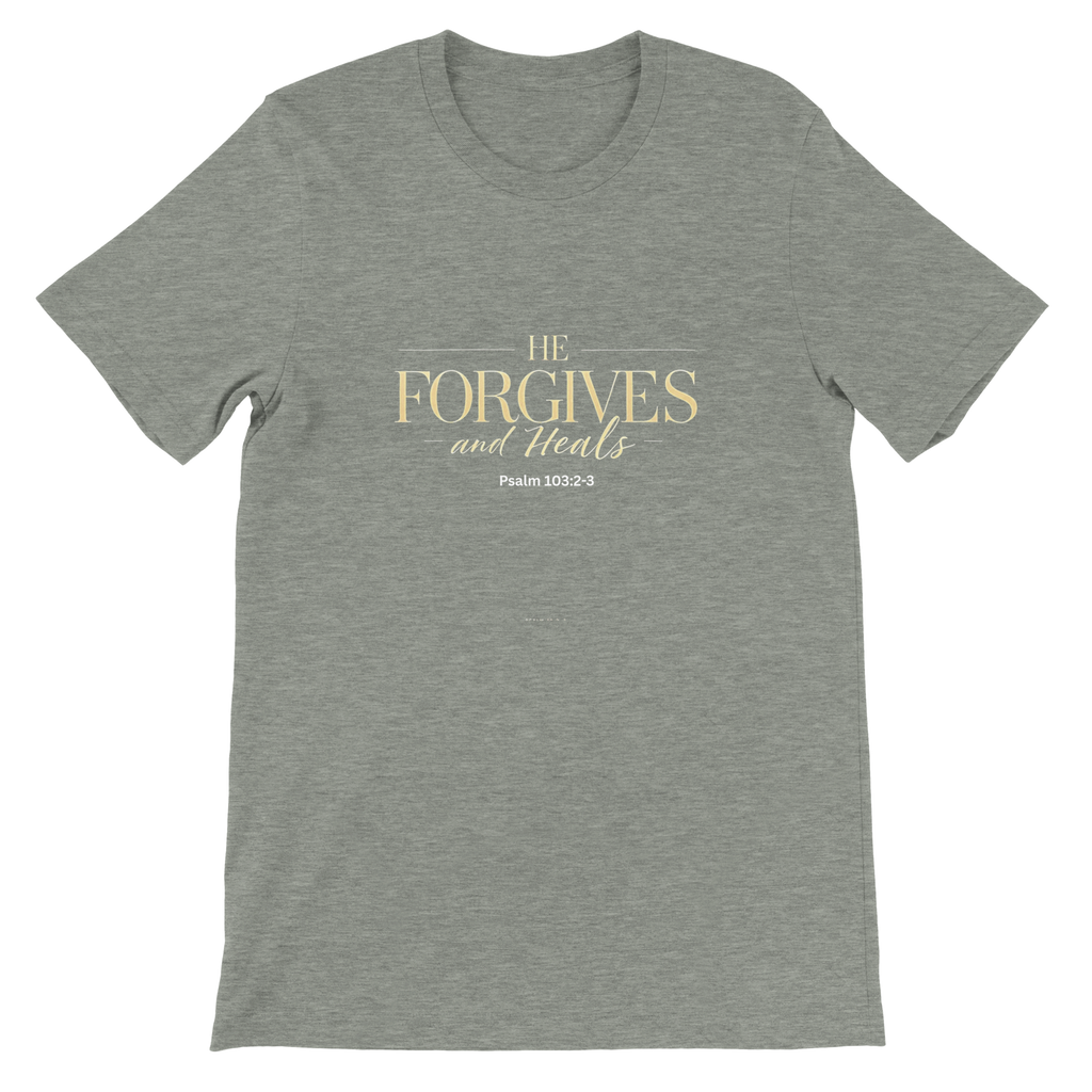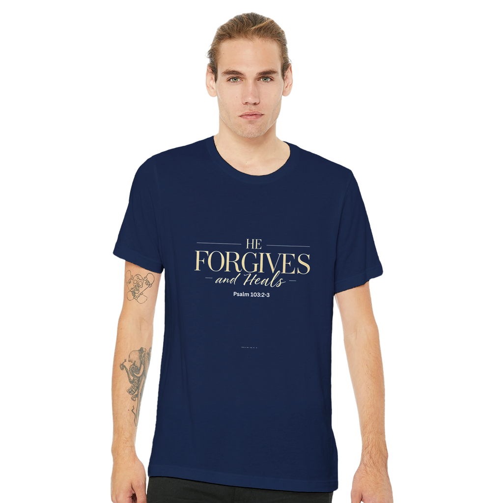 Premium Unisex Crewneck T-shirt | He Forgives And Heals -Psalm 103:2-3 -