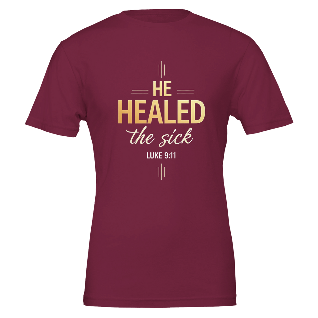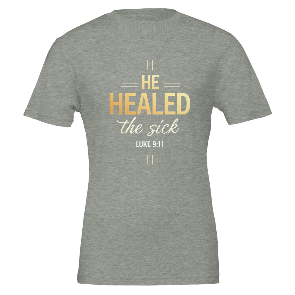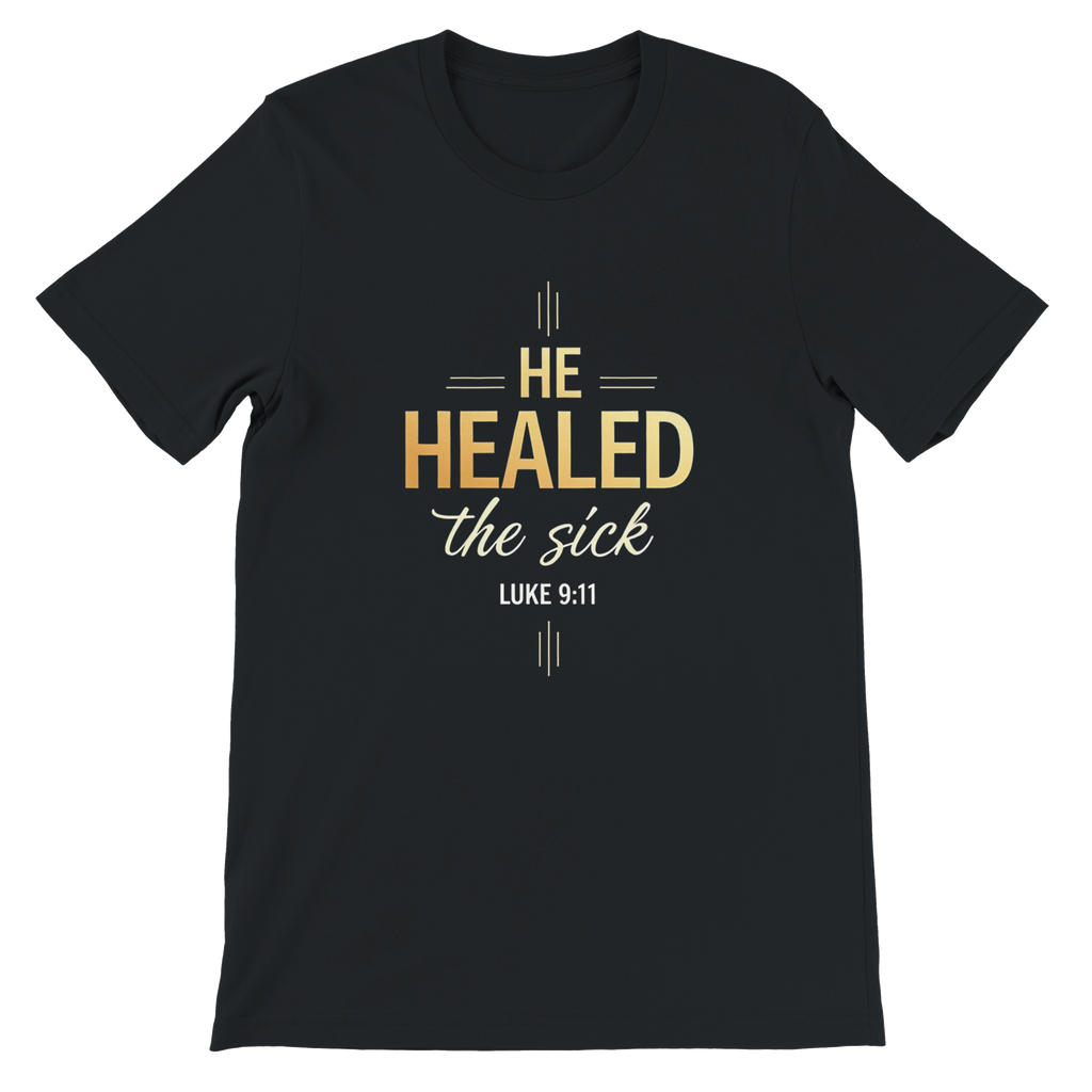 Premium Unisex Crewneck T-shirt | He Healed The Sick -Luke 9:11-