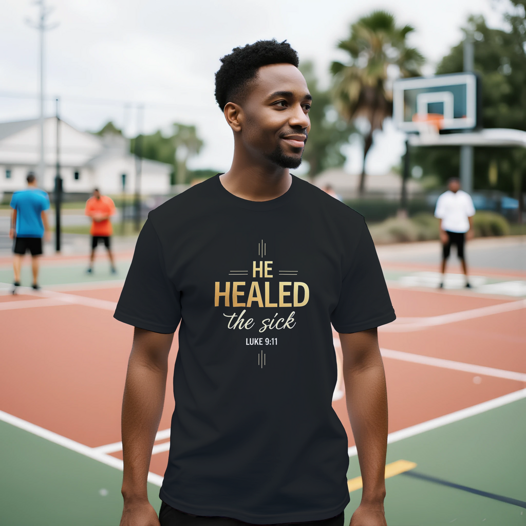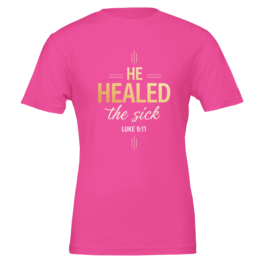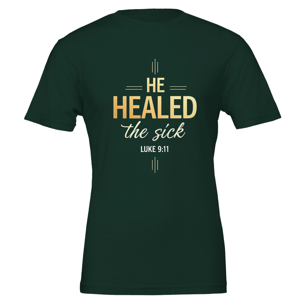Premium Unisex Crewneck T-shirt | He Healed The Sick -Luke 9:11-