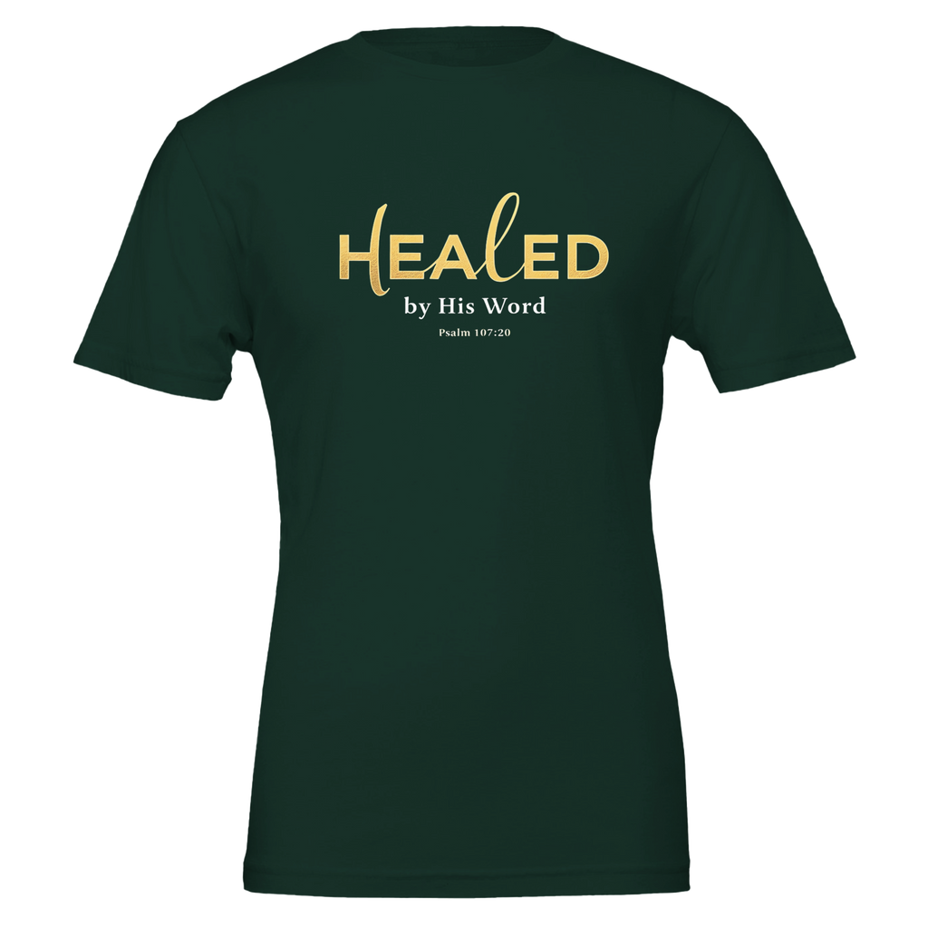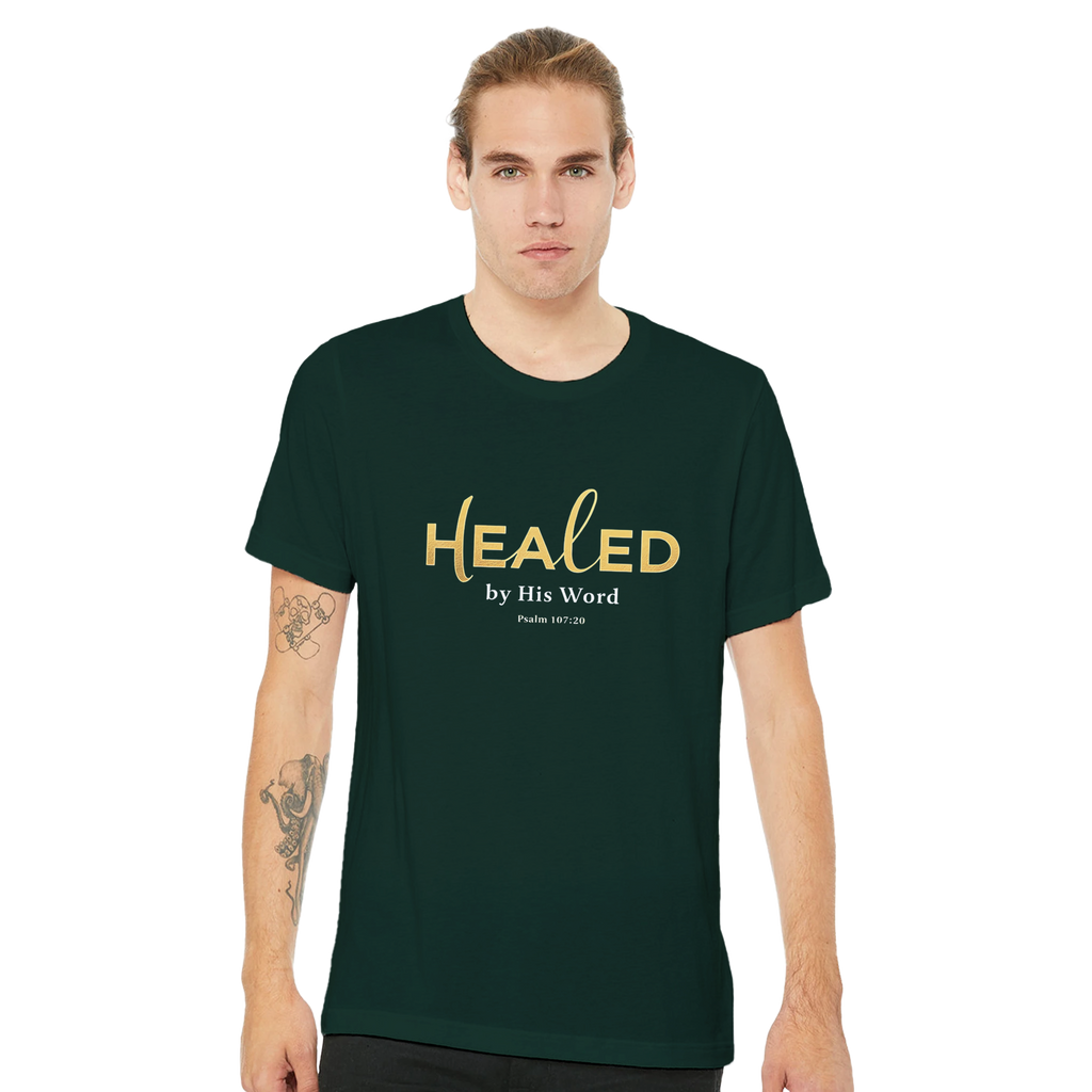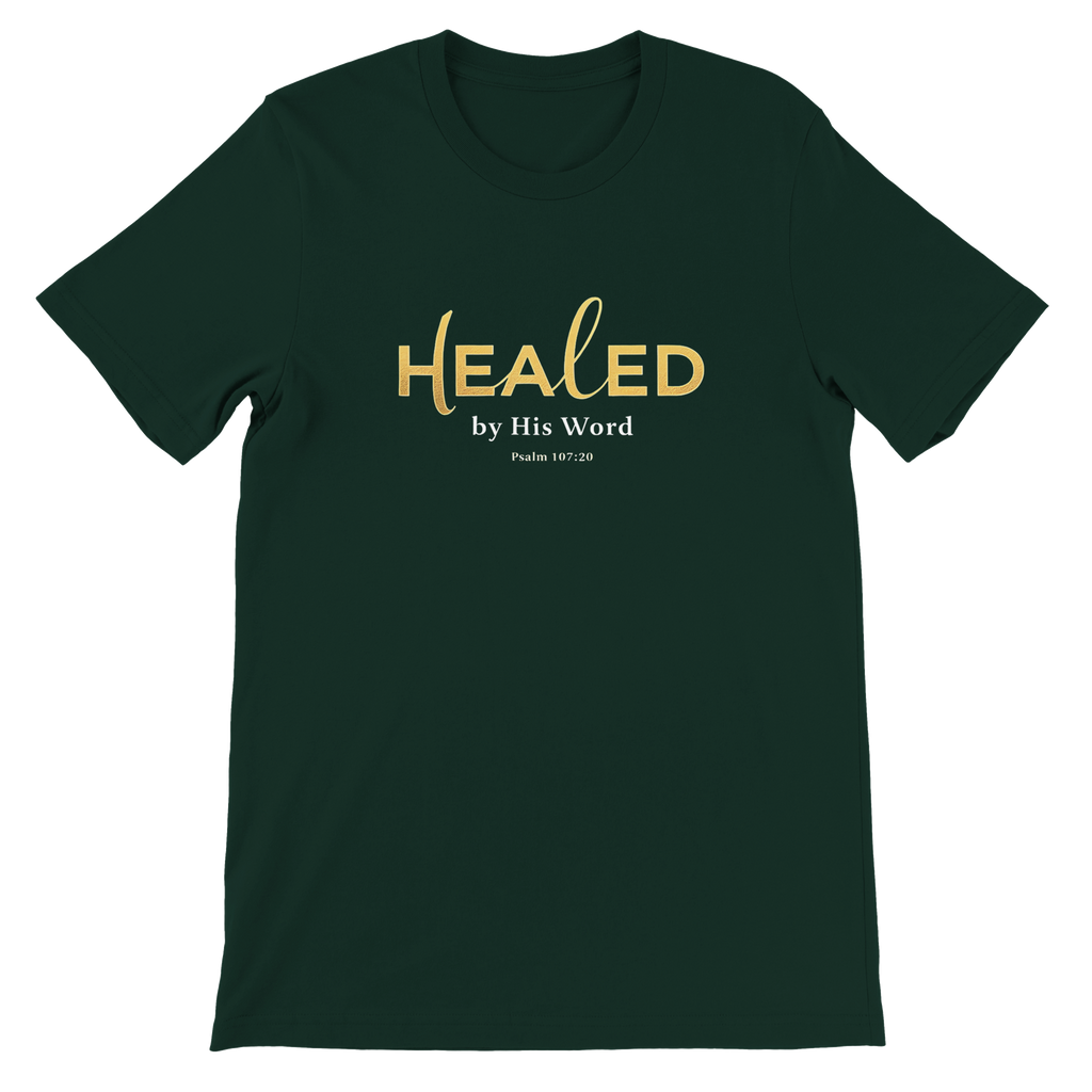Premium Unisex Crewneck T-shirt | Healed By His Word -Psalm 107:20-