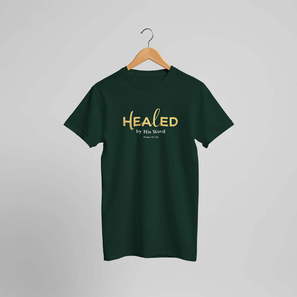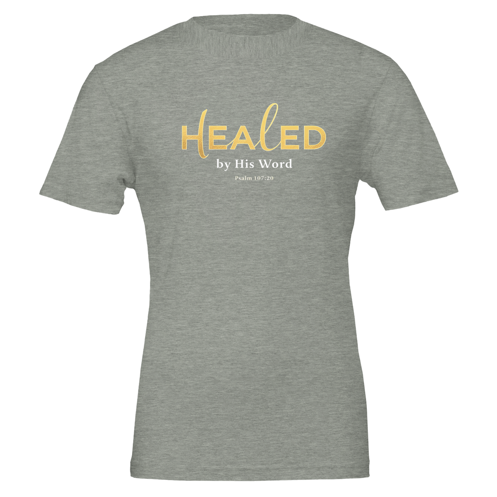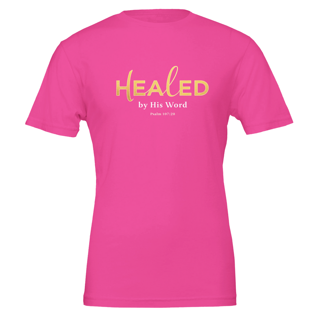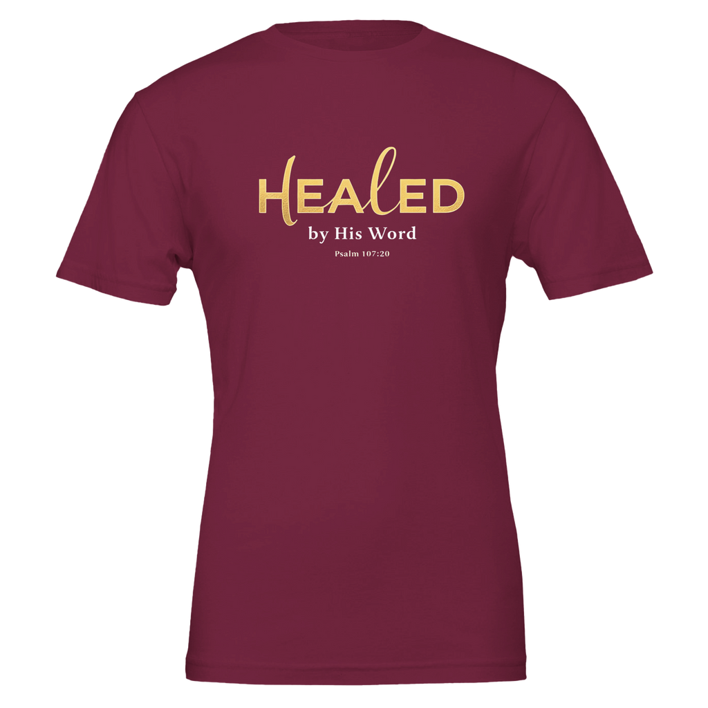 Premium Unisex Crewneck T-shirt | Healed By His Word -Psalm 107:20-