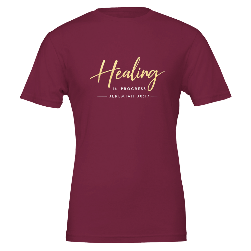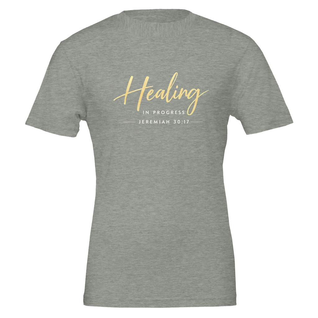 Premium Unisex Crewneck T-shirt | Healing in Progress -Jeremiah 30:17-