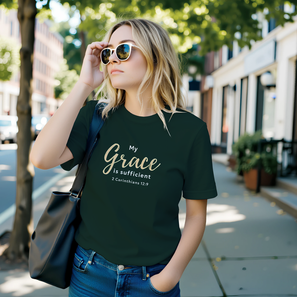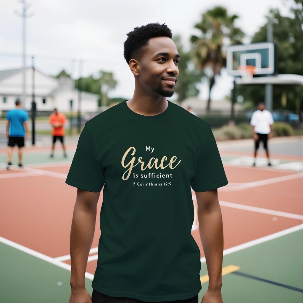 Premium Unisex Crewneck T-shirt | My Grace is Sufficient -2 Corinthians 12:9-