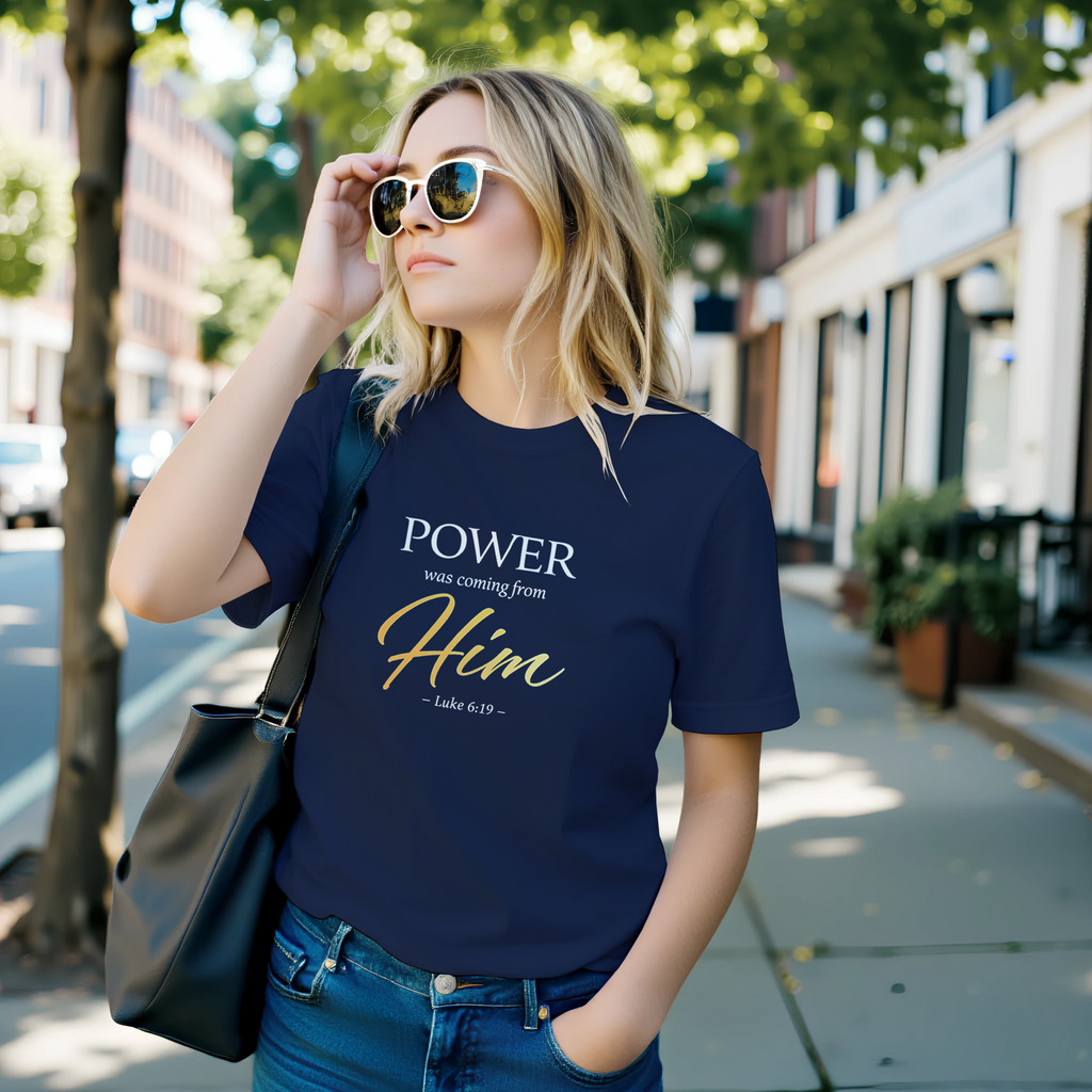 Premium Unisex Crewneck T-shirt | Power Was Coming From Him -Luke 6:19-