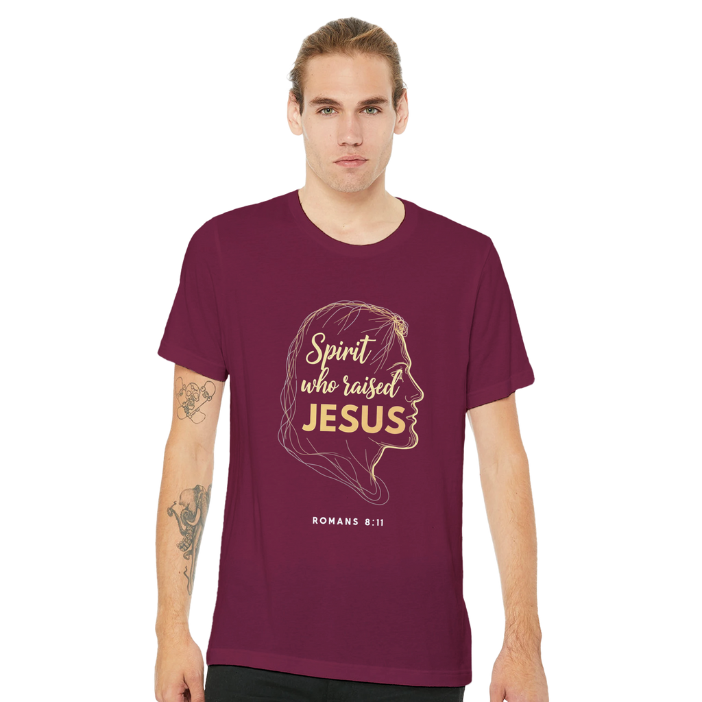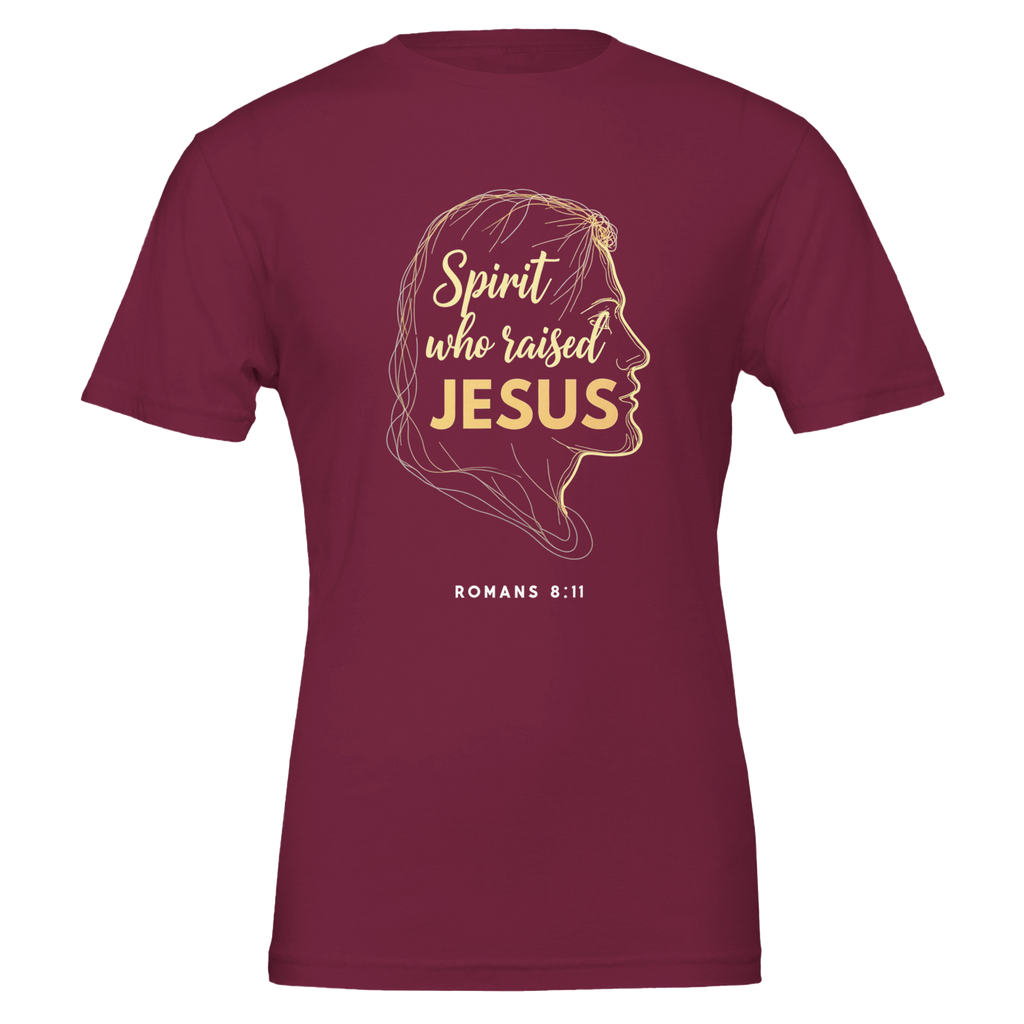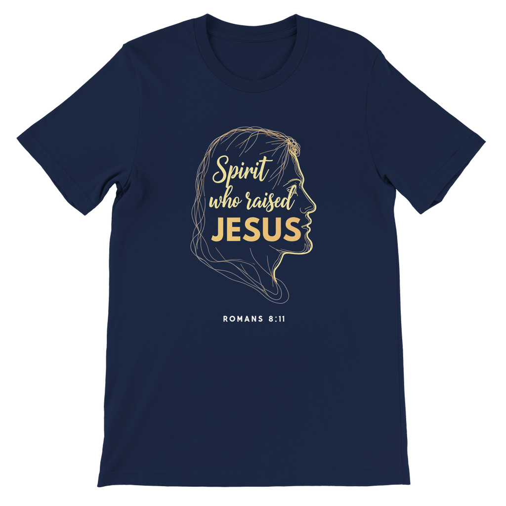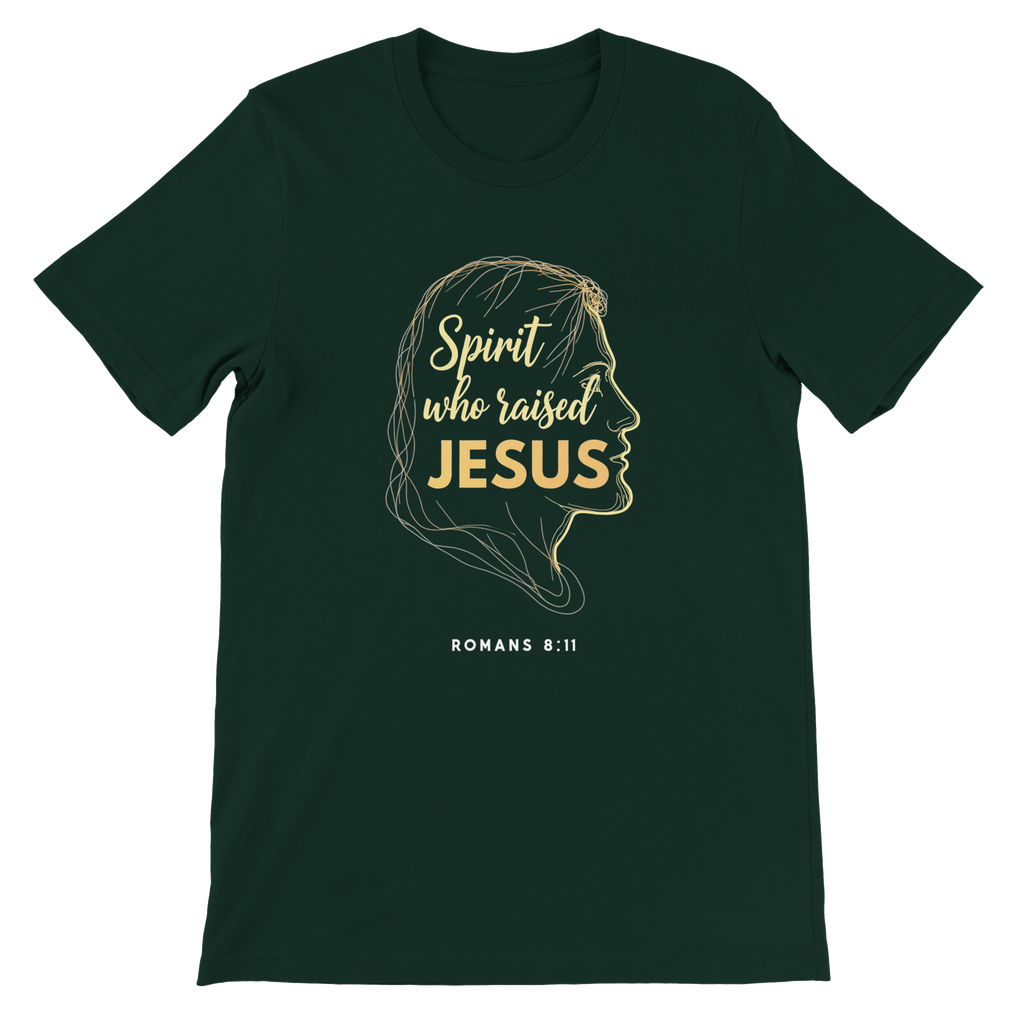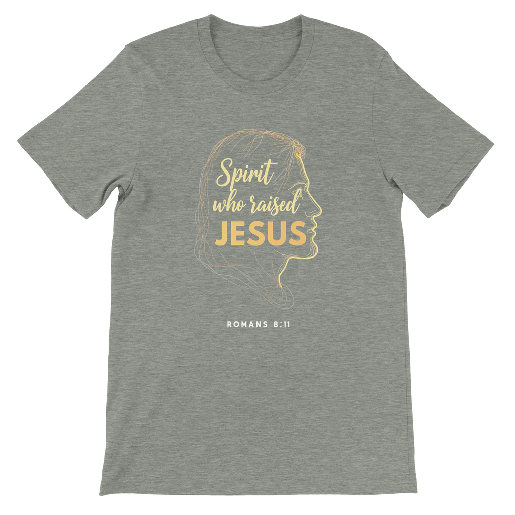 Premium Unisex Crewneck T-shirt | Spirit Who Raised Jesus -Romans 8:11-