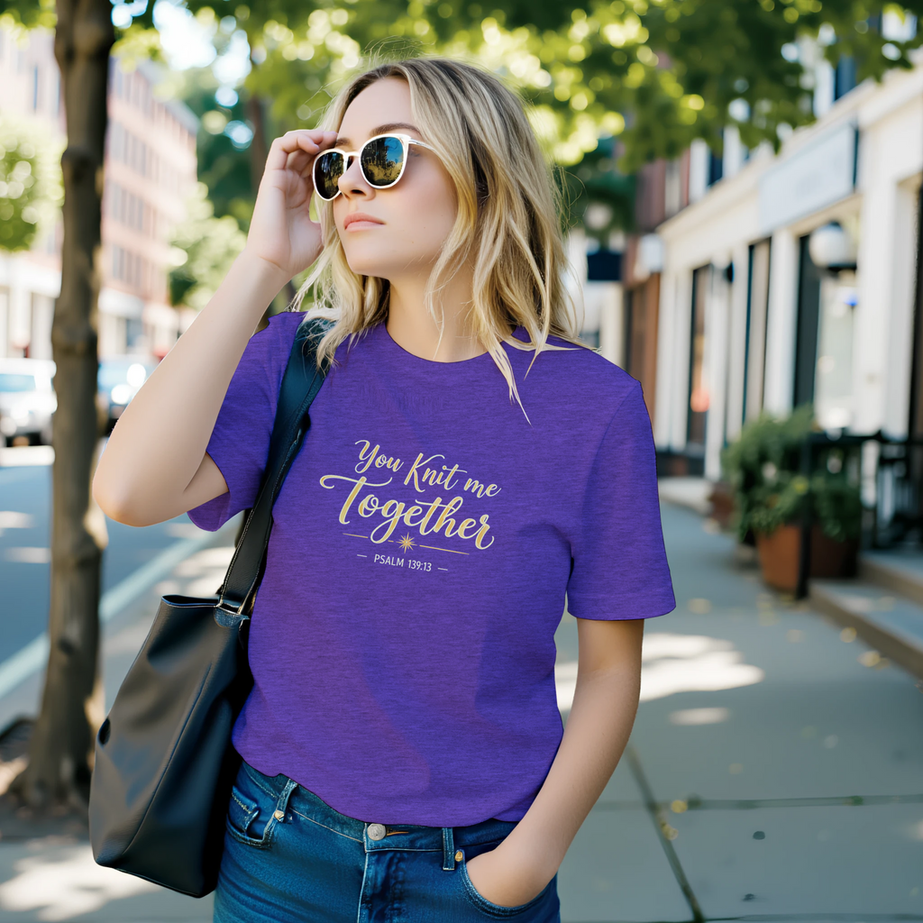 Premium Unisex Crewneck T-shirt | You Knit Me Together -Psalm 139:13-