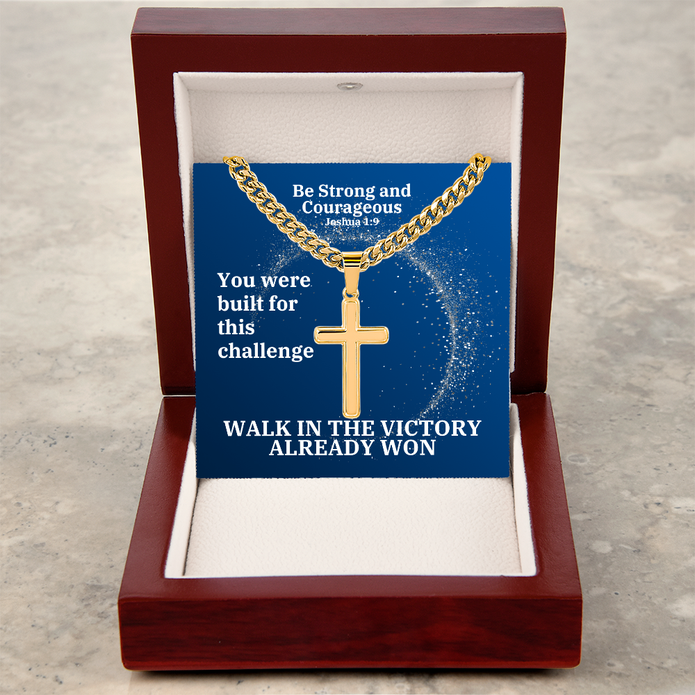 Be Strong And Courageous (Joshua 1:9) | Premium Sterling Silver Cuban Link Cross Necklace