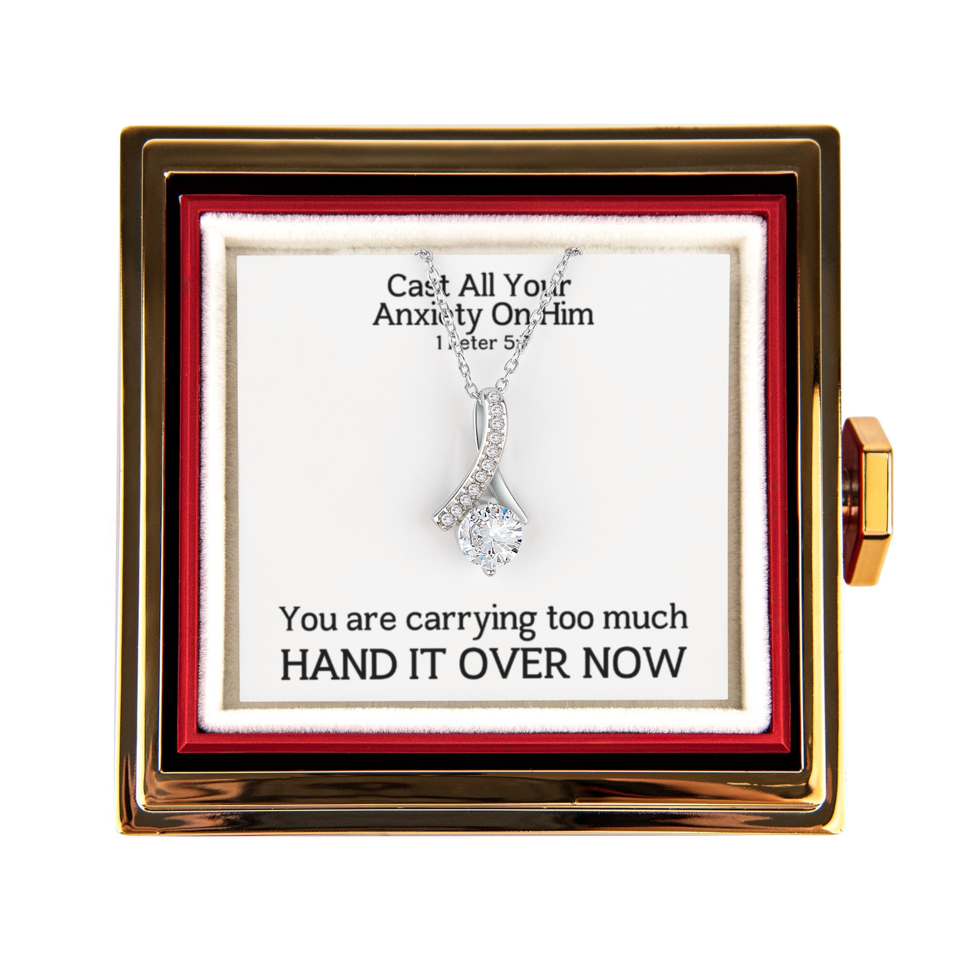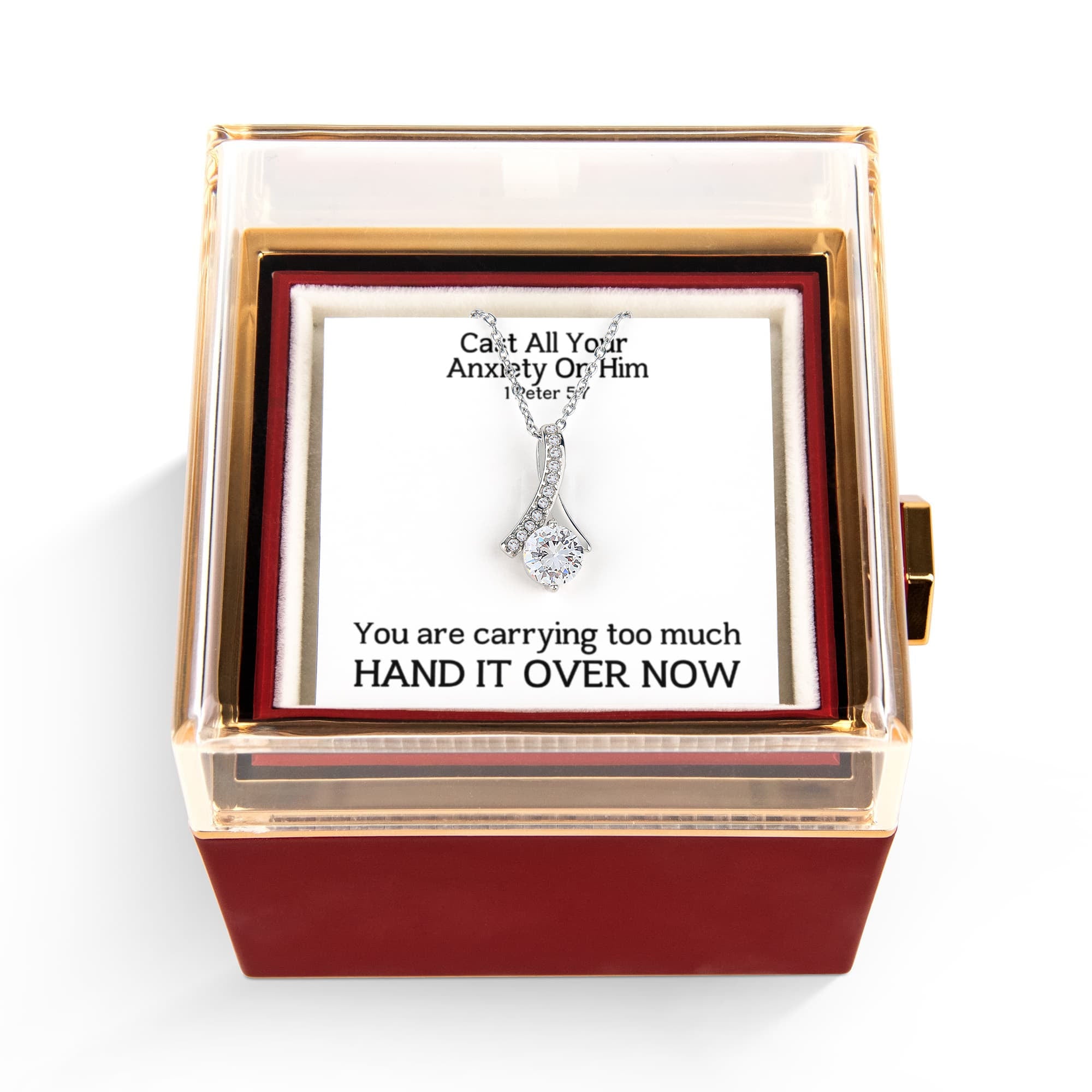 Cast All Your Anxiety On Him (1 Peter 5:7) | Alluring Beauty Necklace in Rotating Rose Gift Box