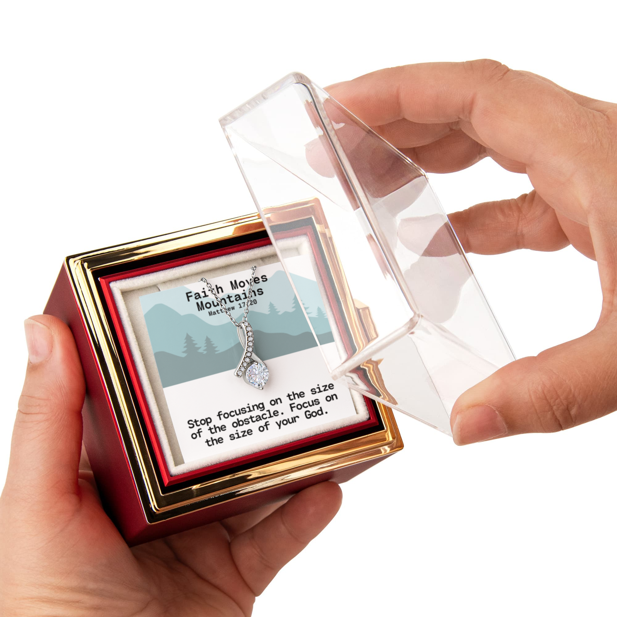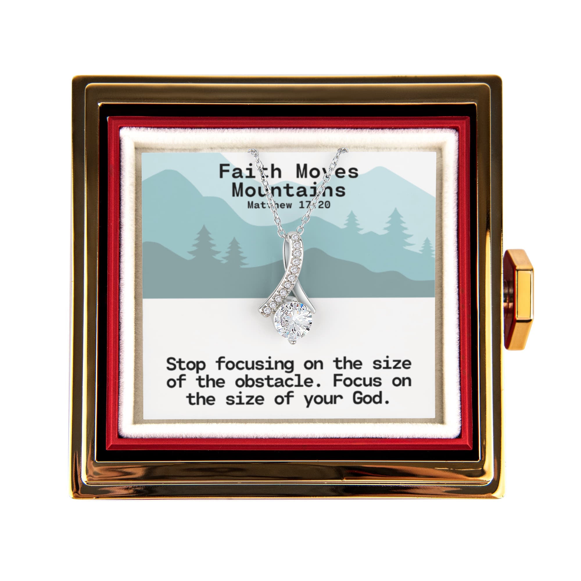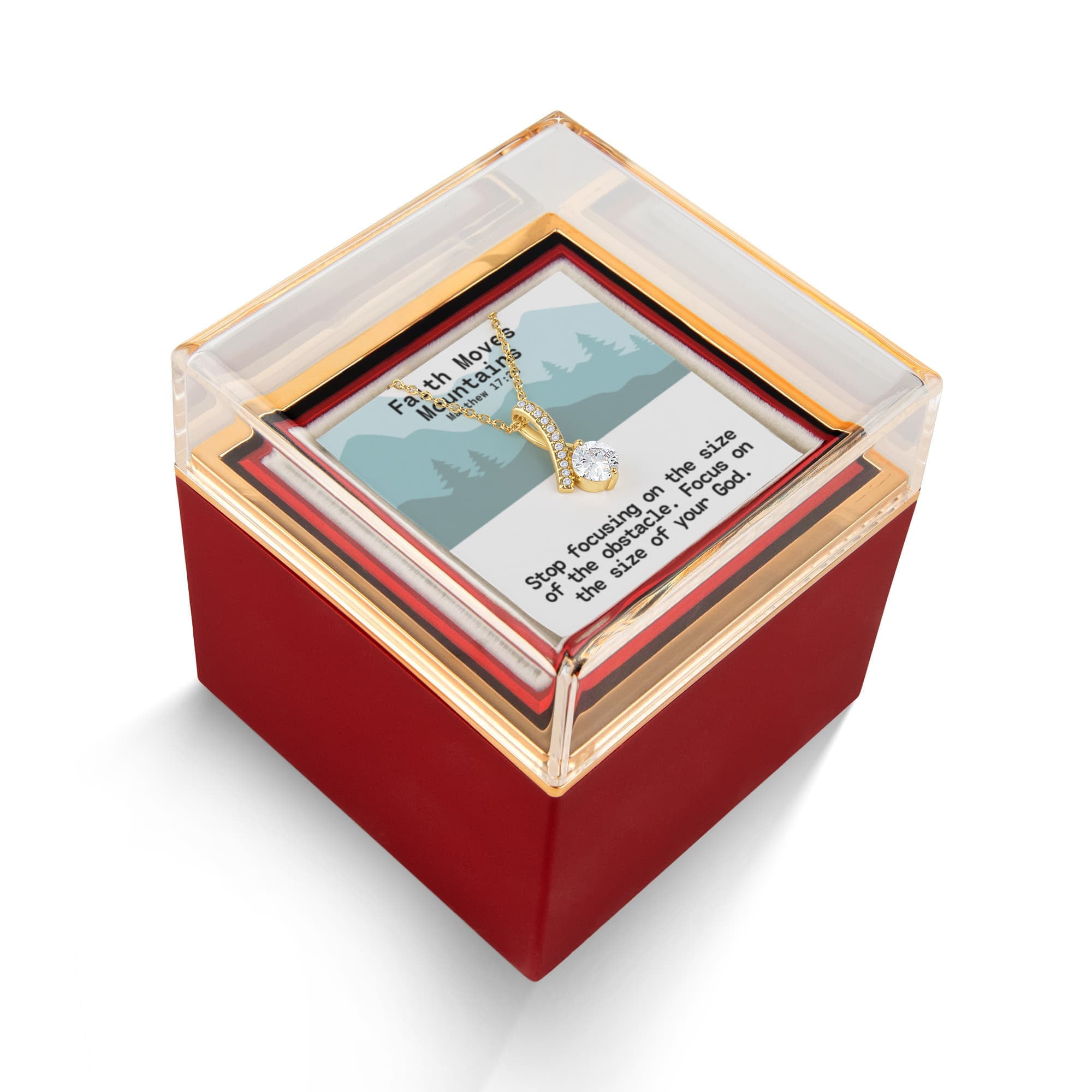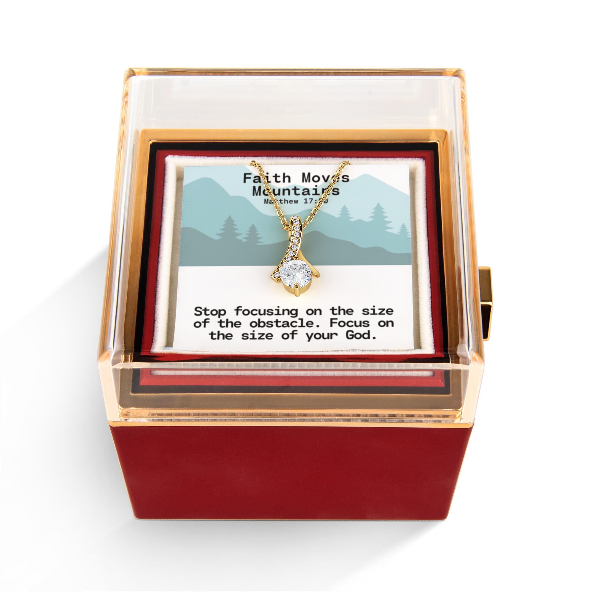 Faith Moves Mountains (Matthew 17:20) | Alluring Beauty Necklace in Rotating Rose Gift Box
