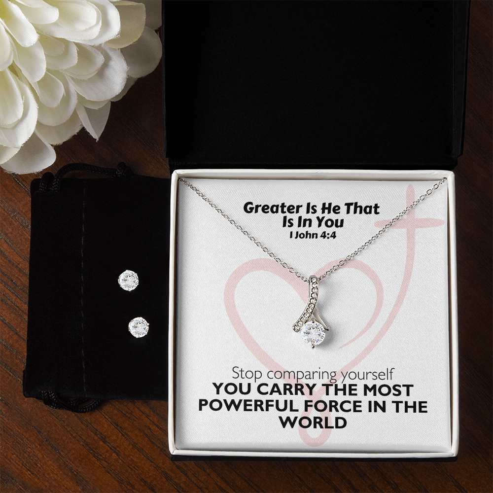 Greater Is He That Is In You (1 John 4:4) | Alluring Beauty Necklace & Earring Set
