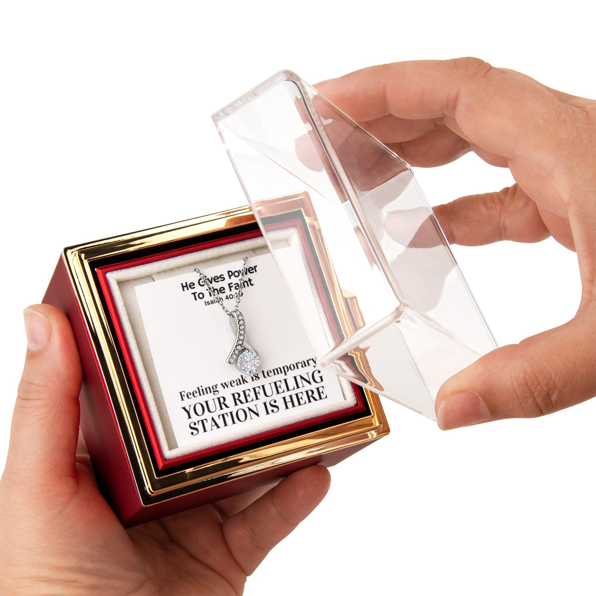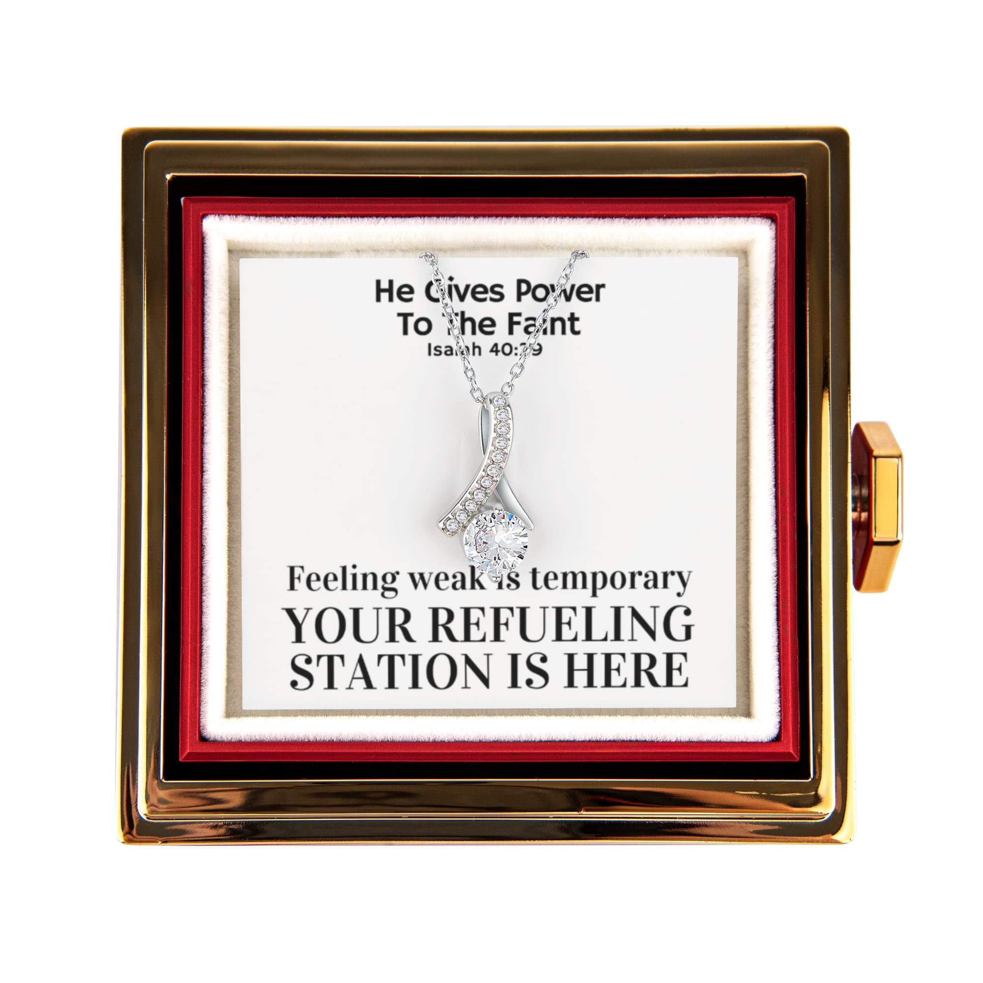 He Gives Power To The Faint (Isaiah 40:29) | Alluring Beauty Necklace in Rotating Rose Gift Box
