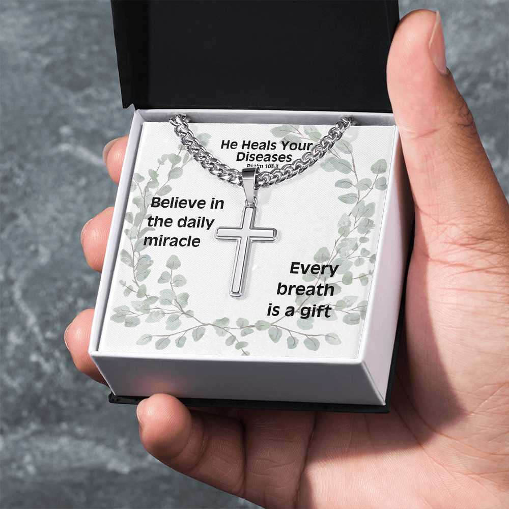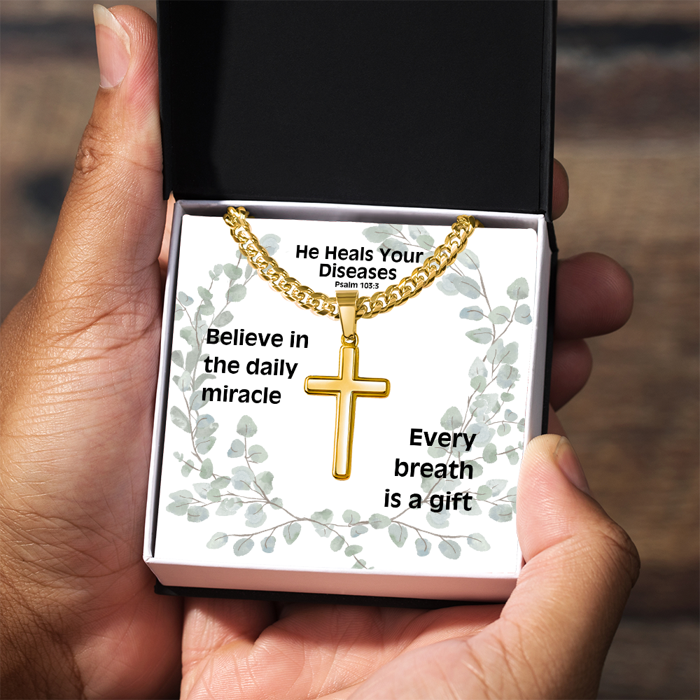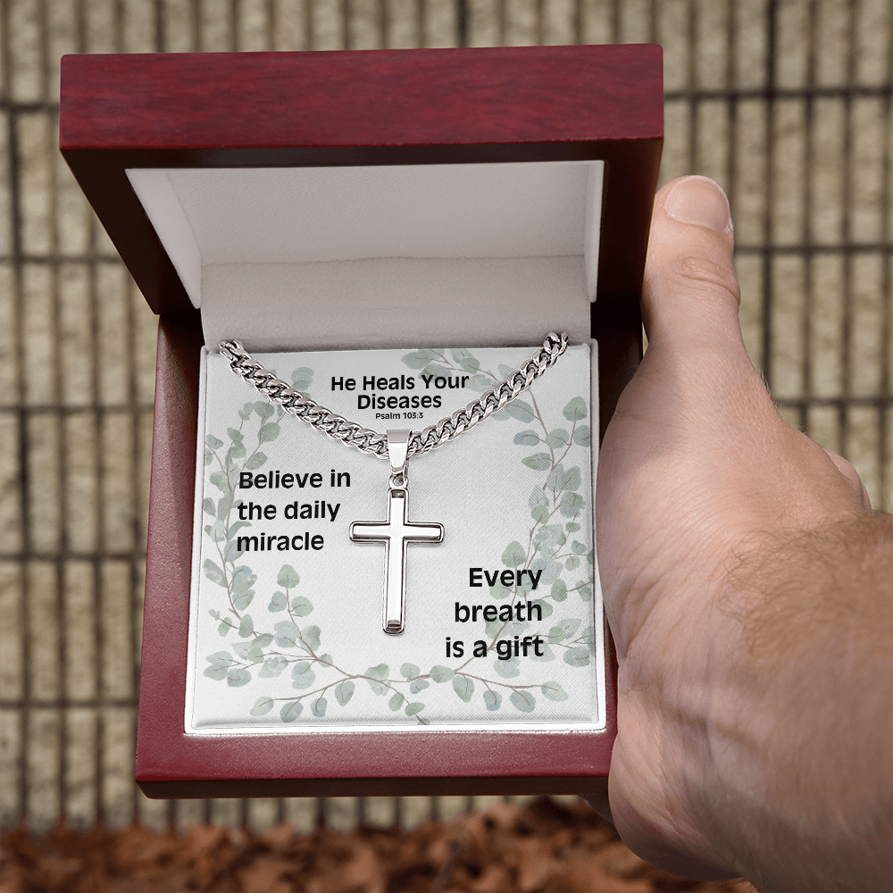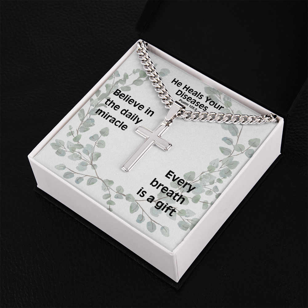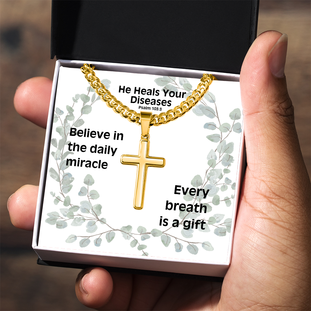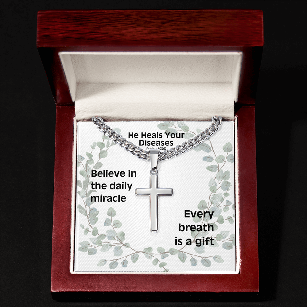 He Heals Your Diseases (Psalm 103:3) | Premium Sterling Silver Cuban Link Cross Necklace