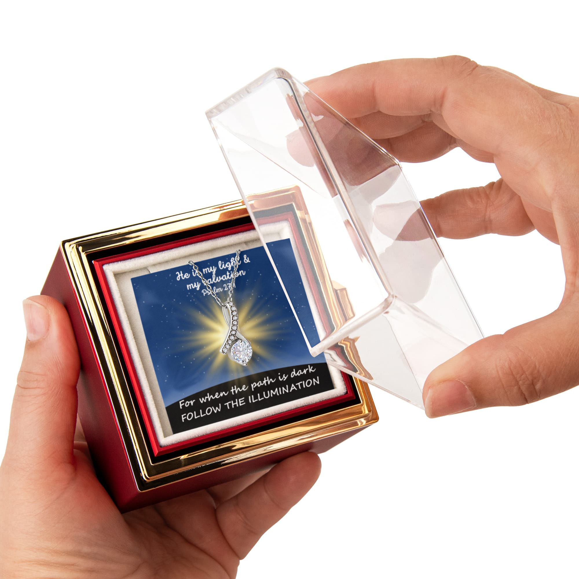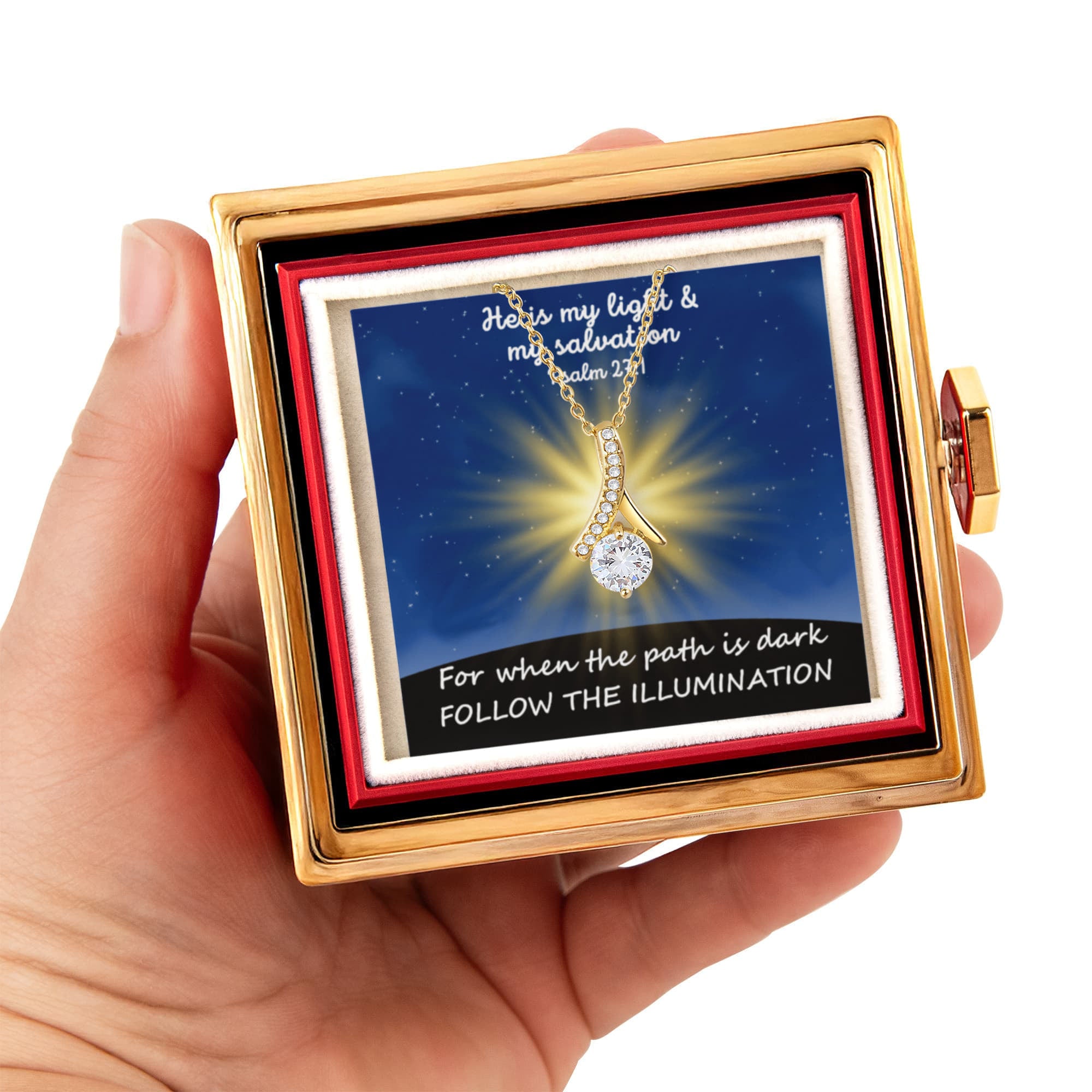 He Is My Light & My Salvation (Psalm 27:1) | Alluring Beauty Necklace in Rotating Rose Gift Box