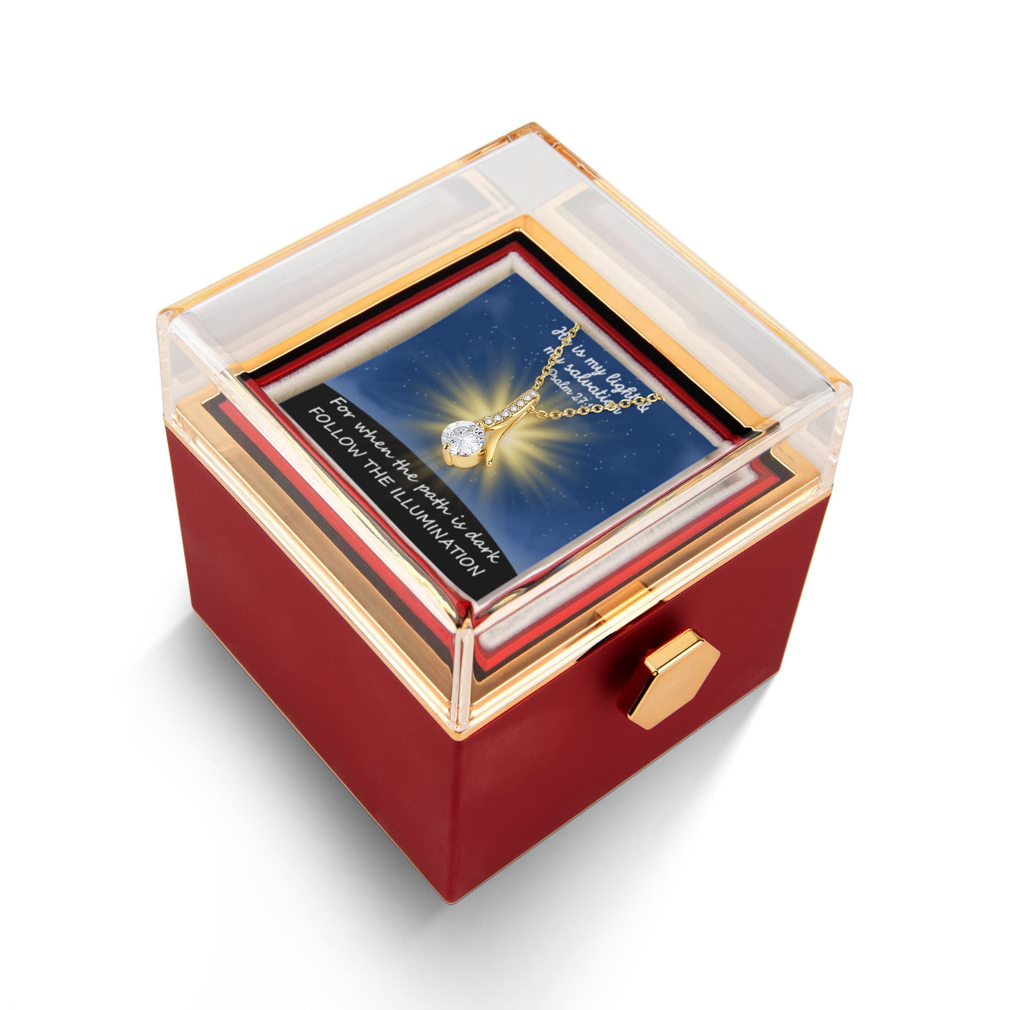 Imagine her reaction as she receives this beautiful Alluring Beauty Necklace. The luxurious box, featuring a charming preserved rose that never fades, adds an extra touch of love. With a simple turn of the gold knob, her breathtaking gift is revealed—making it the perfect sentimental gift for that special someone.
