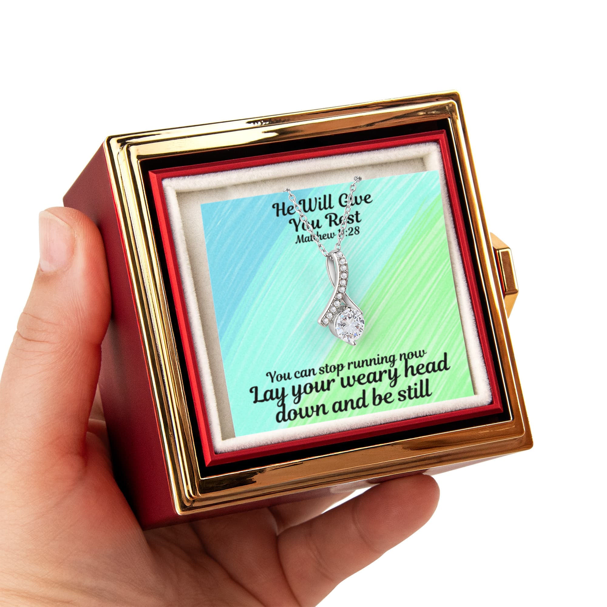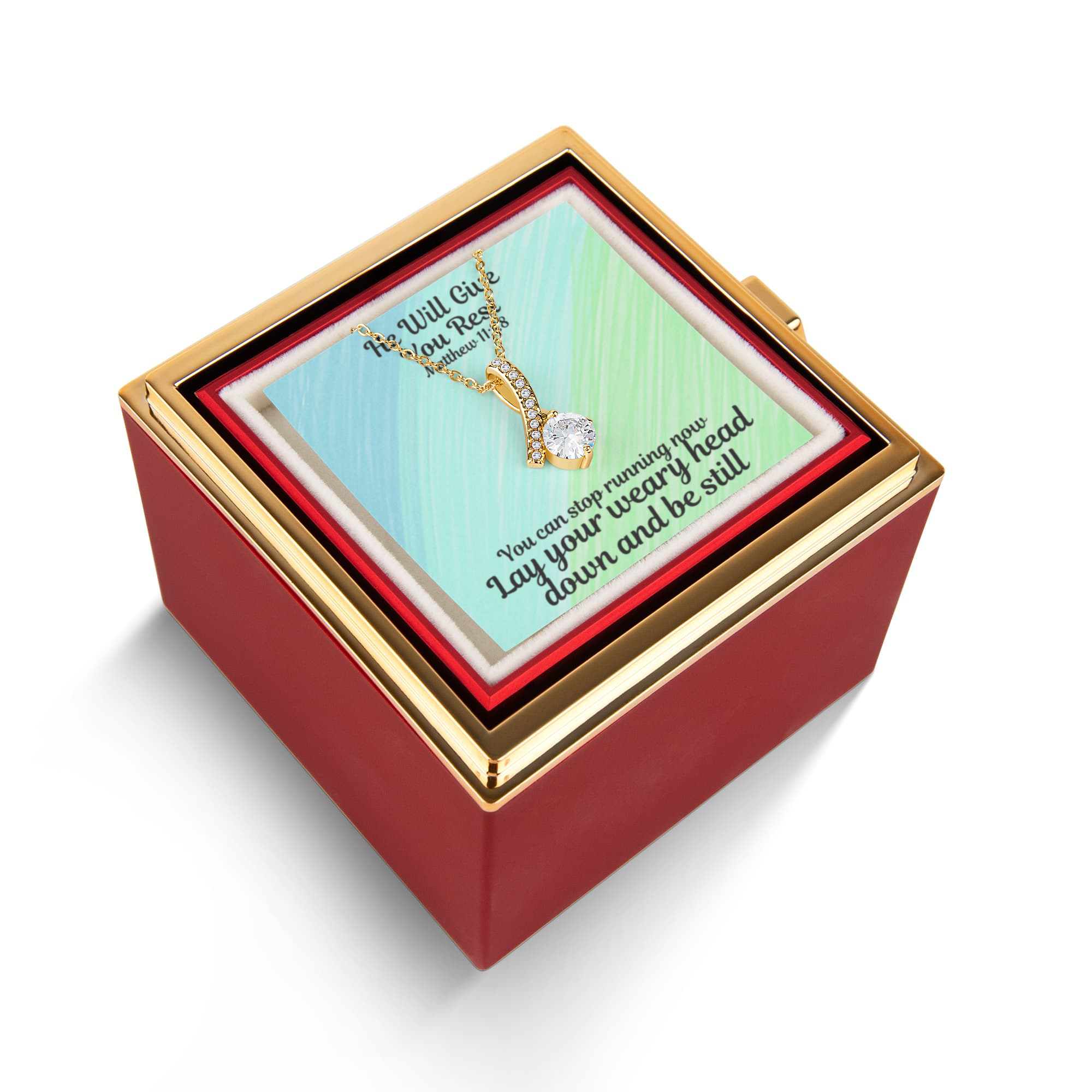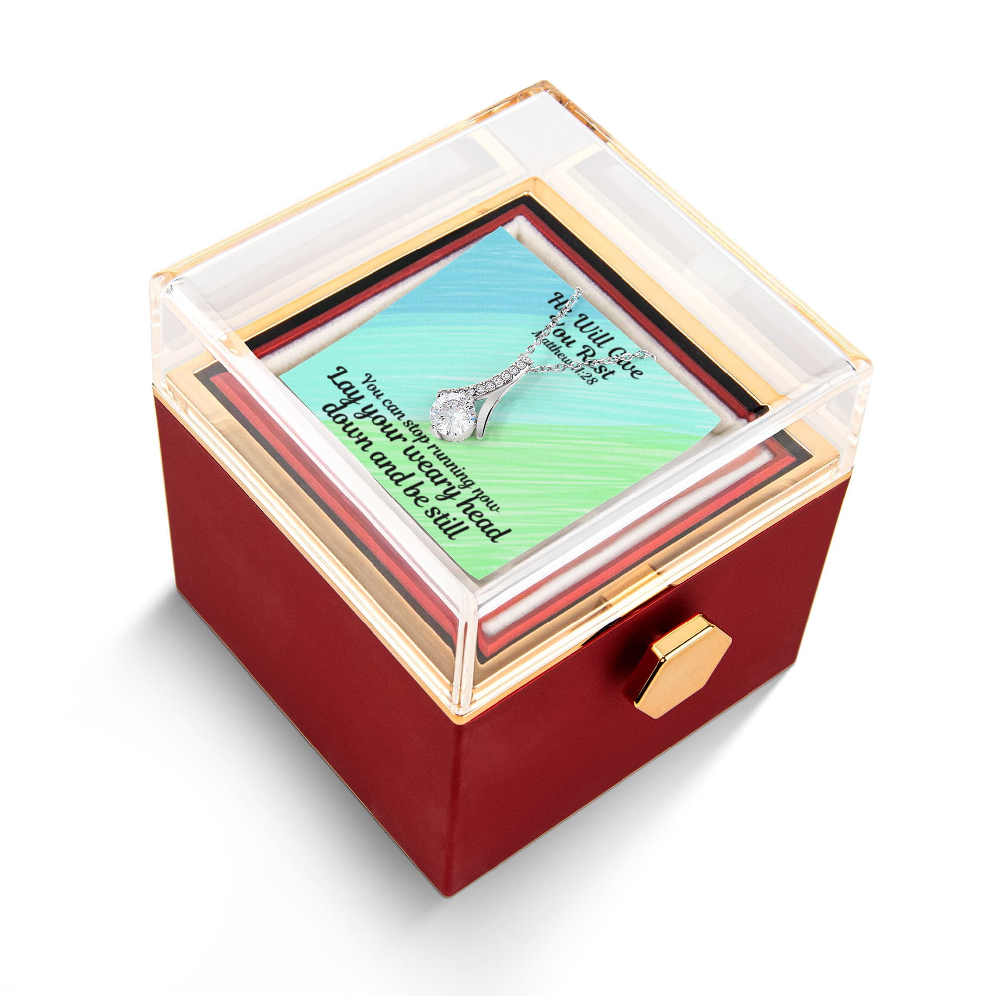 He Will Give You Rest (Matthew 11:28) | Alluring Beauty Necklace in Rotating Rose Gift Box