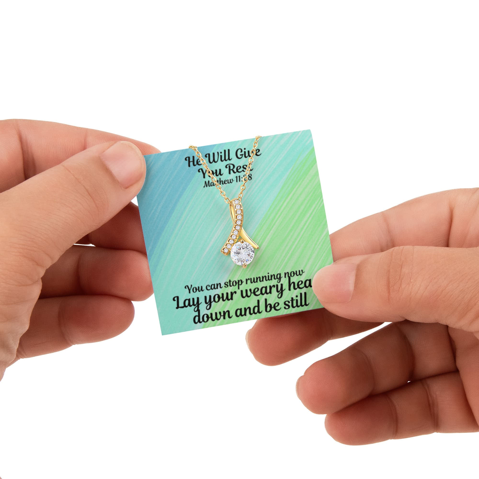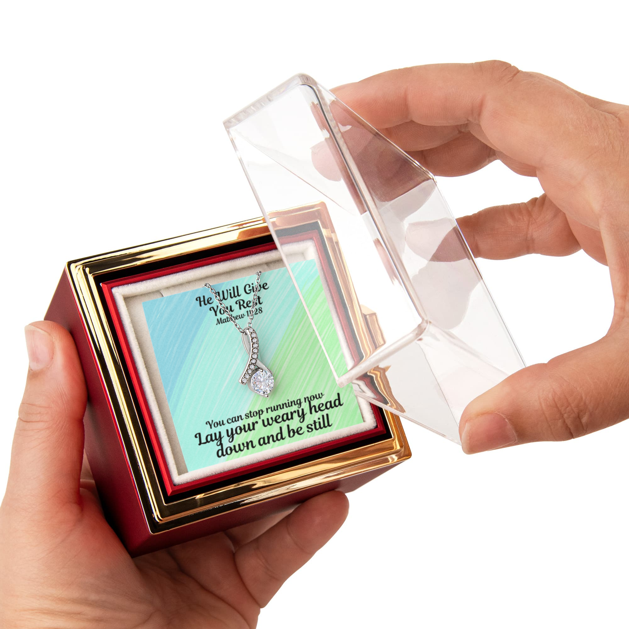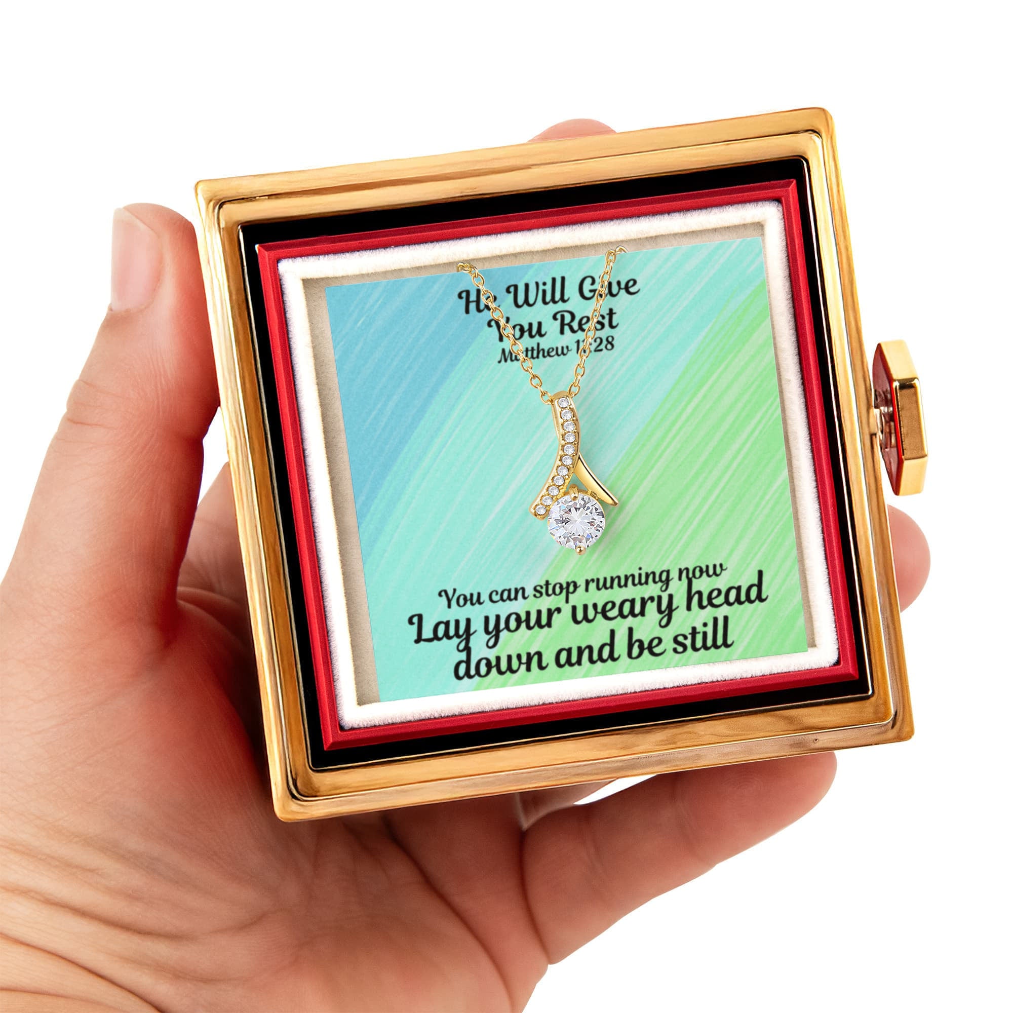 He Will Give You Rest (Matthew 11:28) | Alluring Beauty Necklace in Rotating Rose Gift Box