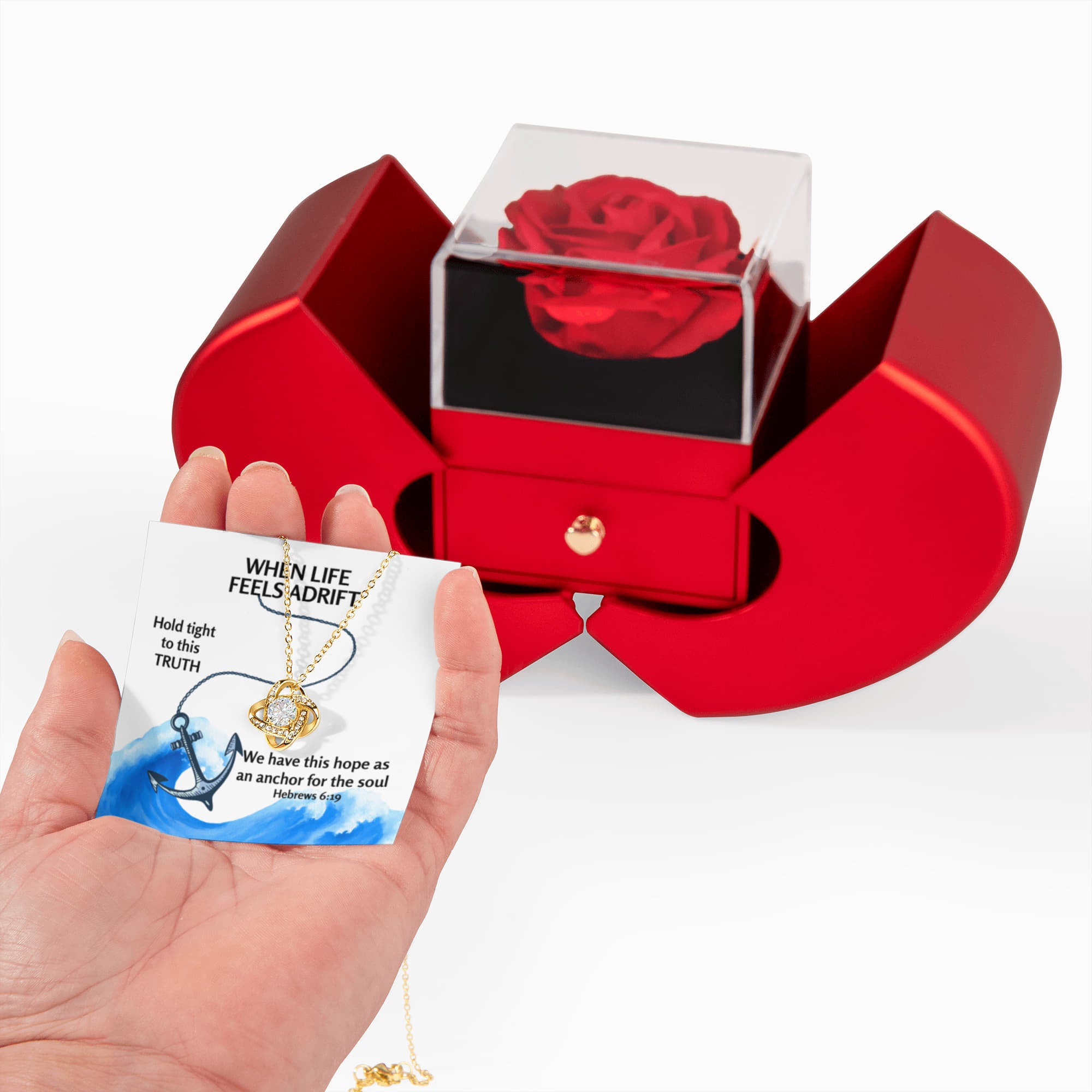 Hope Anchors The Soul (Hebrews 6:19) | Love Knot Necklace in Red Heart Rose Box