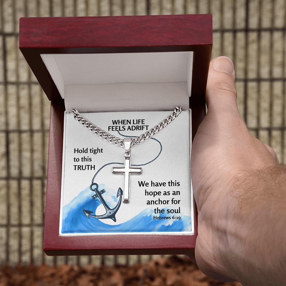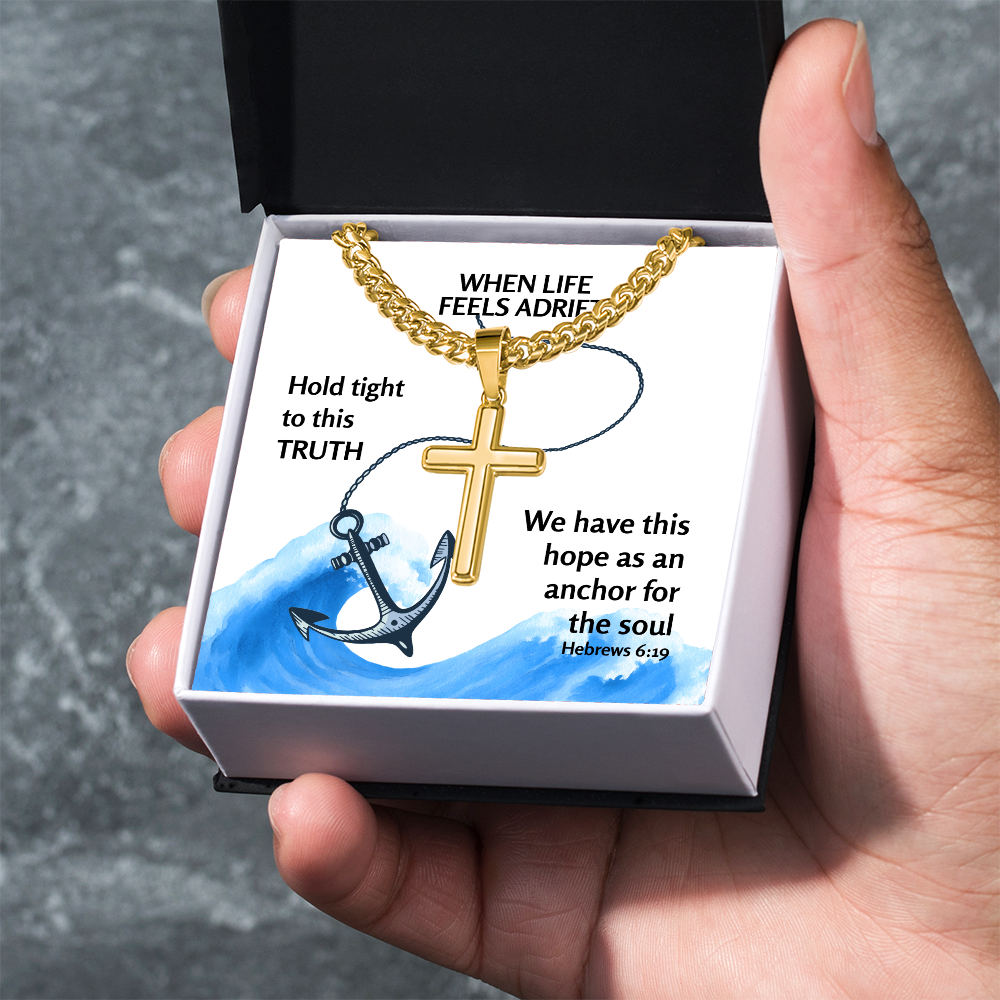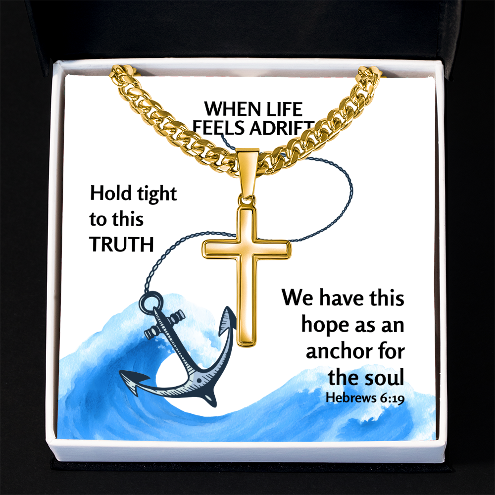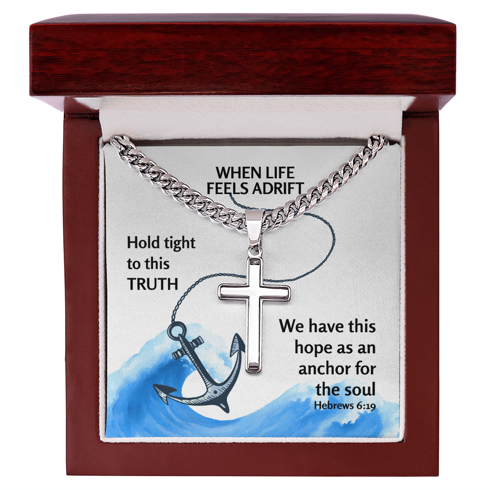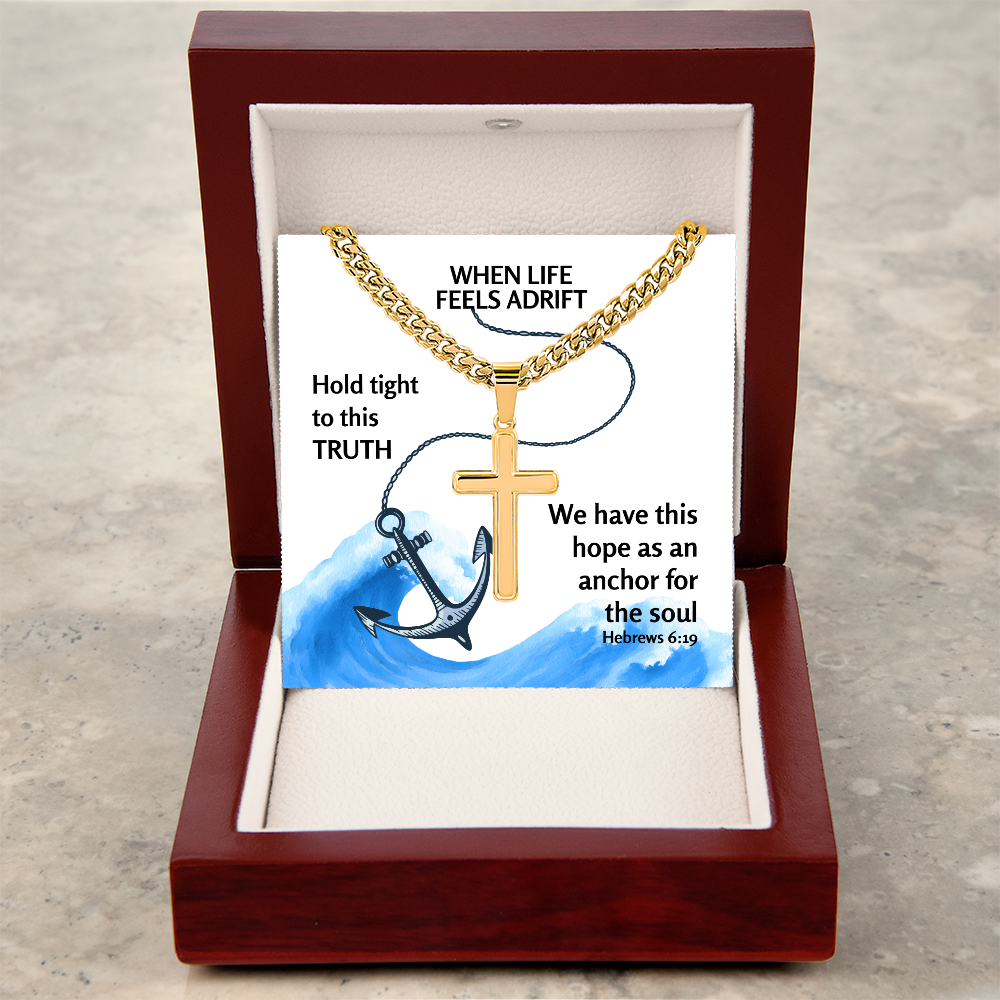 Hope Anchors The Soul (Hebrews 6:19) | Premium Sterling Silver Cuban Link Cross Necklace