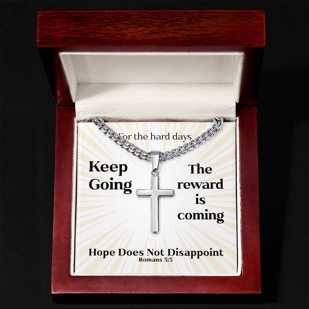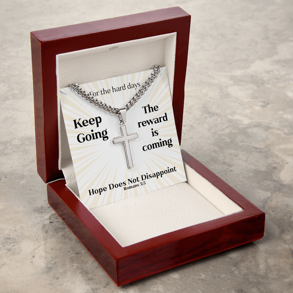 Hope Does Not Disappoint (Romans 5:5) | Premium Sterling Silver Cuban Link Cross Necklace