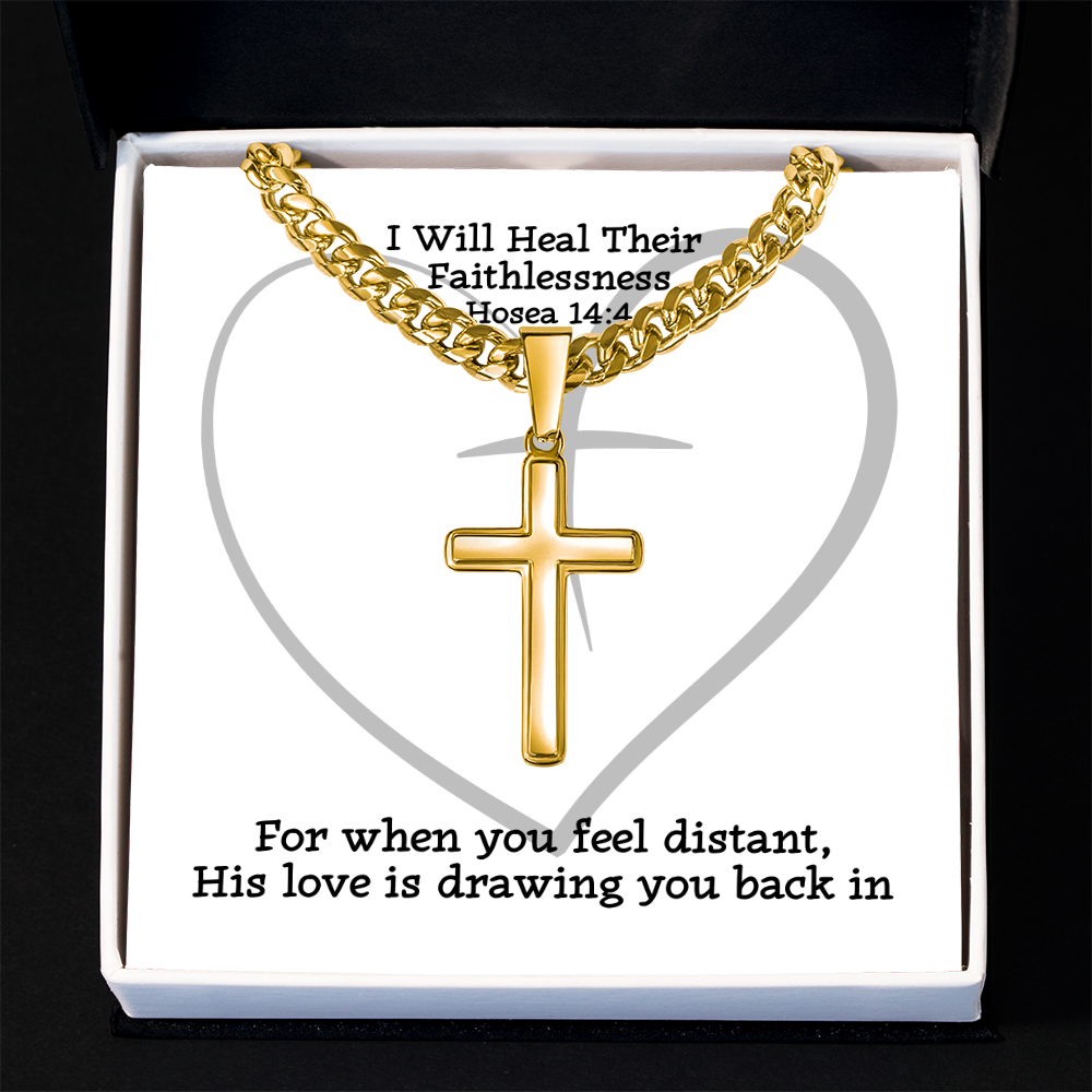 I Will Heal Their Faithlessness (Hosea 14:4) | Premium Sterling Silver Cuban Link Cross Necklace