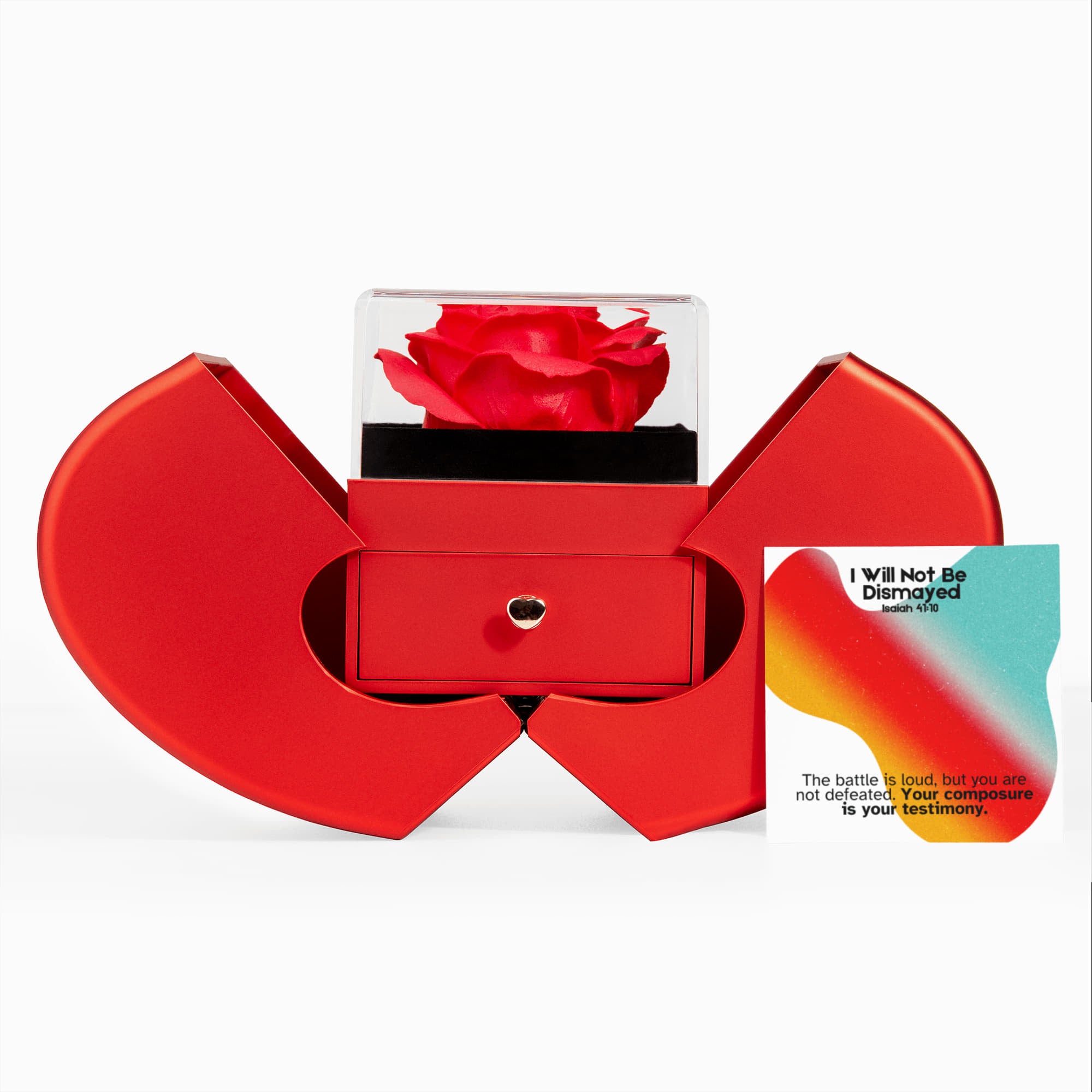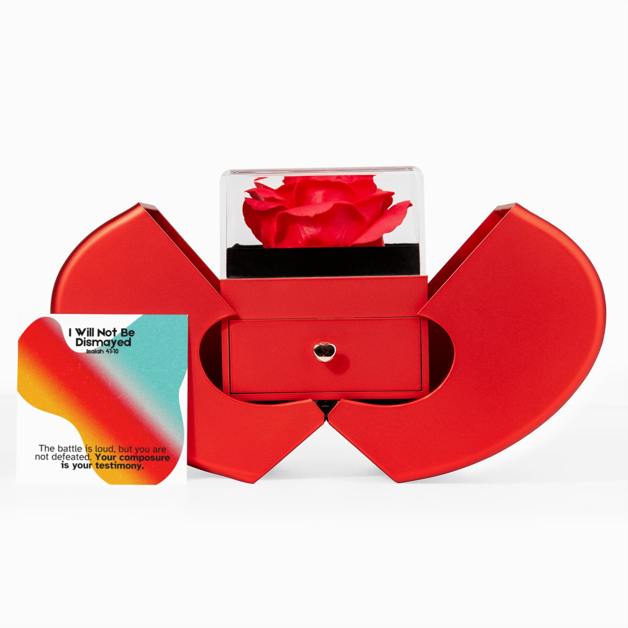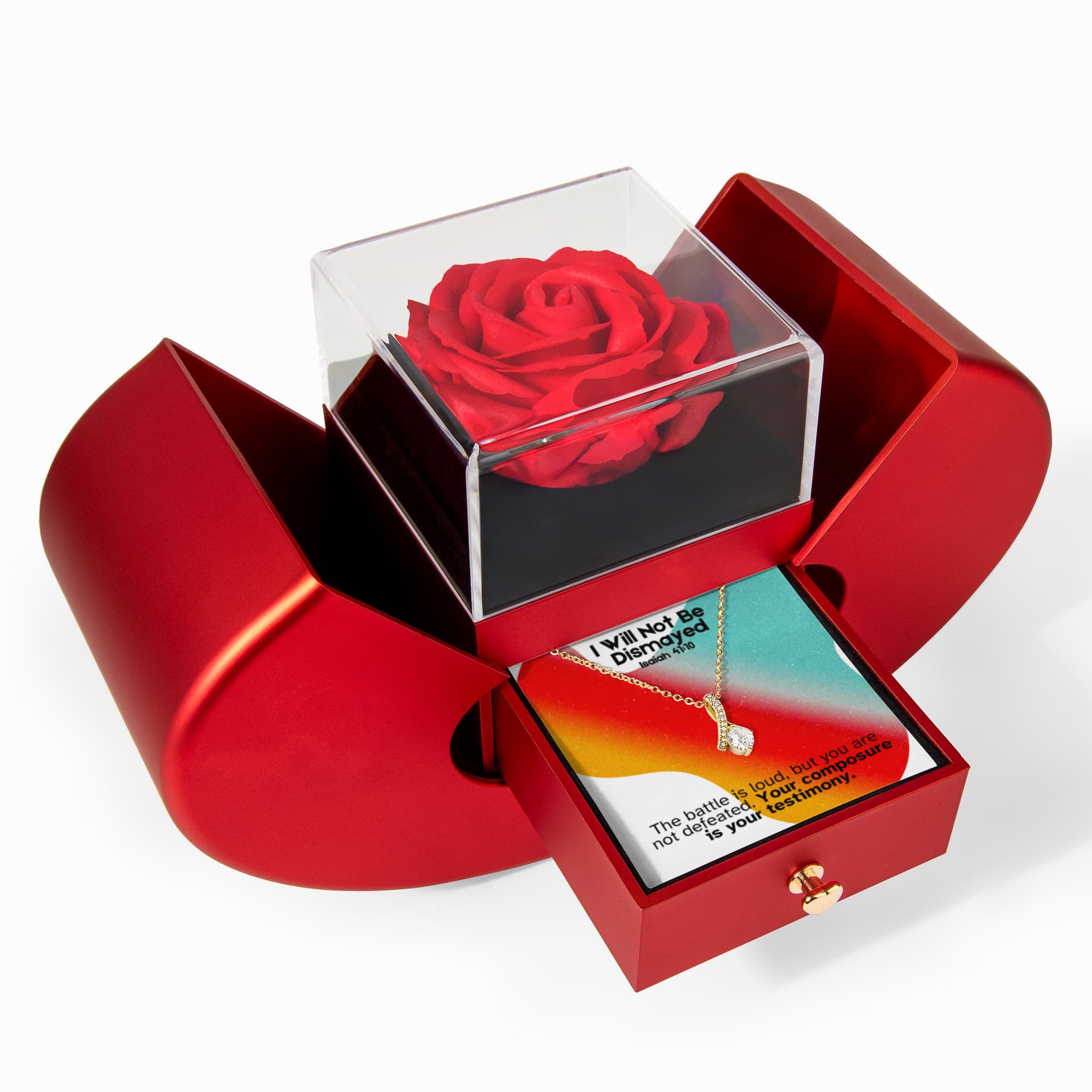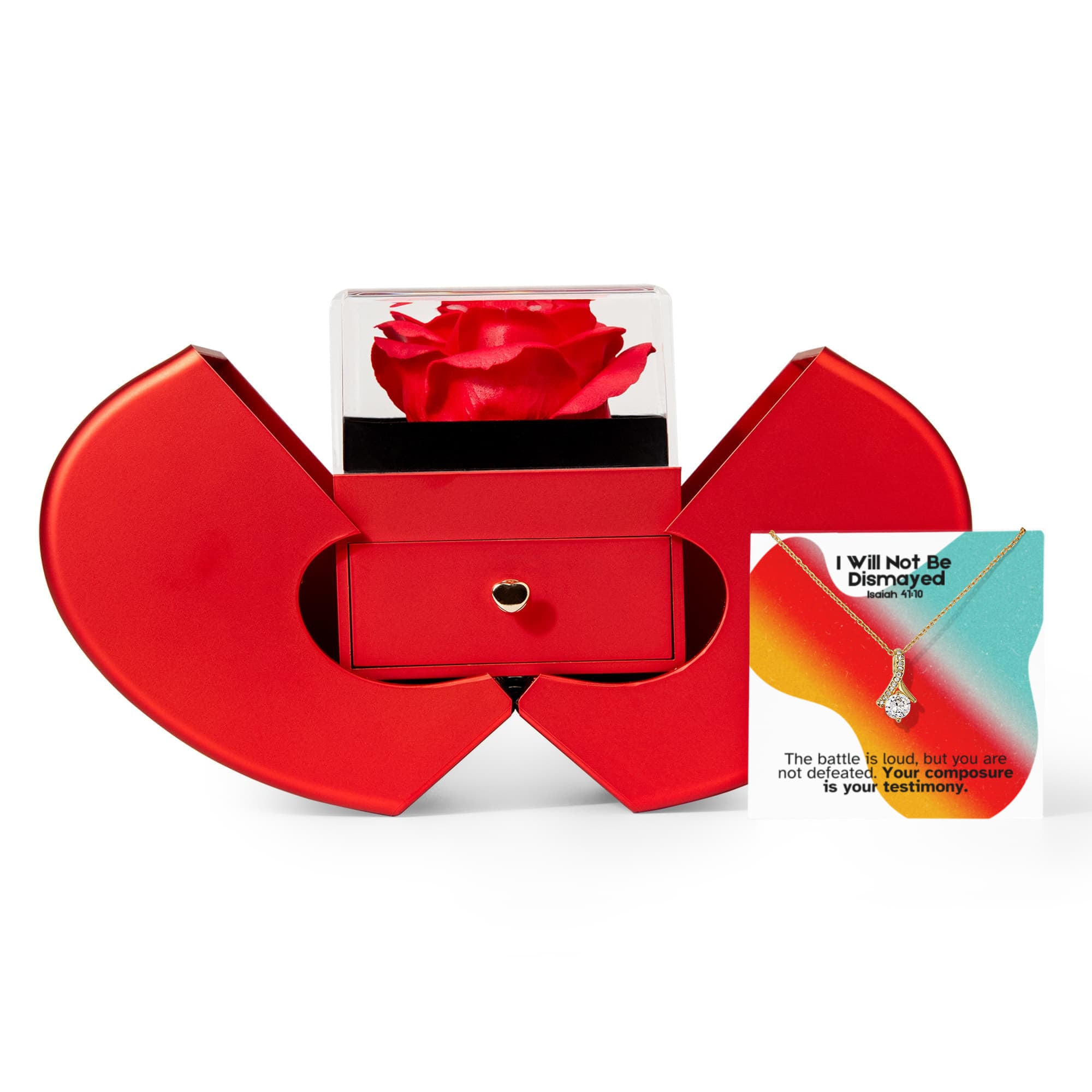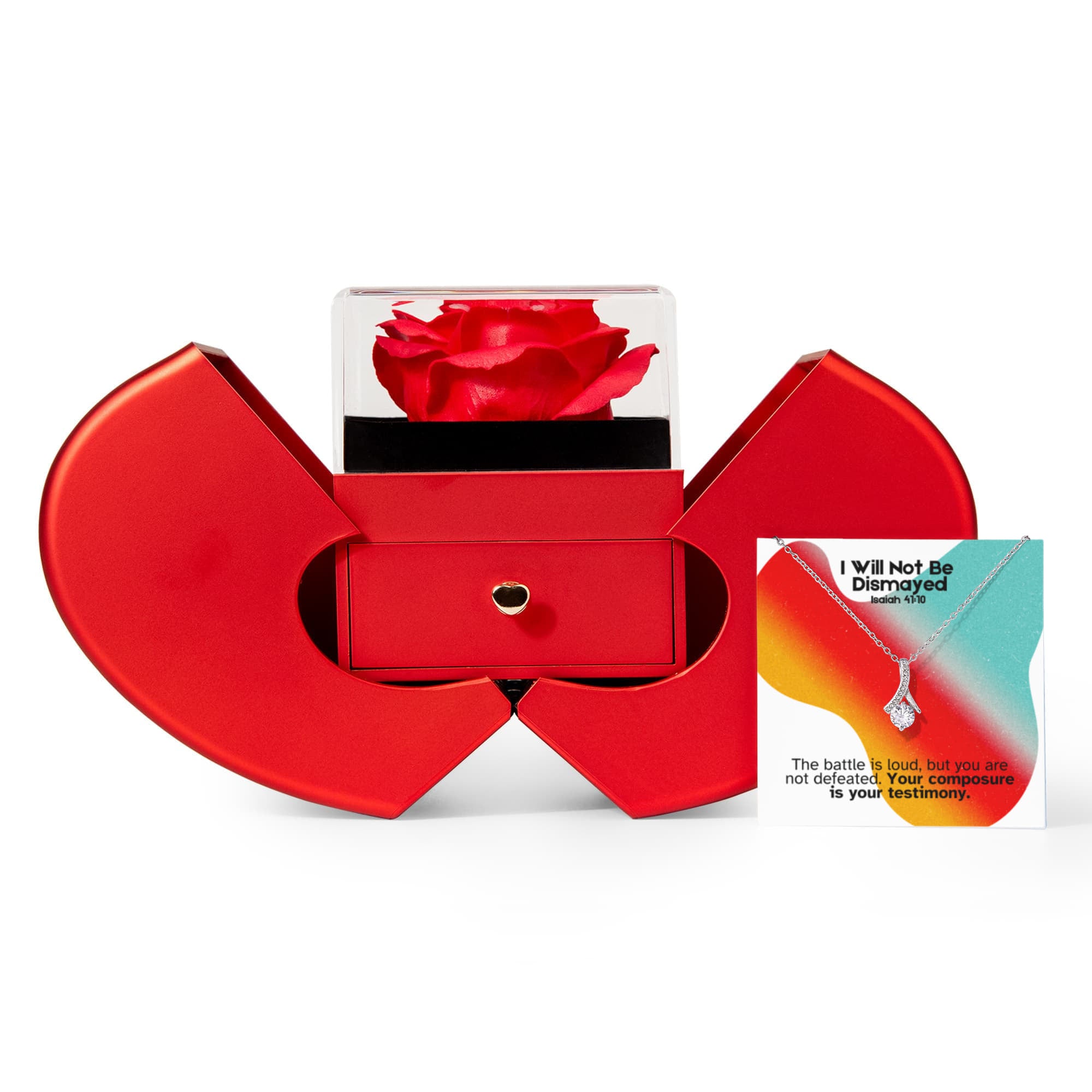 I Will Not Be Dismayed (Isaiah 41:10) | Love Knot Necklace in Red Heart Rose Box