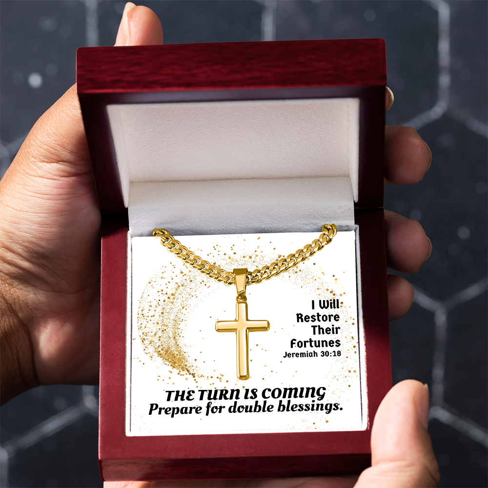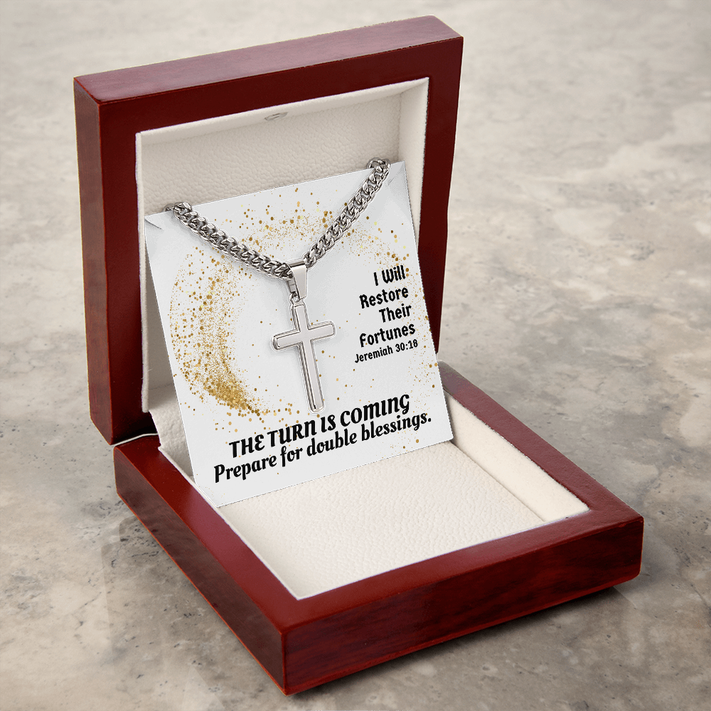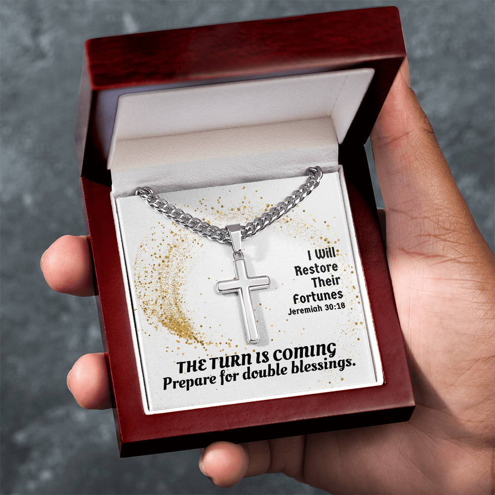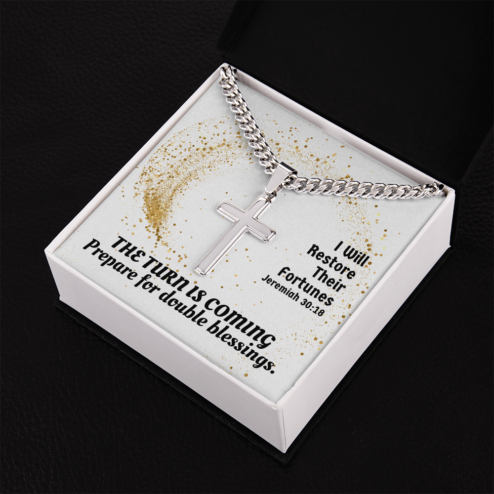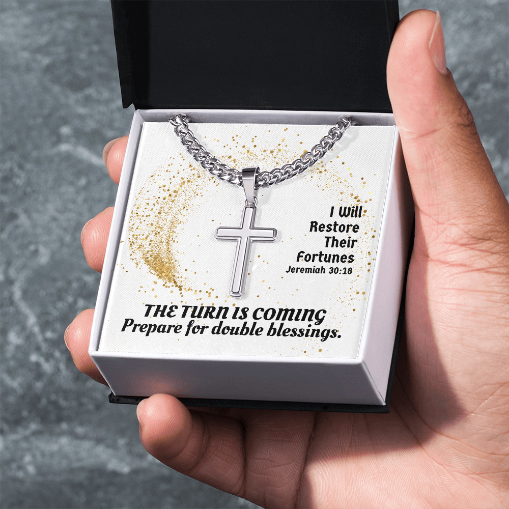 I Will Restore Their Fortunes (Jeremiah 30:18) | Premium Sterling Silver Cuban Link Cross Necklace
