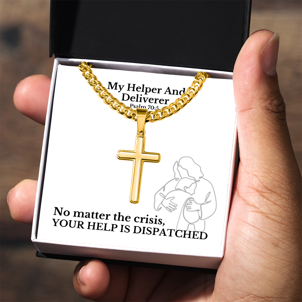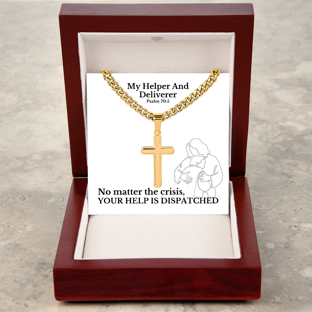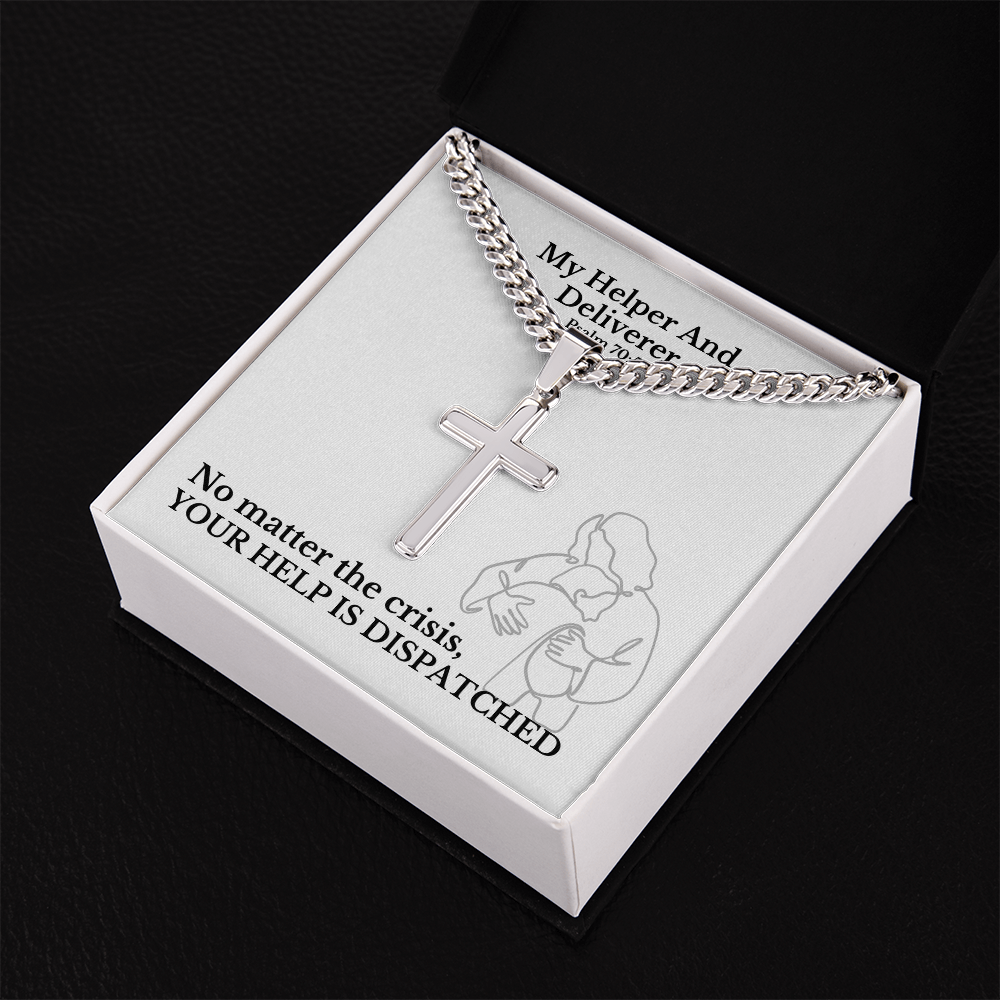 My Helper And Deliverer (Psalm 70:5) | Premium Sterling Silver Cuban Link Cross Necklace
