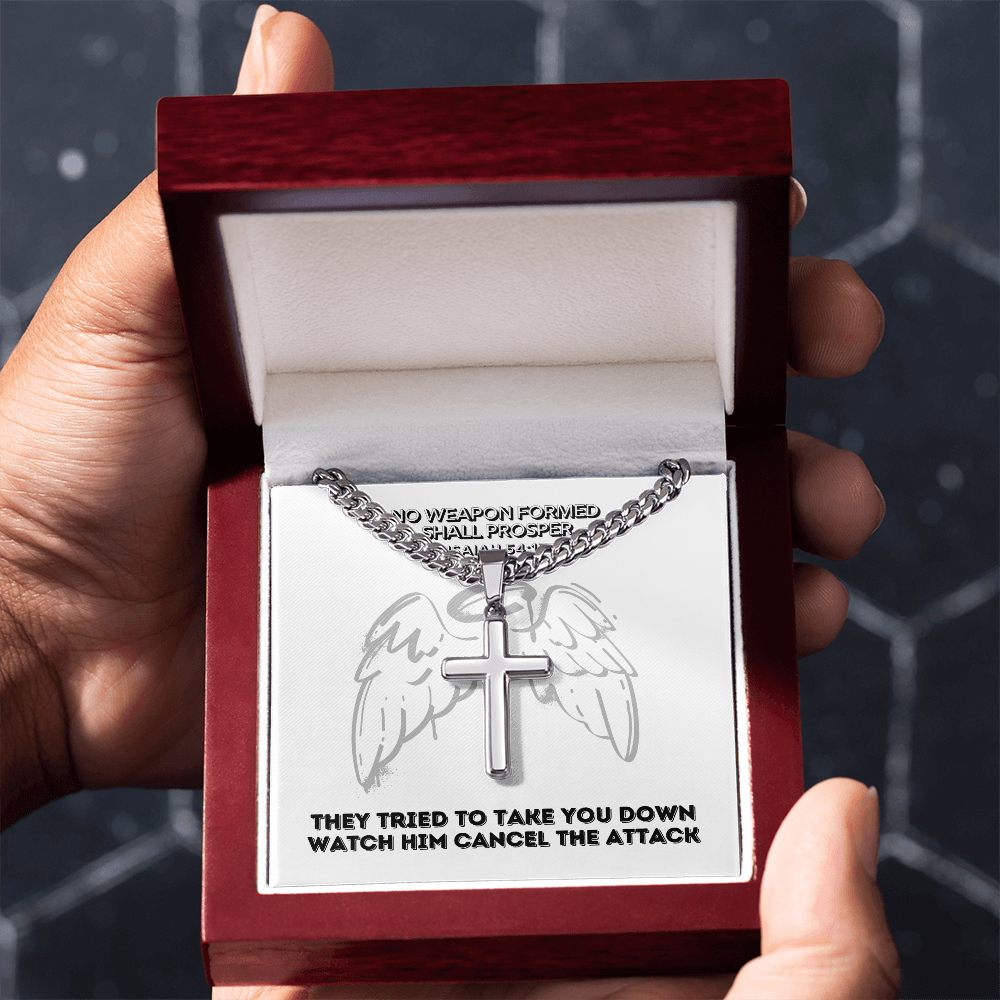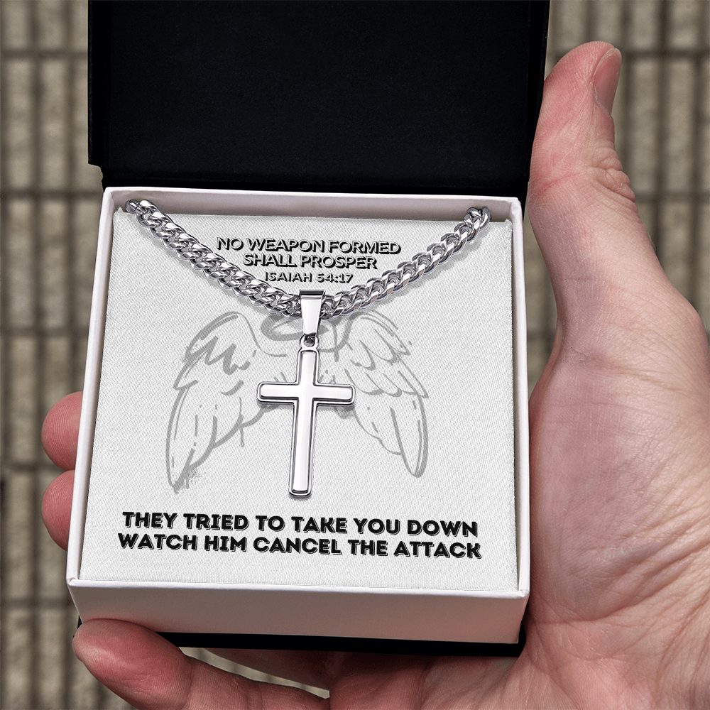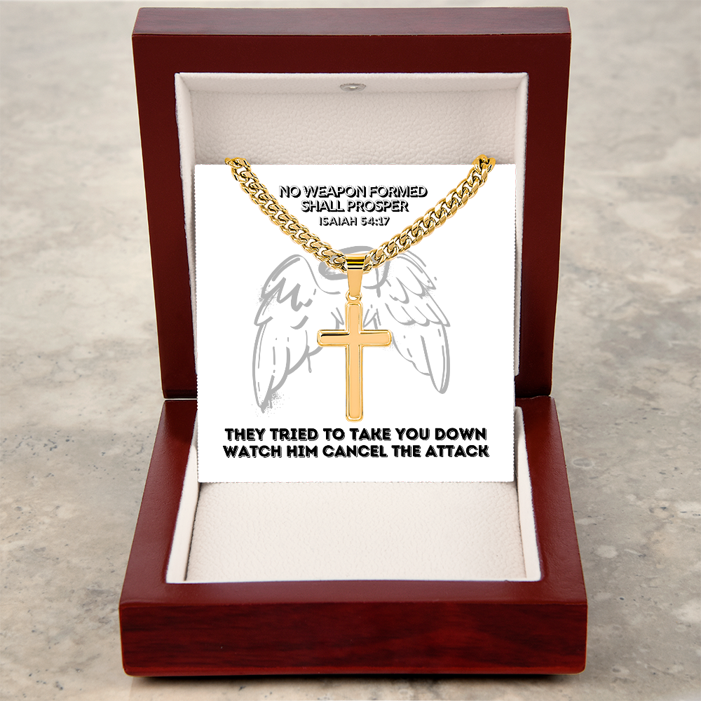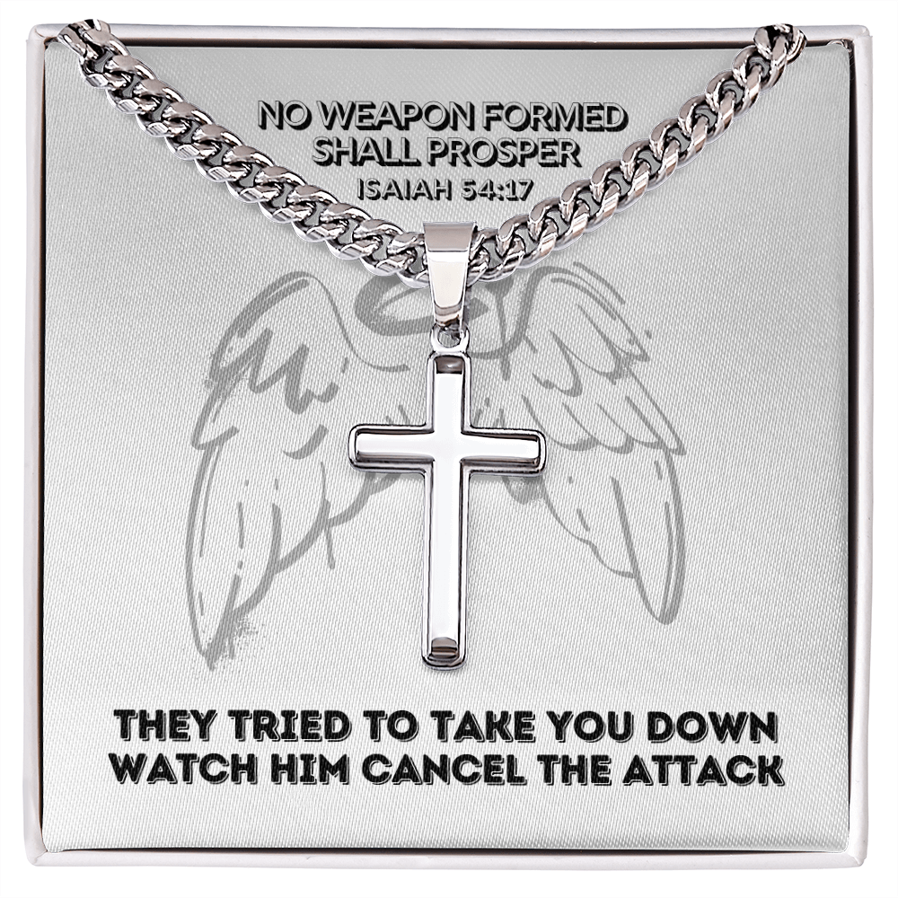 No Weapon Formed Shall Prosper (Isaiah 54:17) | Premium Sterling Silver Cuban Link Cross Necklace