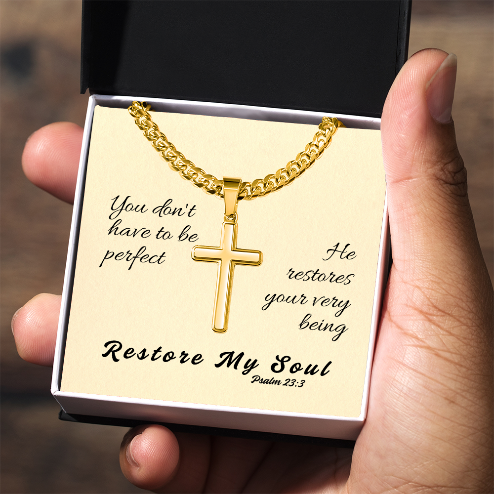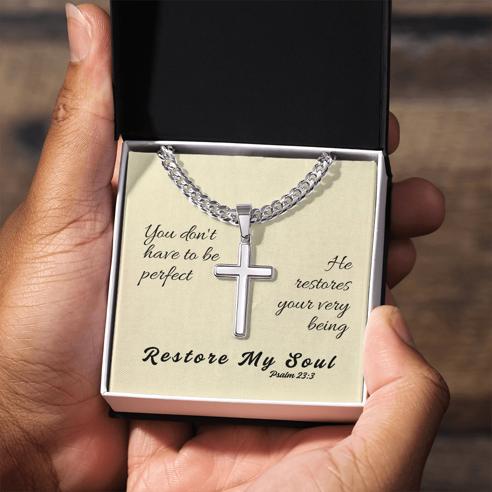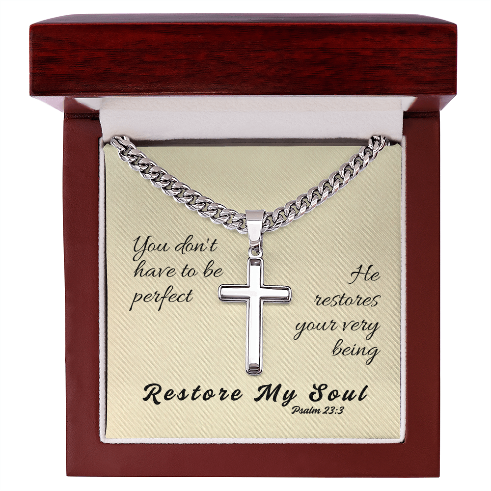 Restore My Soul (Psalm 23:3) | Premium Sterling Silver Cuban Link Cross Necklace