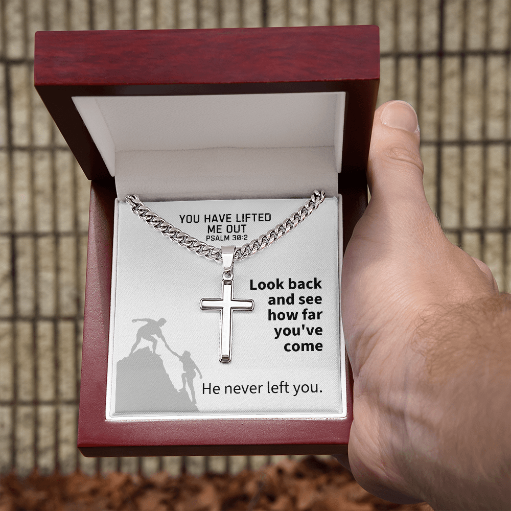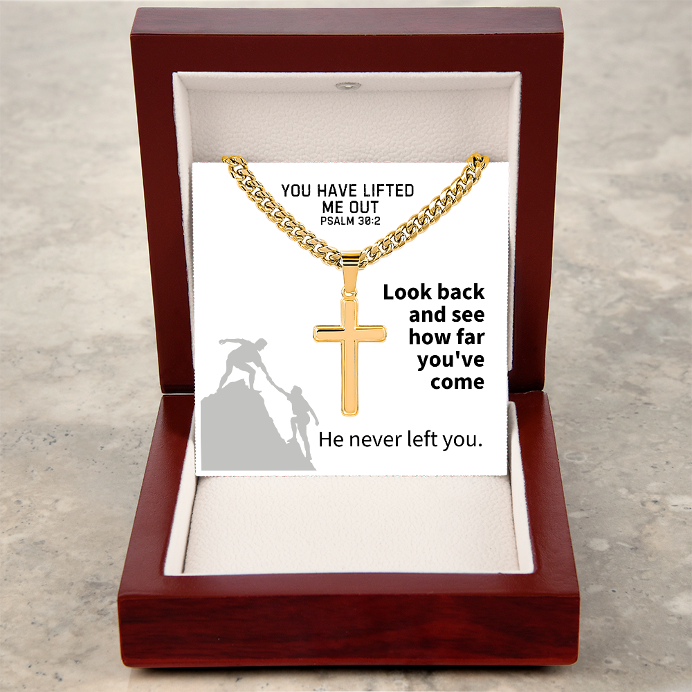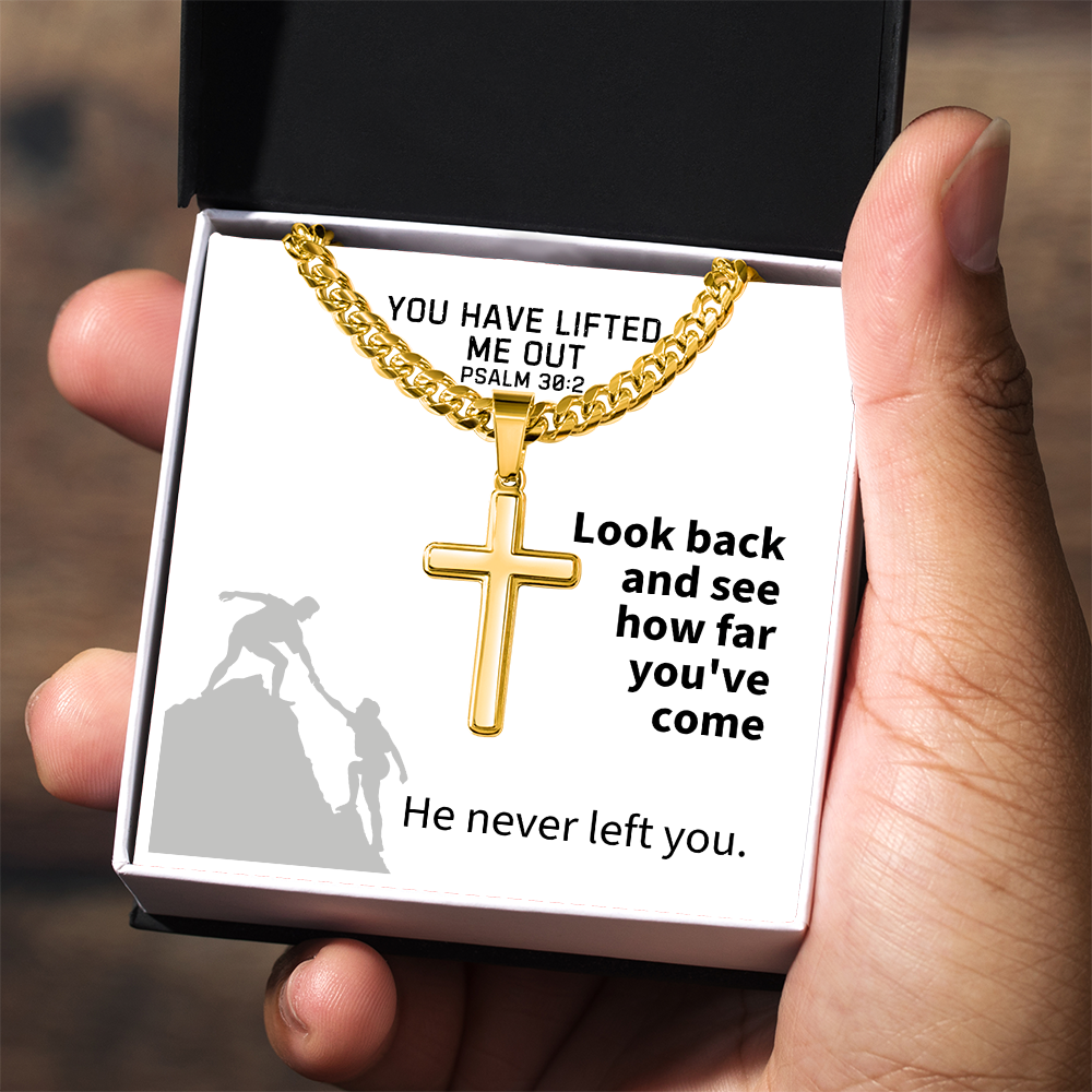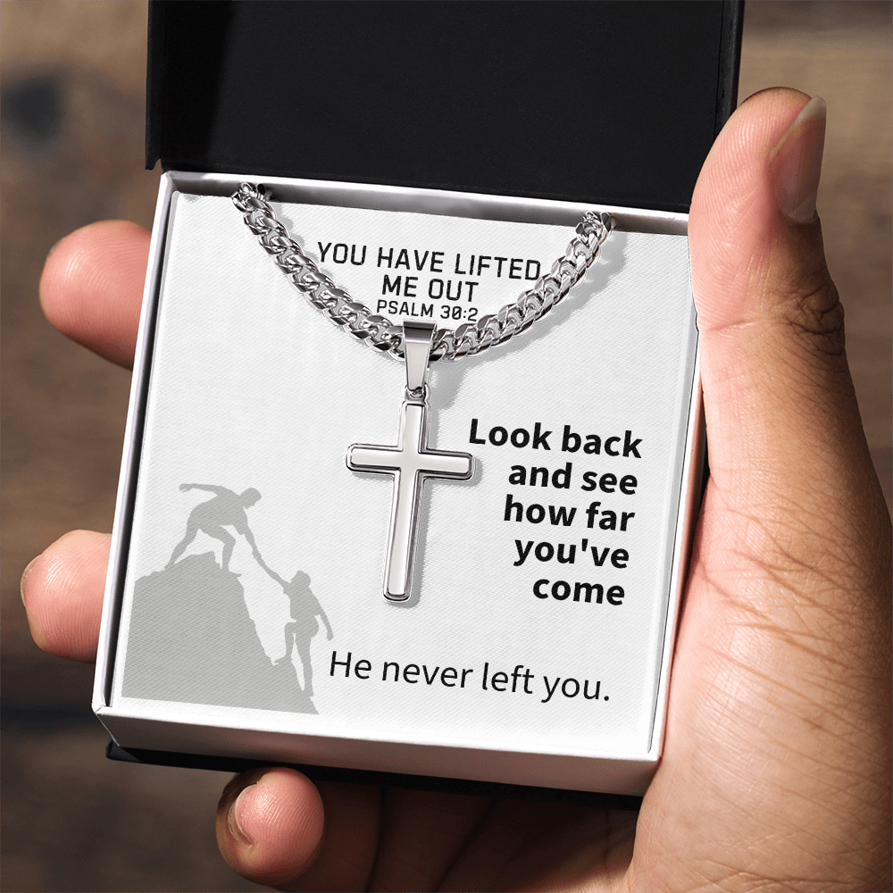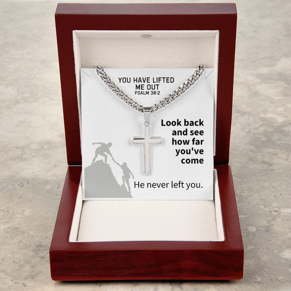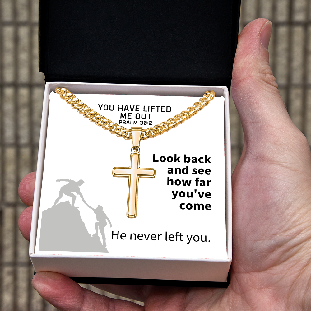 You Have Lifted Me Out (Psalm 30:2) | Premium Sterling Silver Cuban Link Cross Necklace